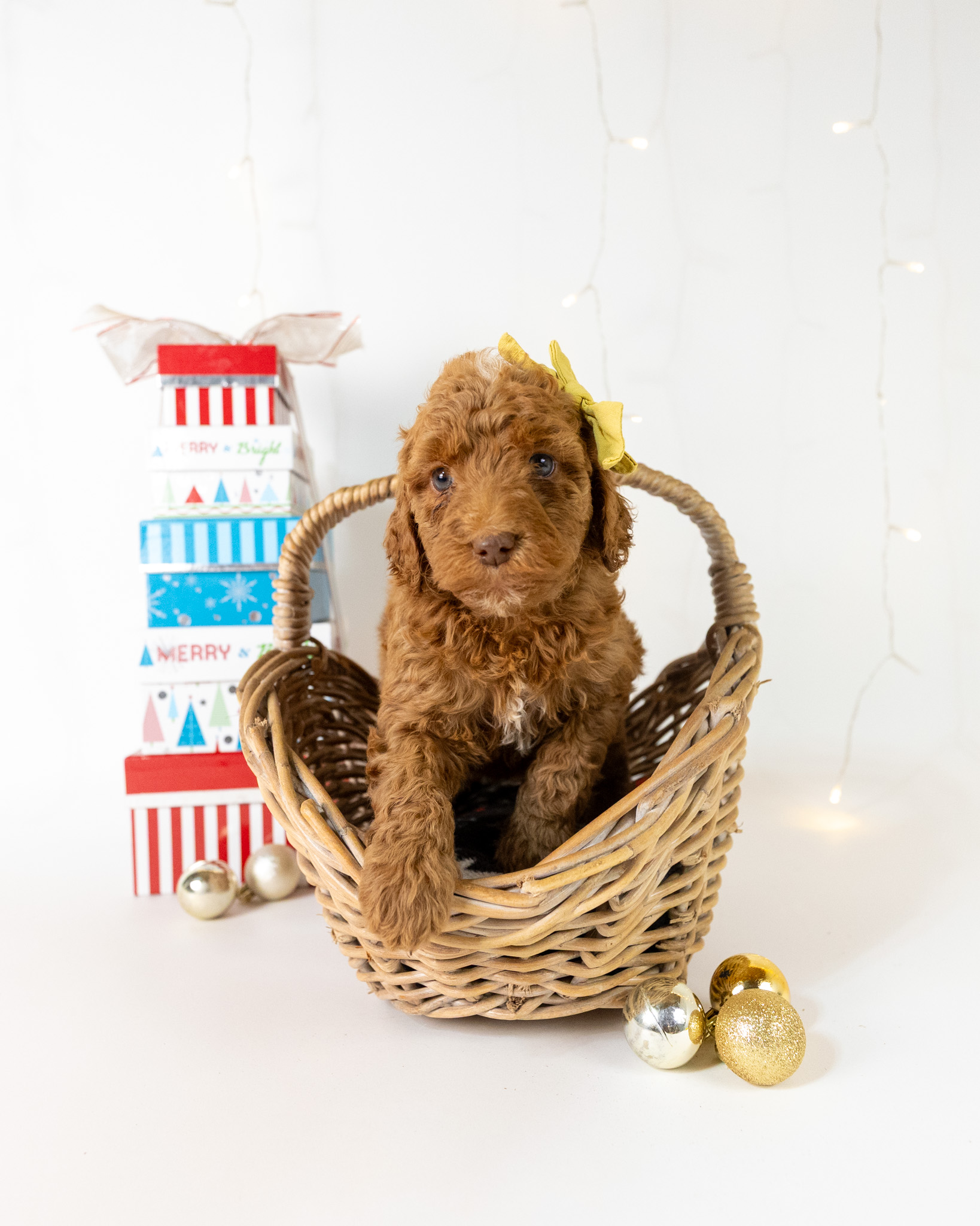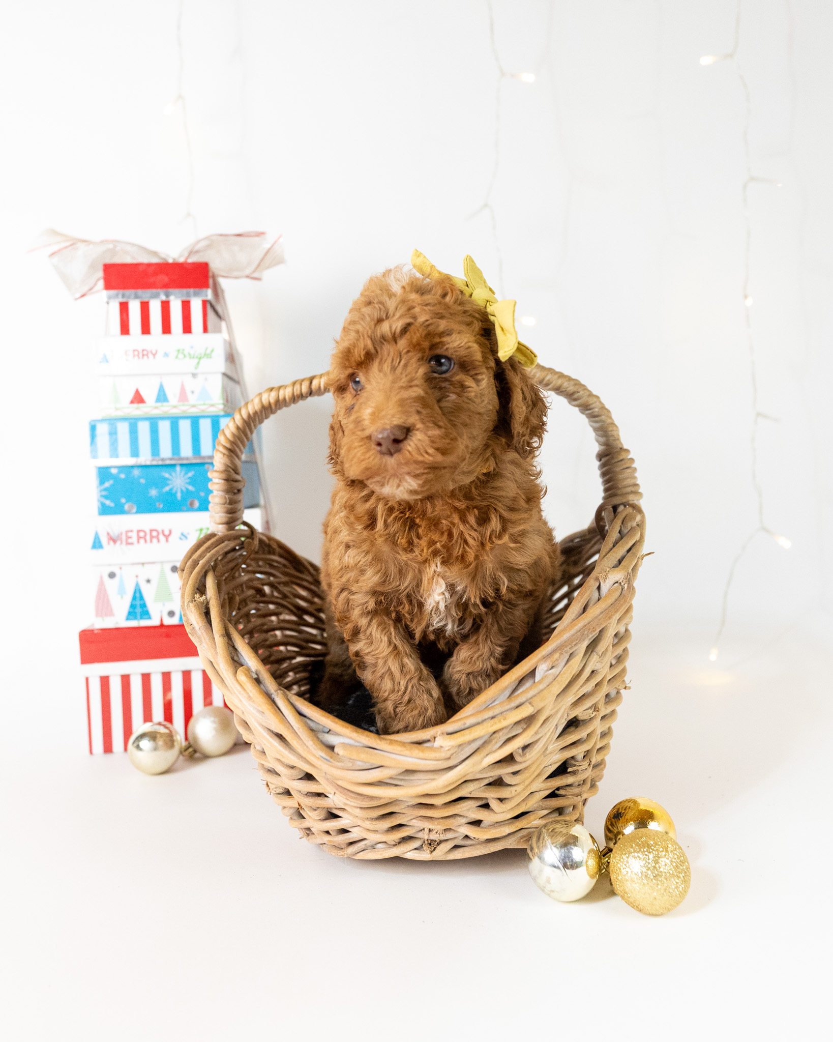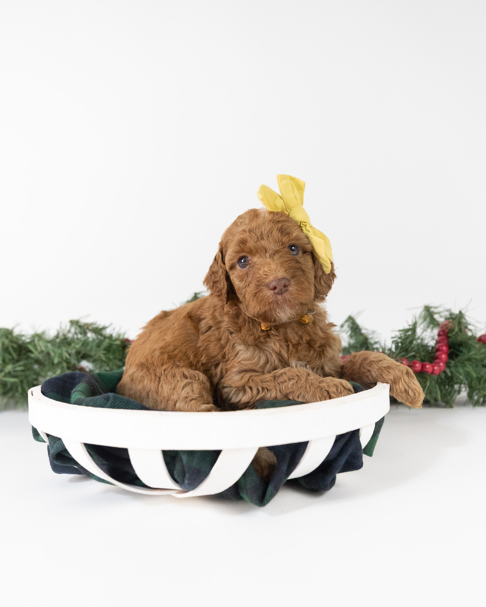 Holly is a red multigen Goldendoodle puppy who will be ready for her fur-ever home around December 16th! Her soft, fluffy coat is hypoallergenic and non-shedding, ensuring endless snuggles without fear of allergic reactions. With a loyal and affectionate temperament, she is the perfect forever friend!