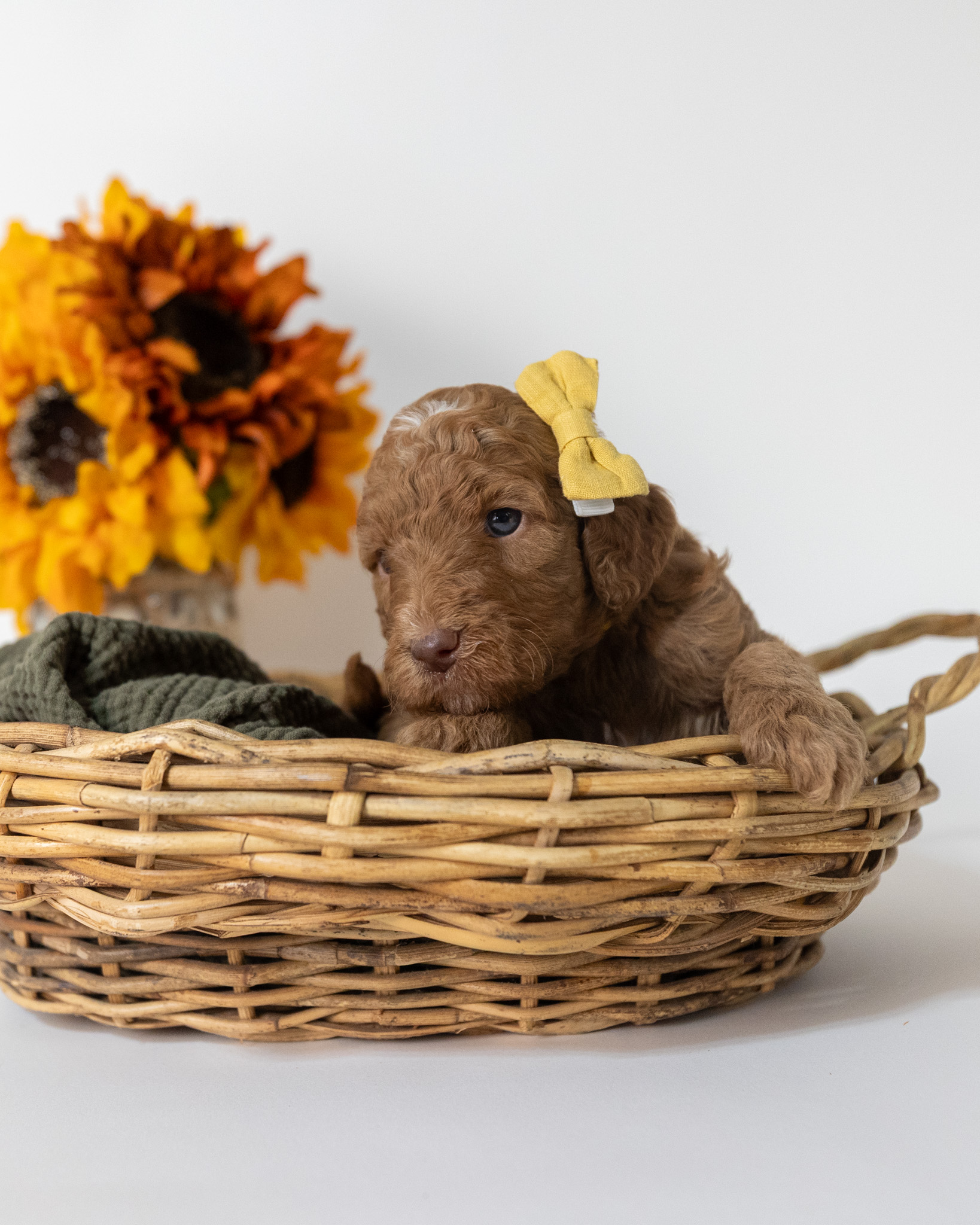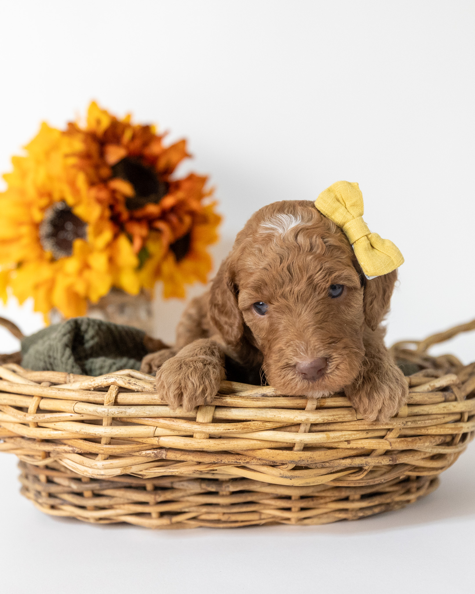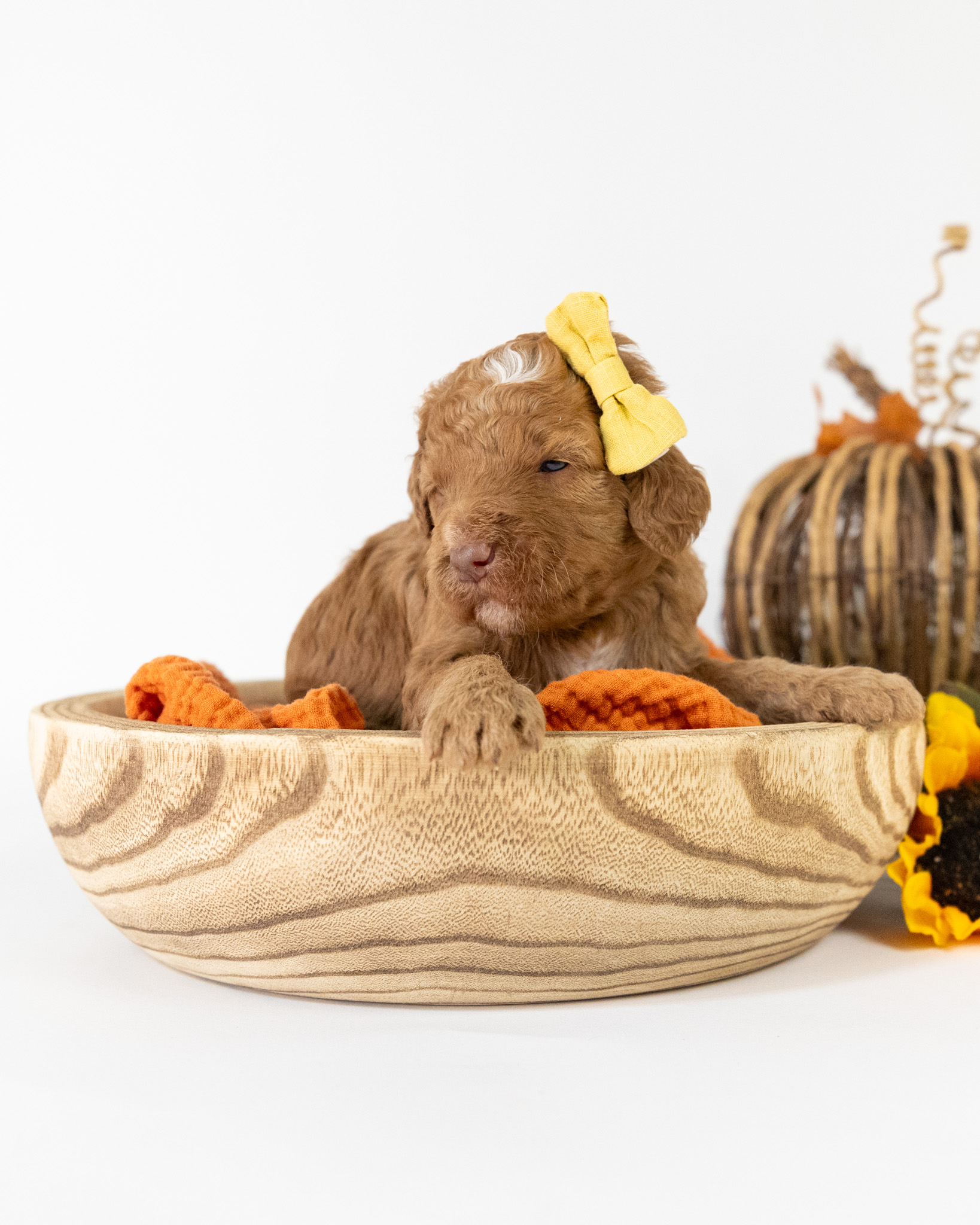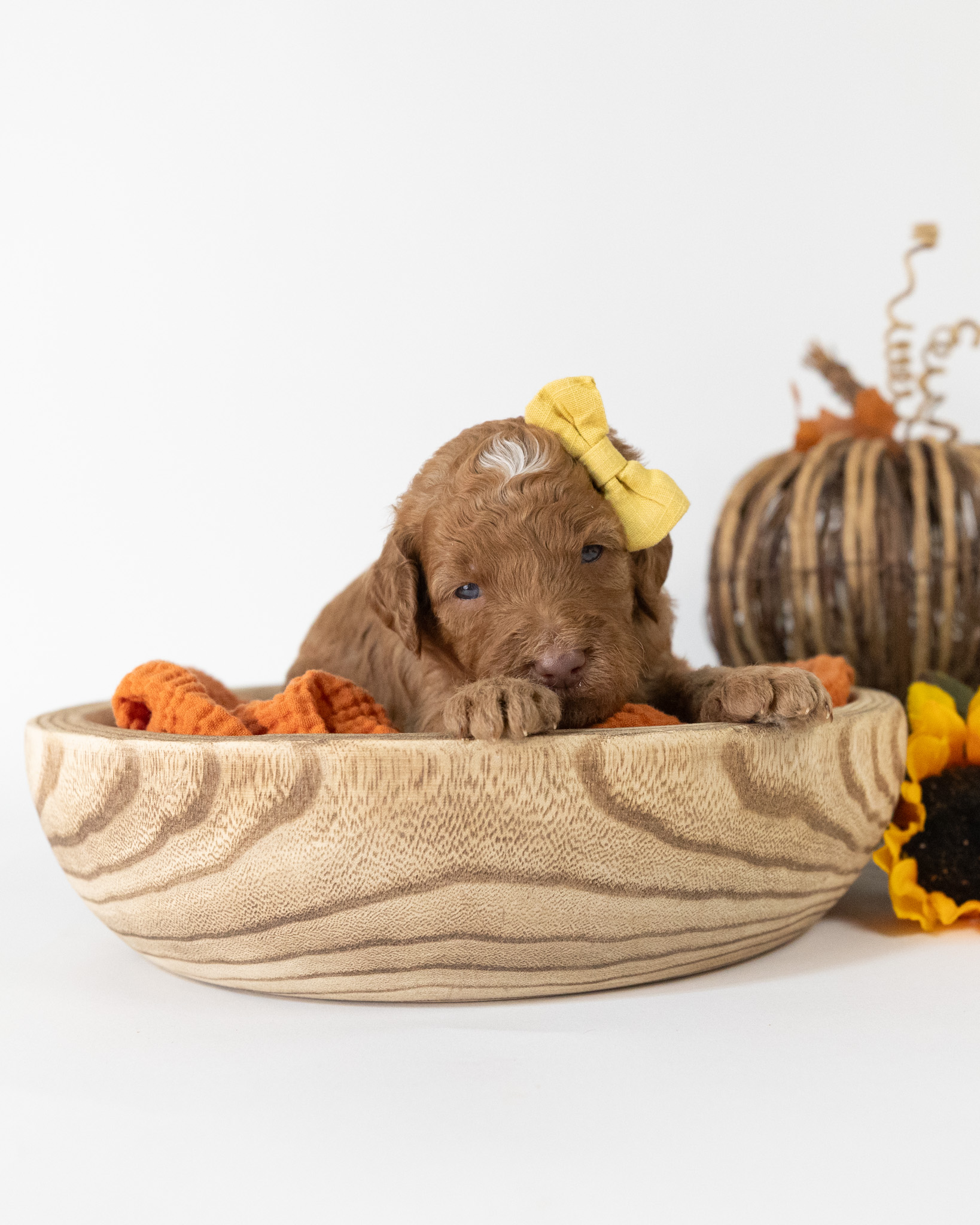 Holly is a red multigen Goldendoodle puppy who will be ready for her fur-ever home around December 16th! Her soft, fluffy coat is hypoallergenic and non-shedding, ensuring endless snuggles without fear of allergic reactions. With a loyal and affectionate temperament, she is the perfect forever friend!