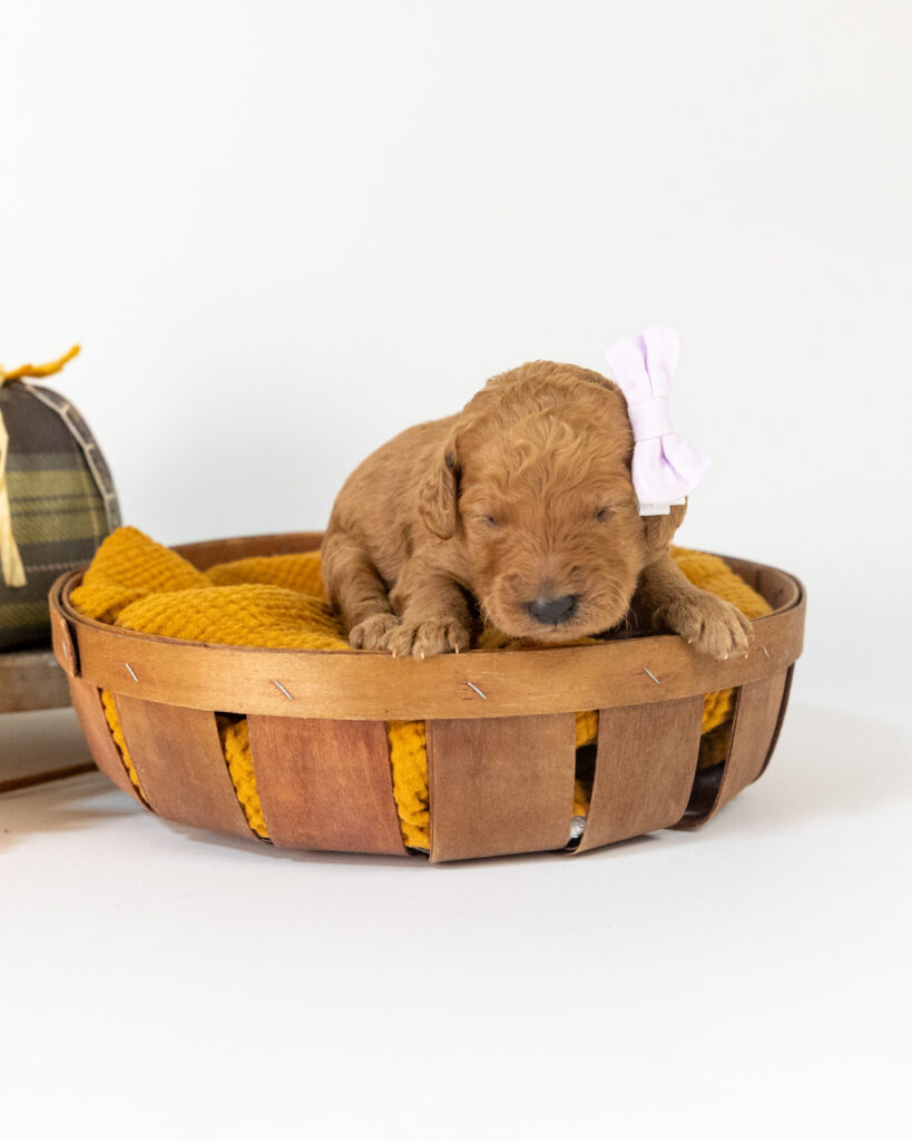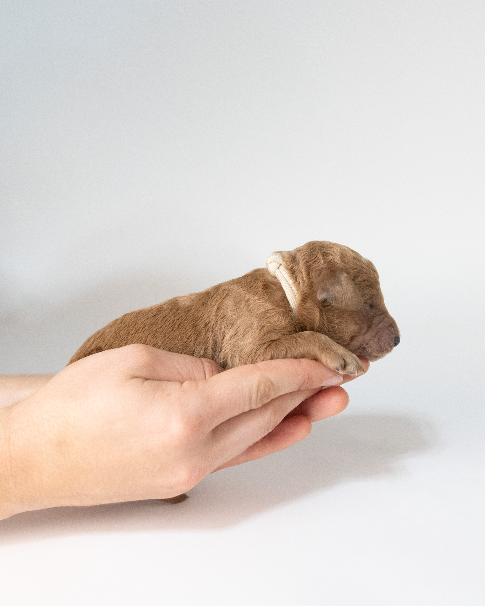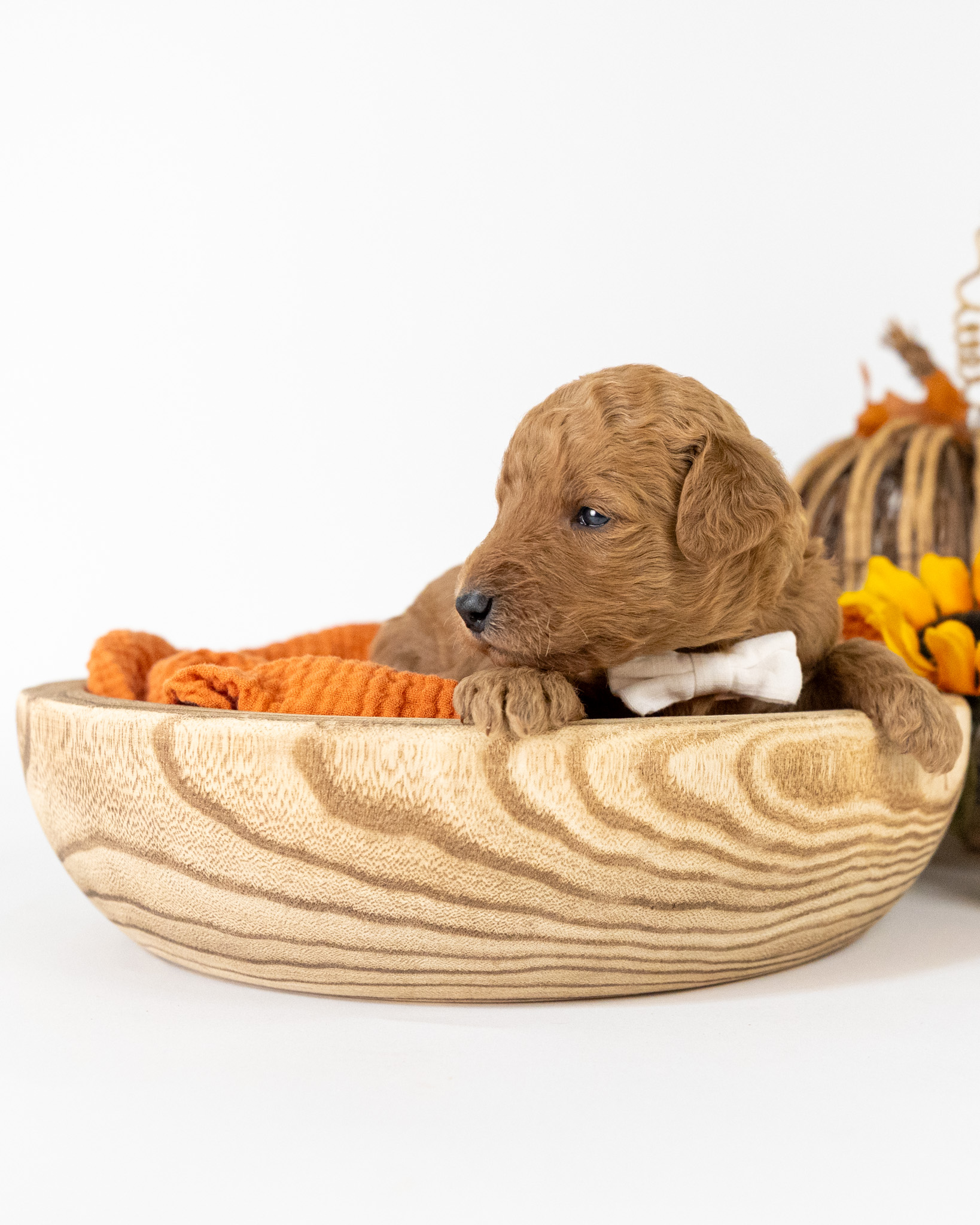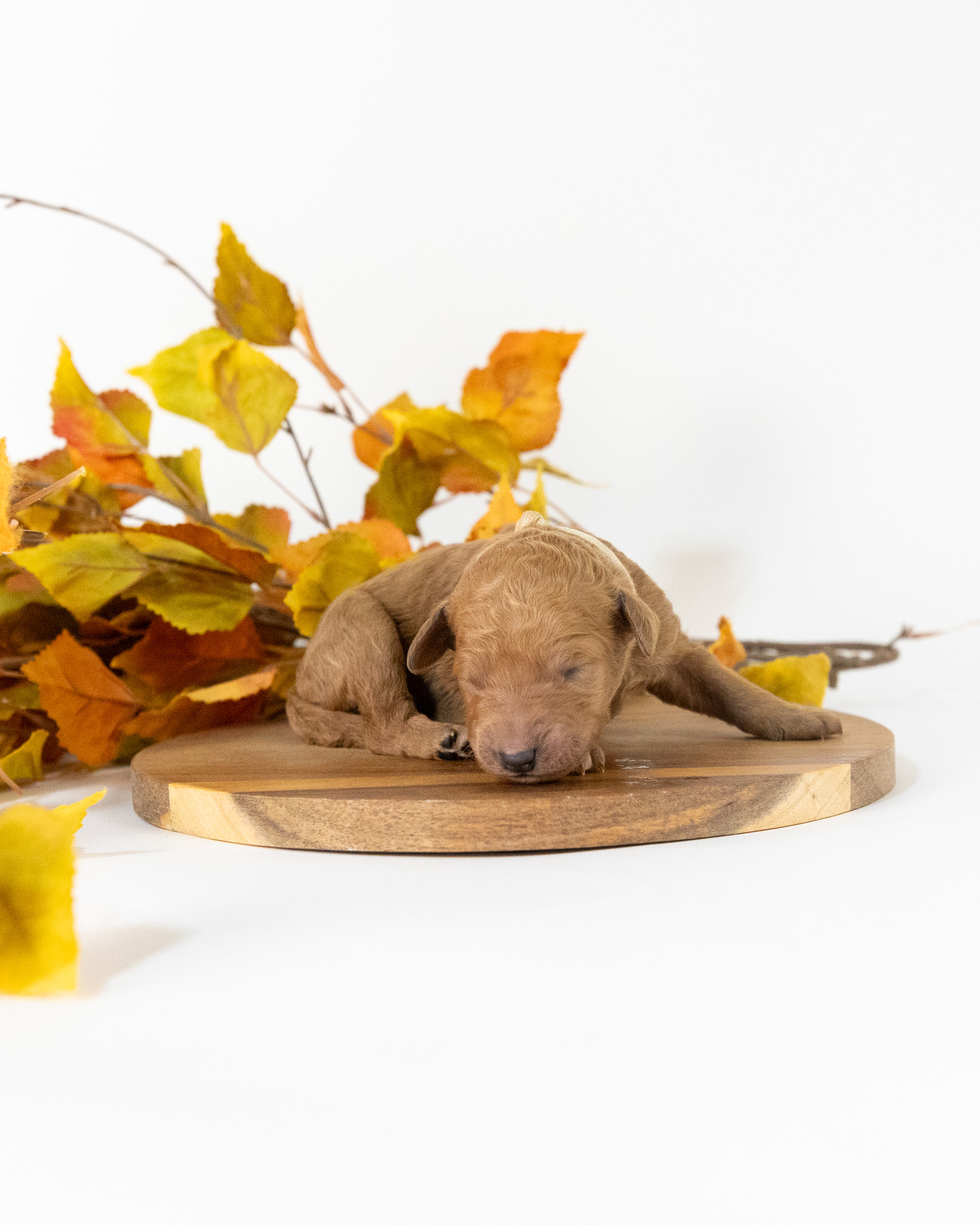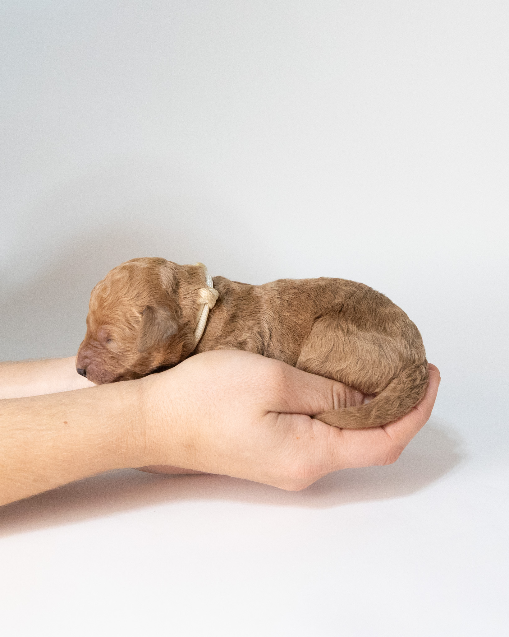 Icicle is a red multigen Goldendoodle puppy who will be ready for his fur-ever home around December 16th! His soft, fluffy coat is hypoallergenic and non-shedding, ensuring endless snuggles without fear of allergic reactions. With a loyal and affectionate temperament, he is the perfect forever friend!