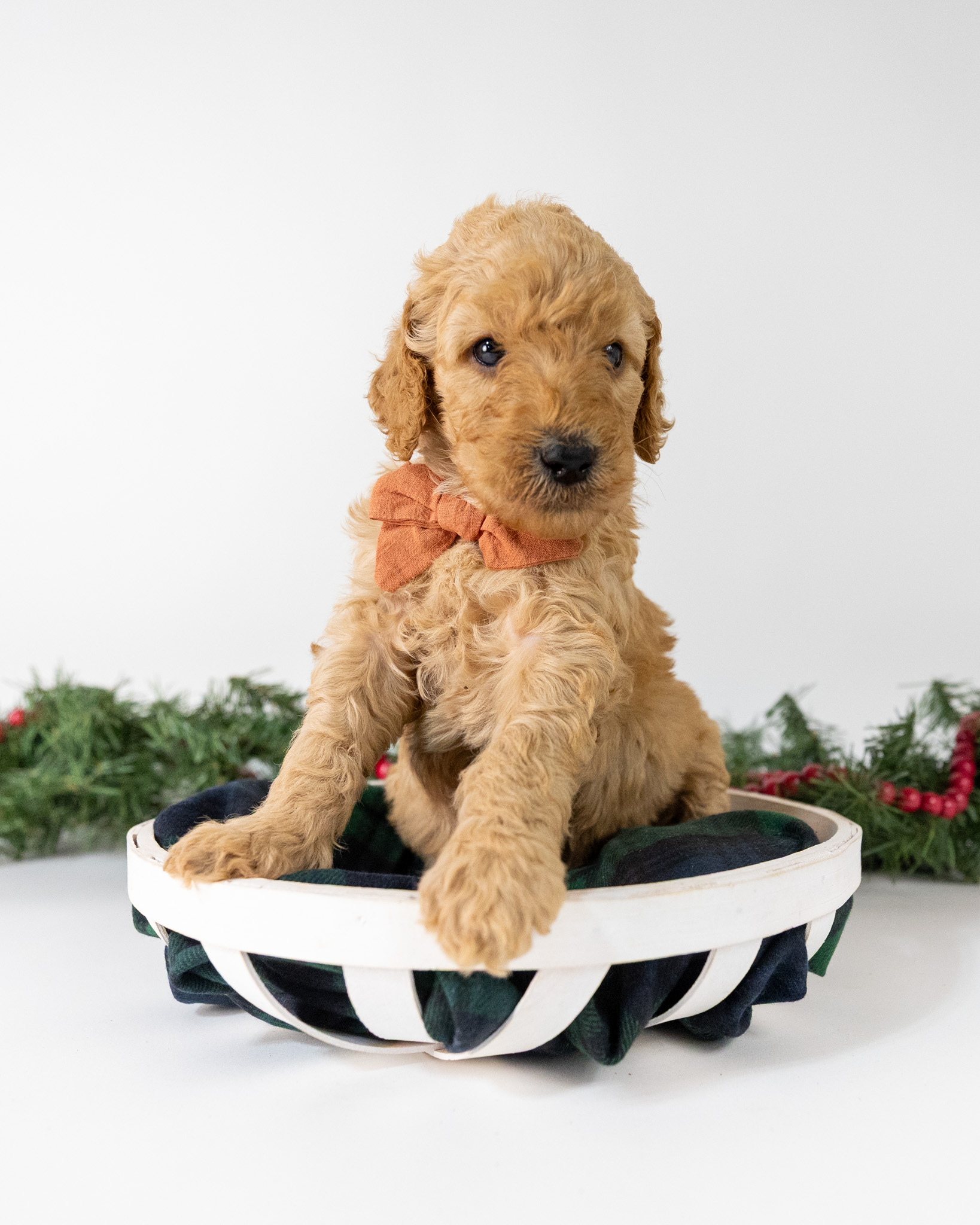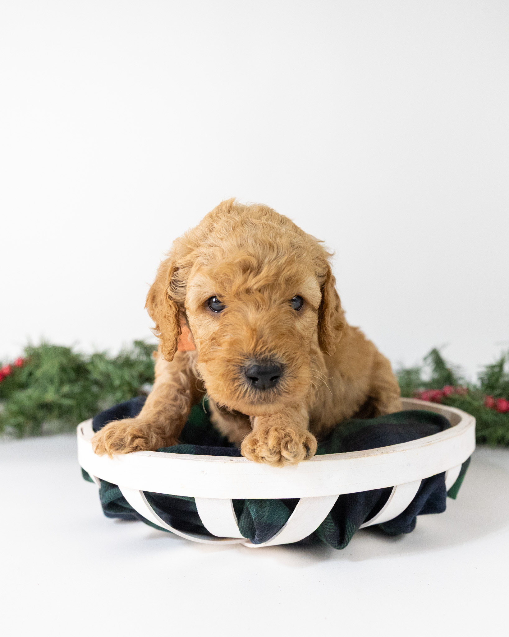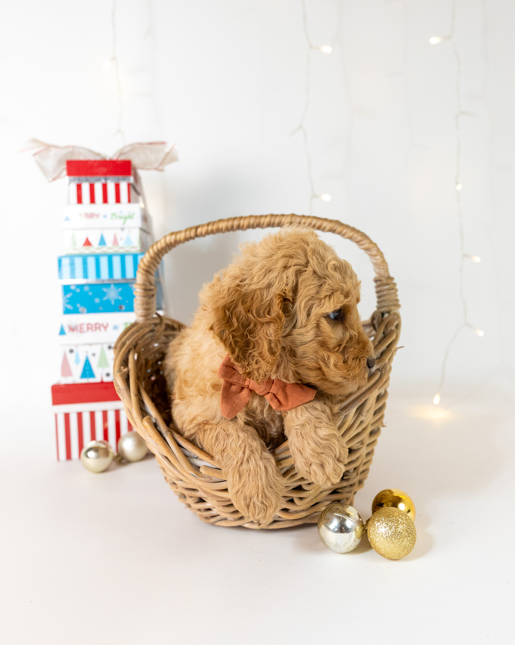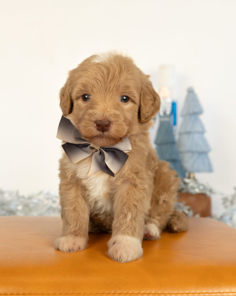 Tiny Tim is a gold multigen Goldendoodle puppy who will be ready for his fur-ever home around December 16th! His soft, fluffy coat is hypoallergenic and non-shedding, ensuring endless snuggles without fear of allergic reactions. With a loyal and affectionate temperament, he is the perfect forever friend!