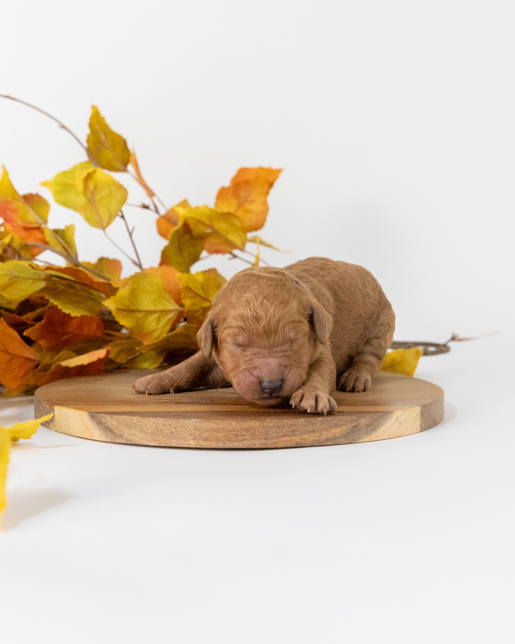 Tolkein is a red medium Goldendoodle puppy who will be ready for his forever home around December 30th.