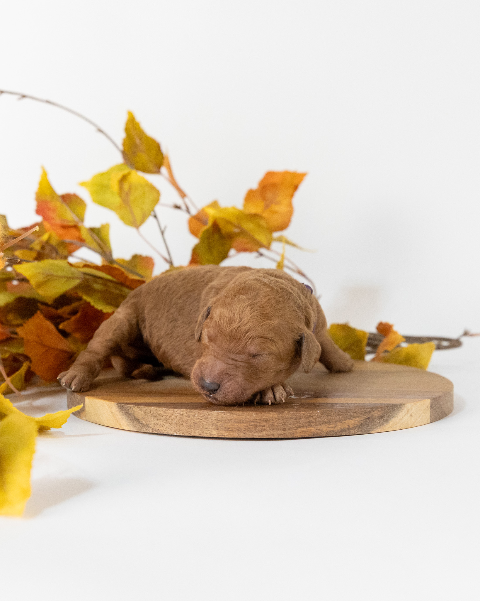 Cooper is a red male Goldendoodle puppy who will be ready for his forever home around October 7th.
