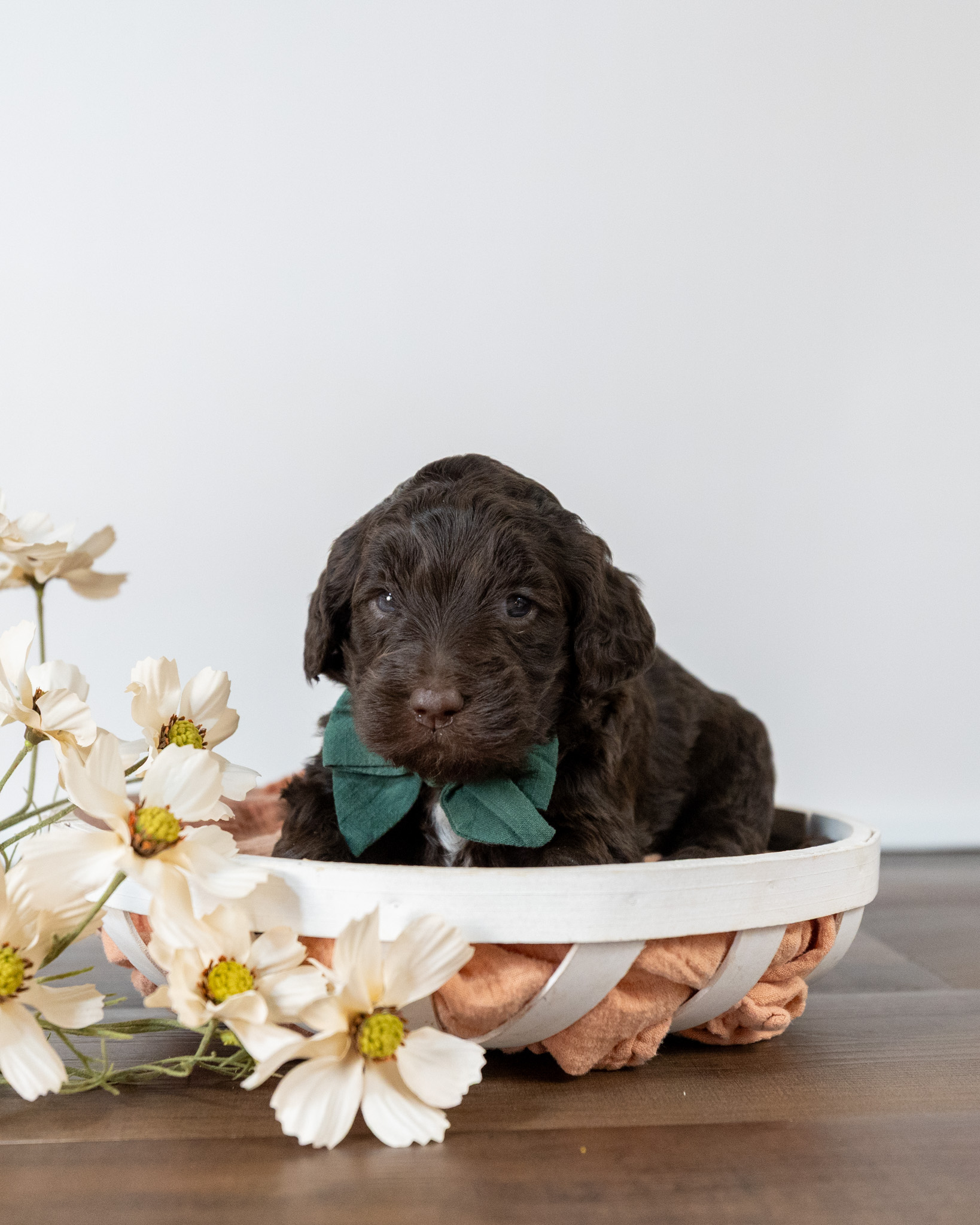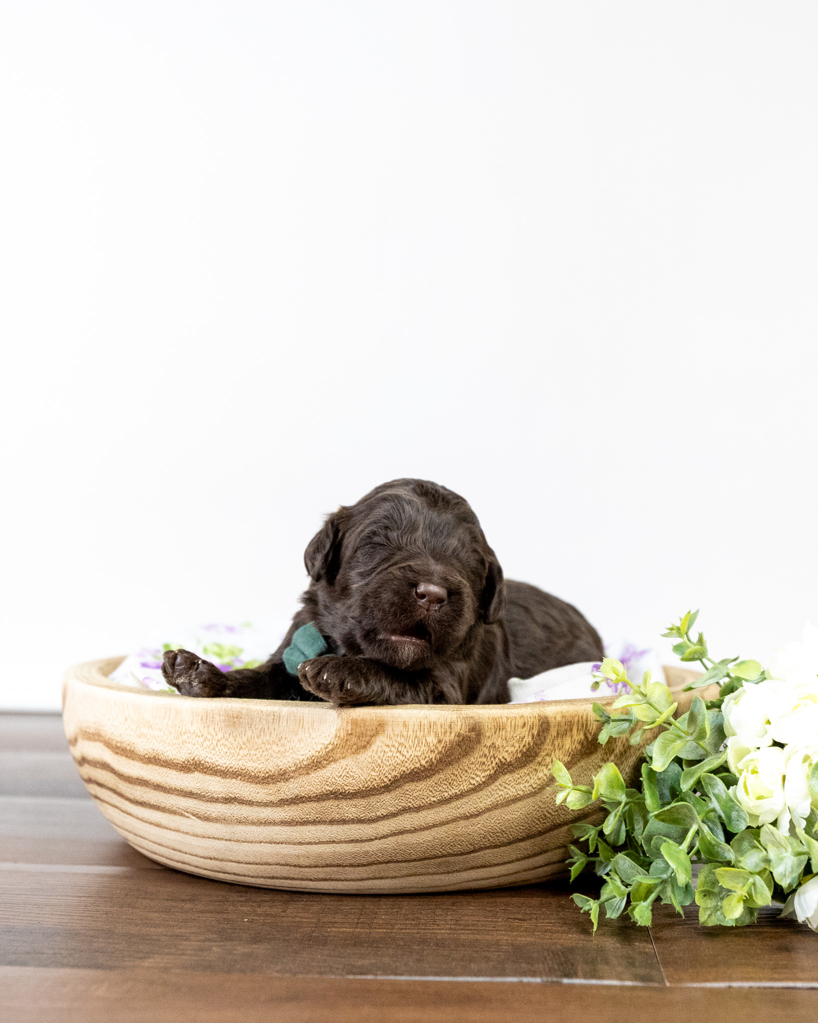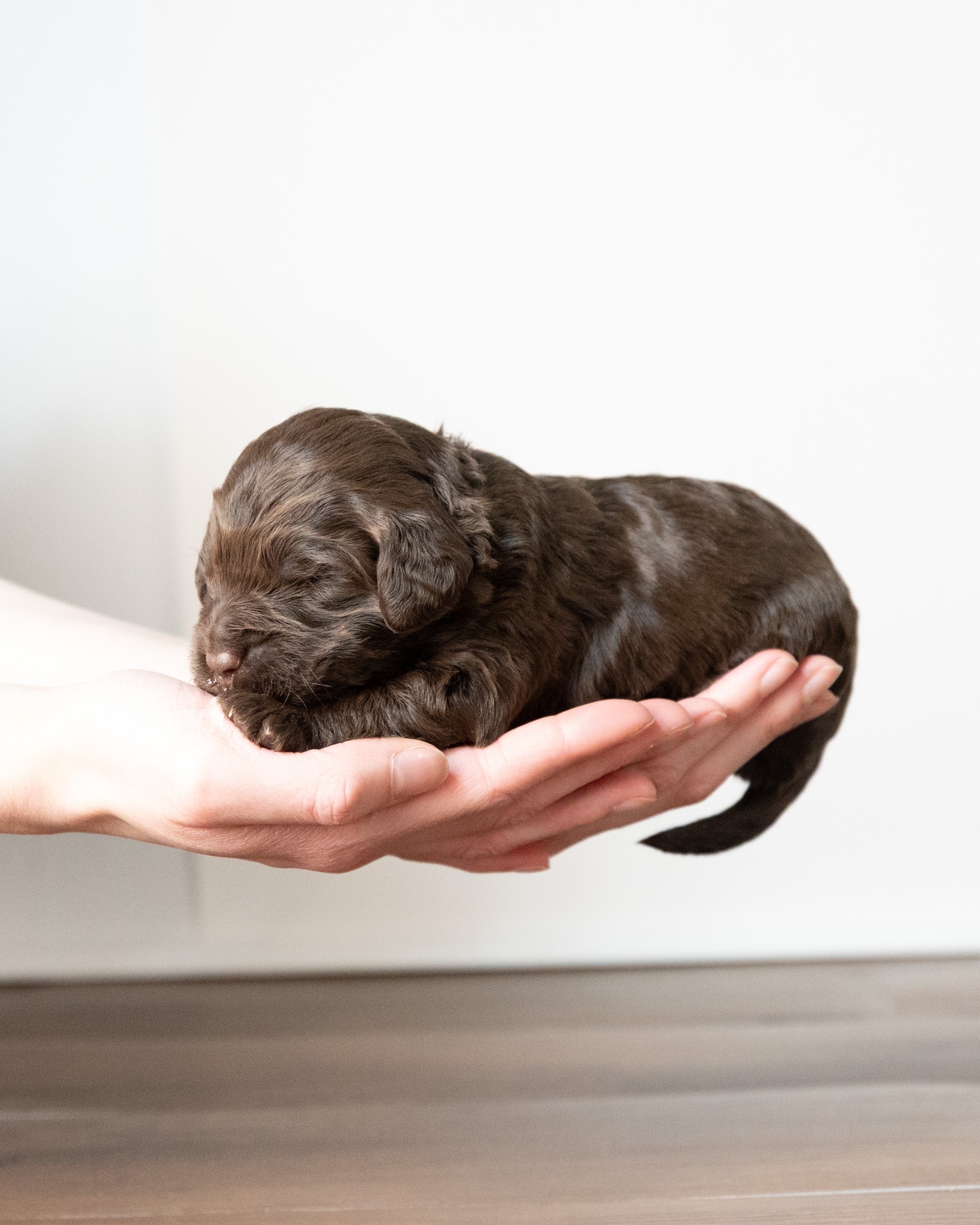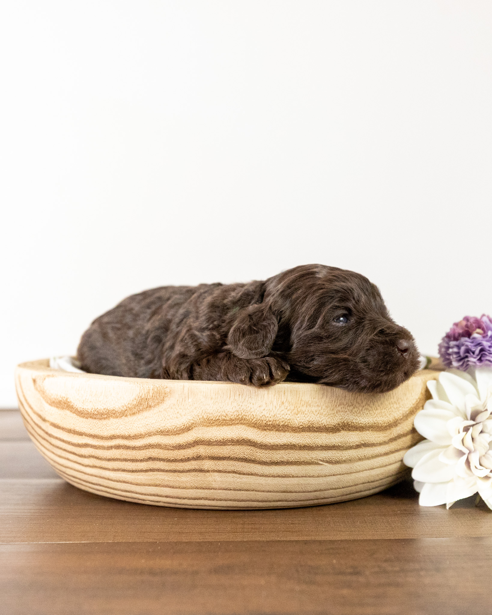 Frodo is a chocolate colored medium multigen Labradoodle puppy who will be ready for his forever home March 25th! His soft, fluffy coat is hypoallergenic and non-shedding, ensuring endless snuggles without fear of allergic reactions.