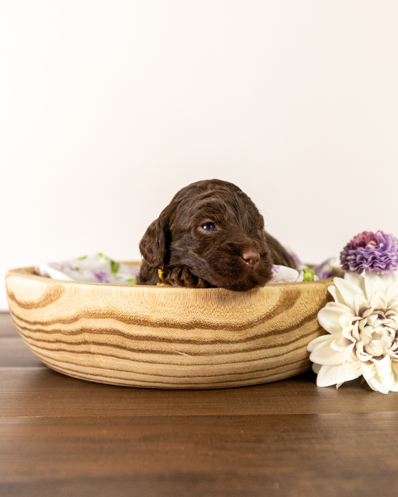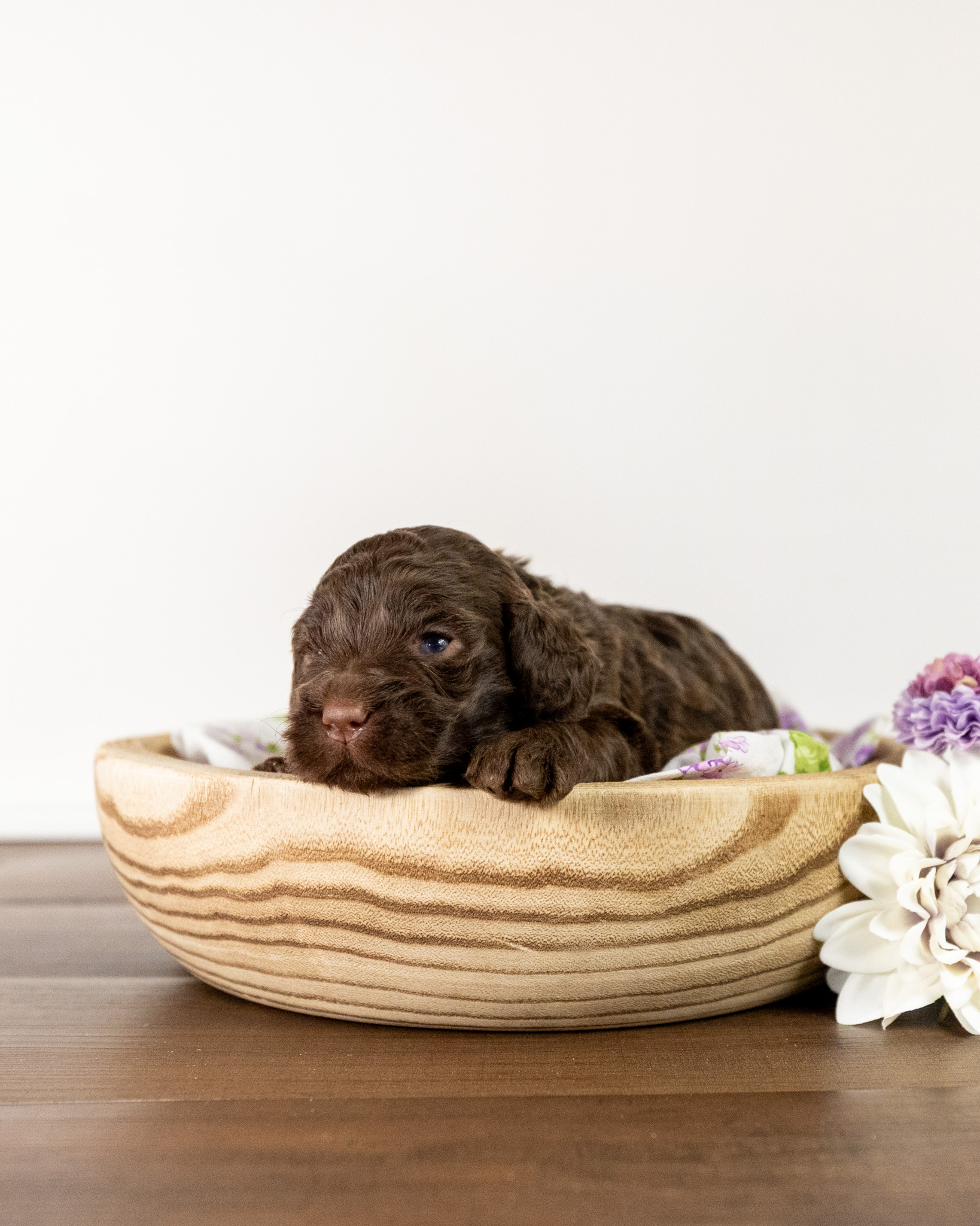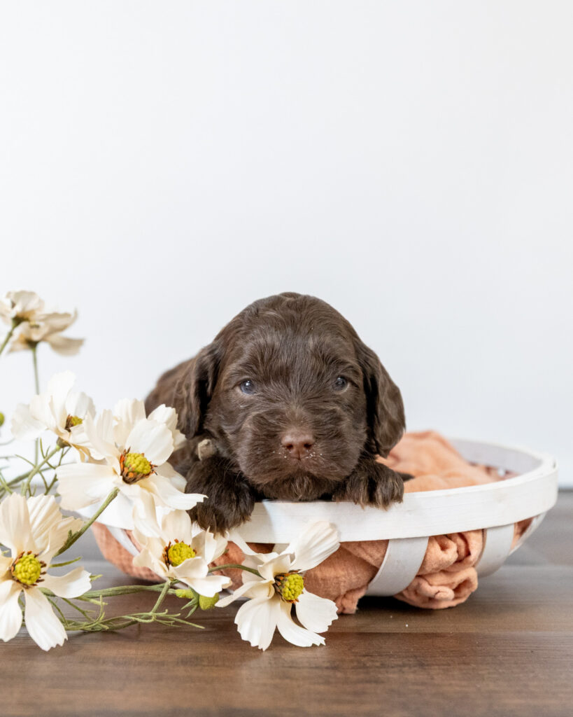 Gandalf is a medium multigen Labradoodle puppy who will be ready for his forever home March 25th! His soft, fluffy coat is hypoallergenic and non-shedding, ensuring endless snuggles without fear of allergic reactions.
