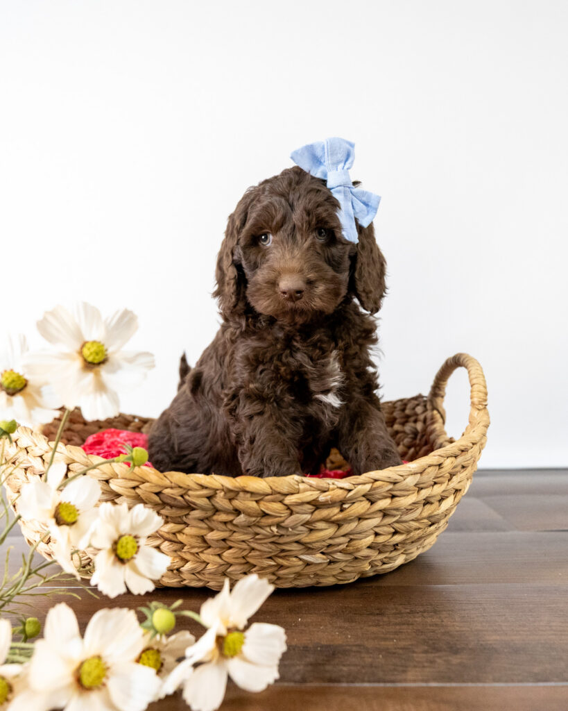 Pippen is a medium multigen Labradoodle puppy who will be ready for his forever home March 25th! His soft, fluffy coat is hypoallergenic and non-shedding, ensuring endless snuggles without fear of allergic reactions.
