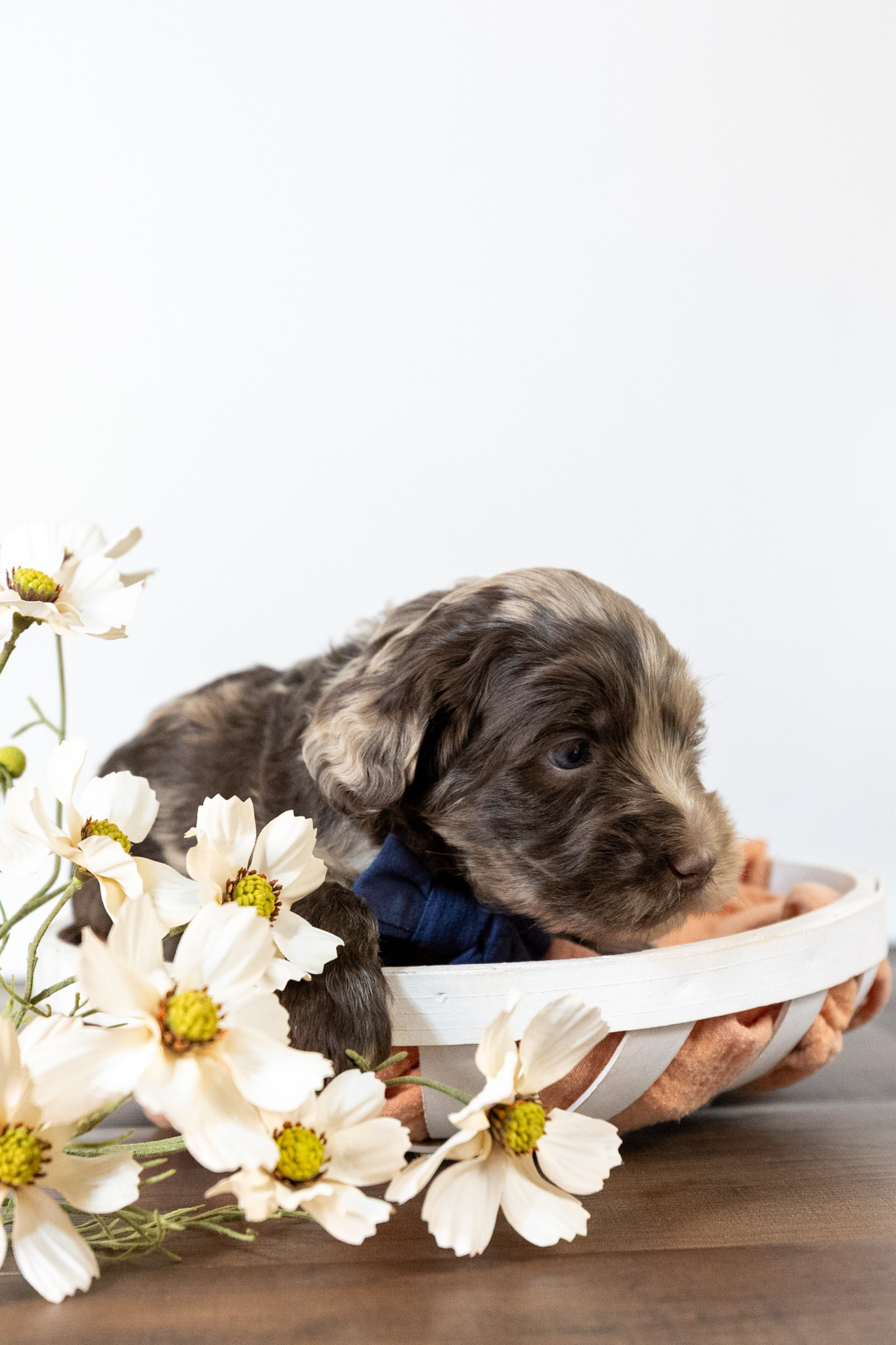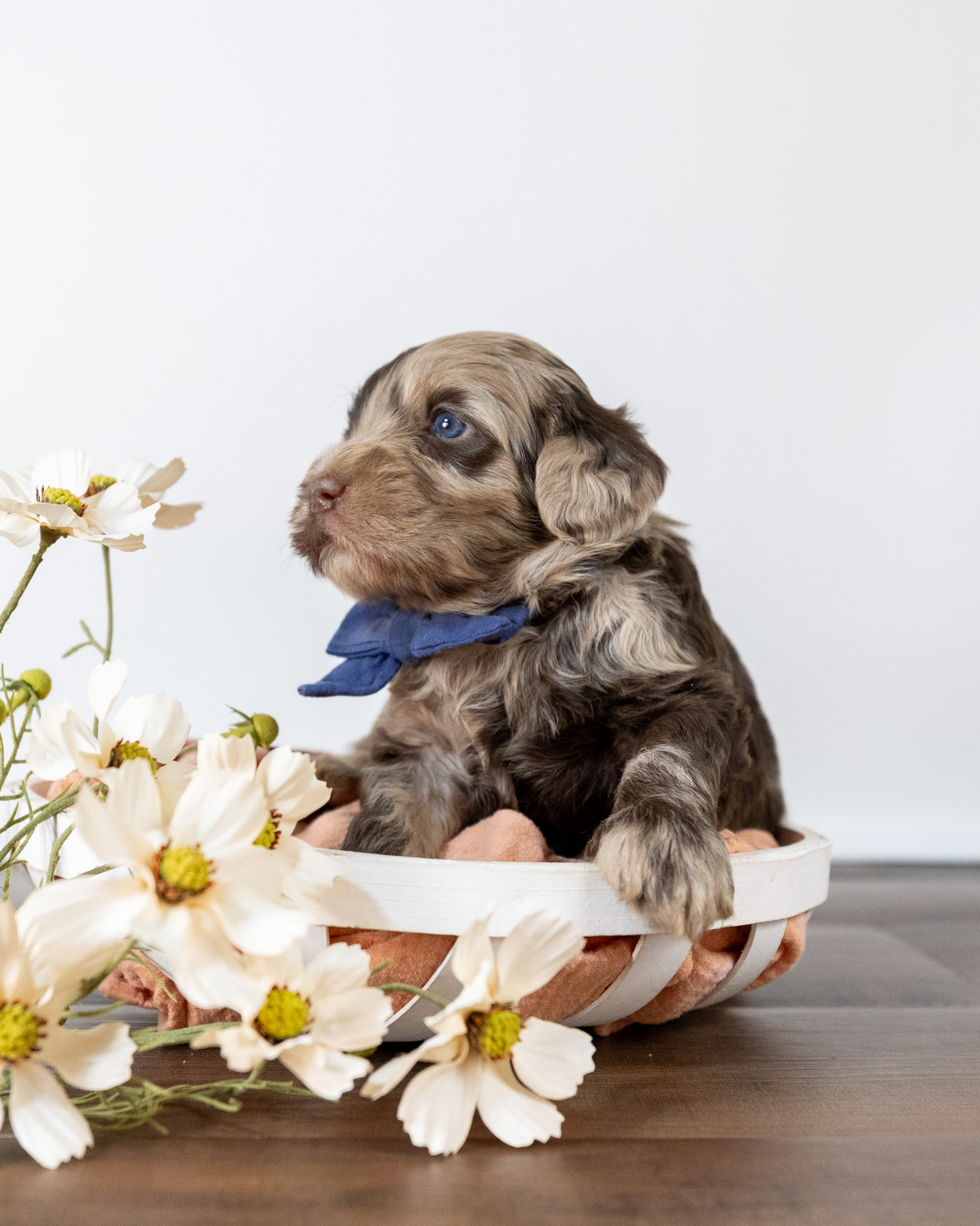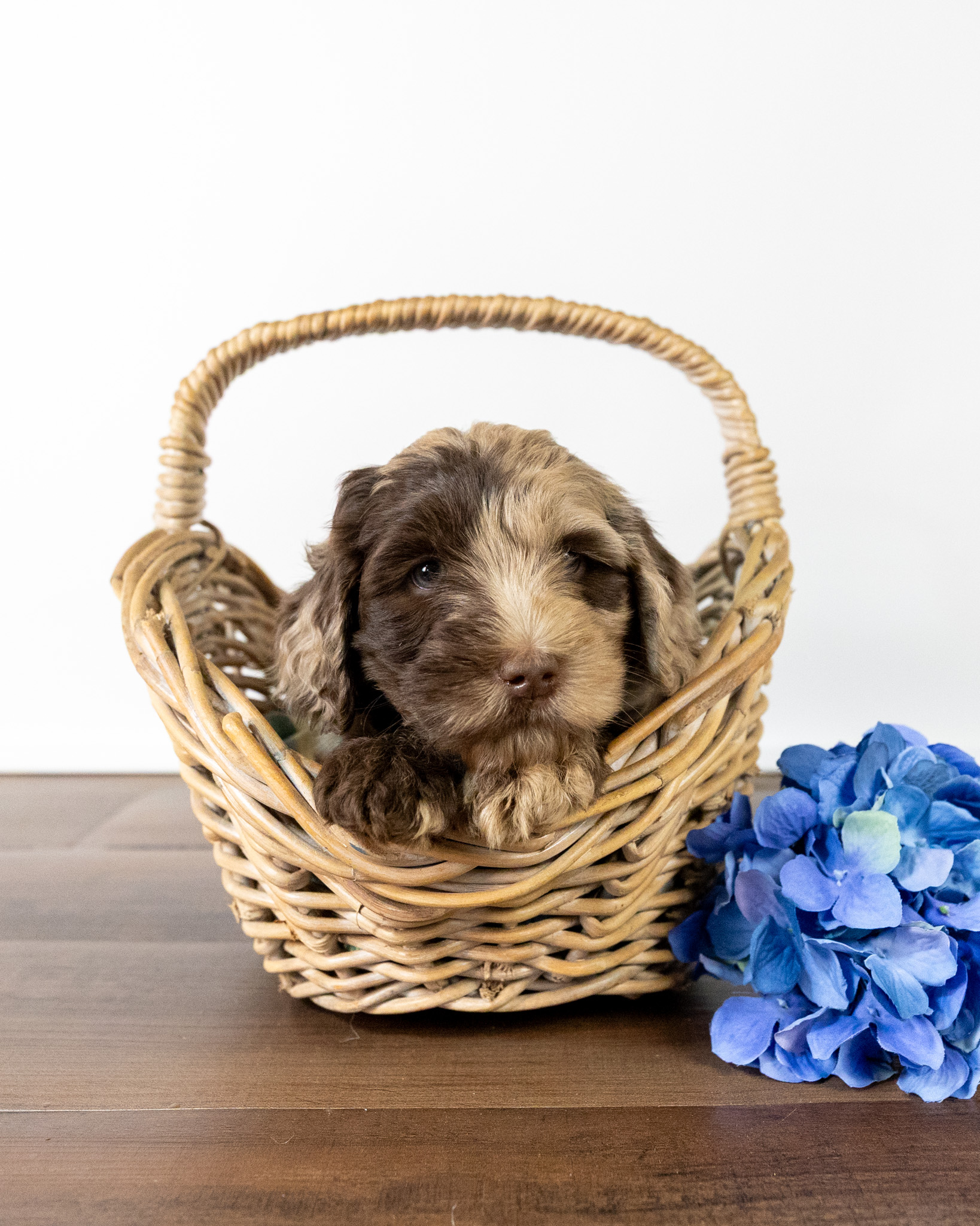 Brodie is a merle/red colored medium multigen Labradoodle puppy who will be ready for his forever home March 25th! His soft, fluffy coat is hypoallergenic and non-shedding, ensuring endless snuggles without fear of allergic reactions.