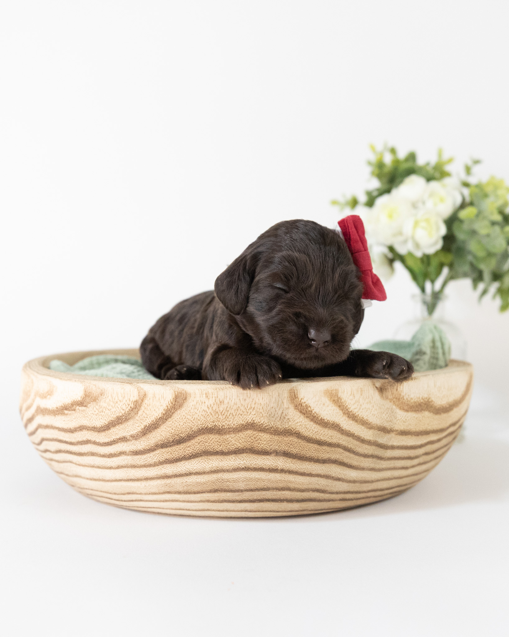 River is a multigen Labradoodle puppy who will be ready for her fur-ever home around September 29th! Her soft, fluffy coat is hypoallergenic and non-shedding, ensuring endless snuggles without fear of allergic reactions. With a loyal and affectionate temperament, she is the perfect forever friend!