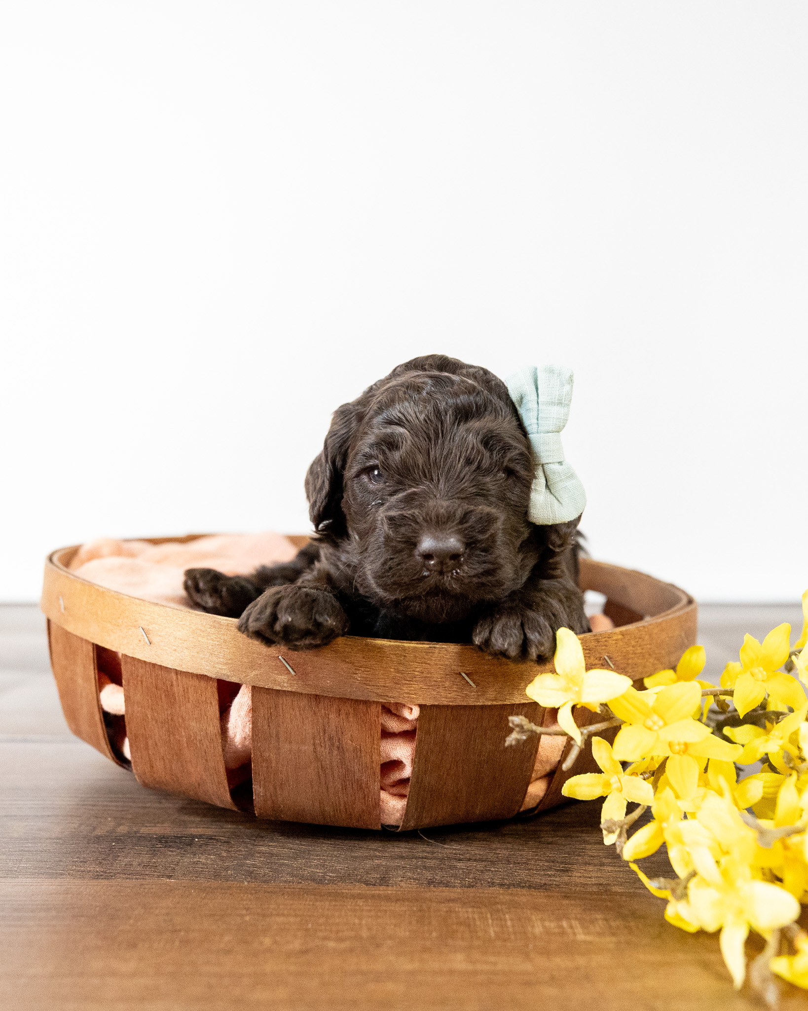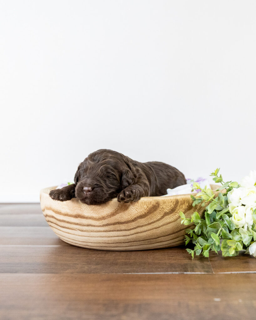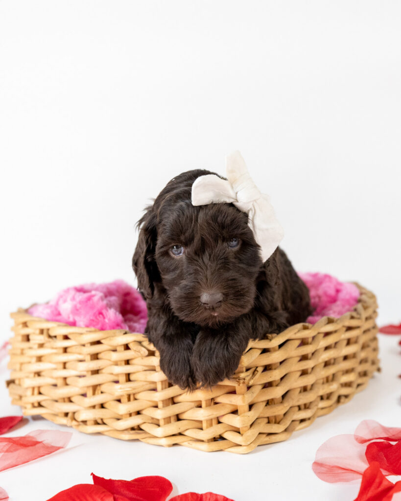 Athena is a medium multigen Labradoodle puppy who will be ready for her forever home March 17th! Her soft, fluffy coat is hypoallergenic and non-shedding, ensuring endless snuggles without fear of allergic reactions.