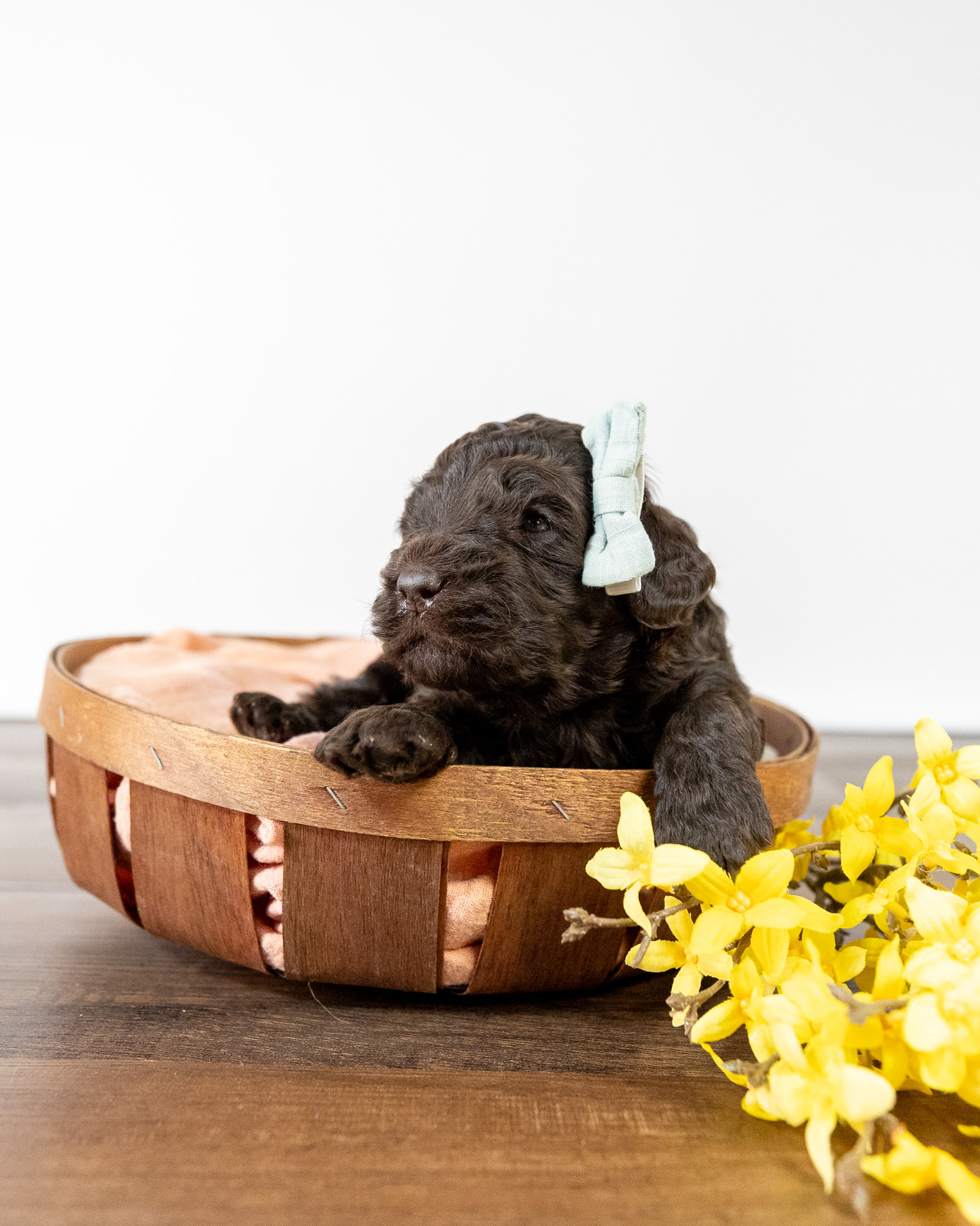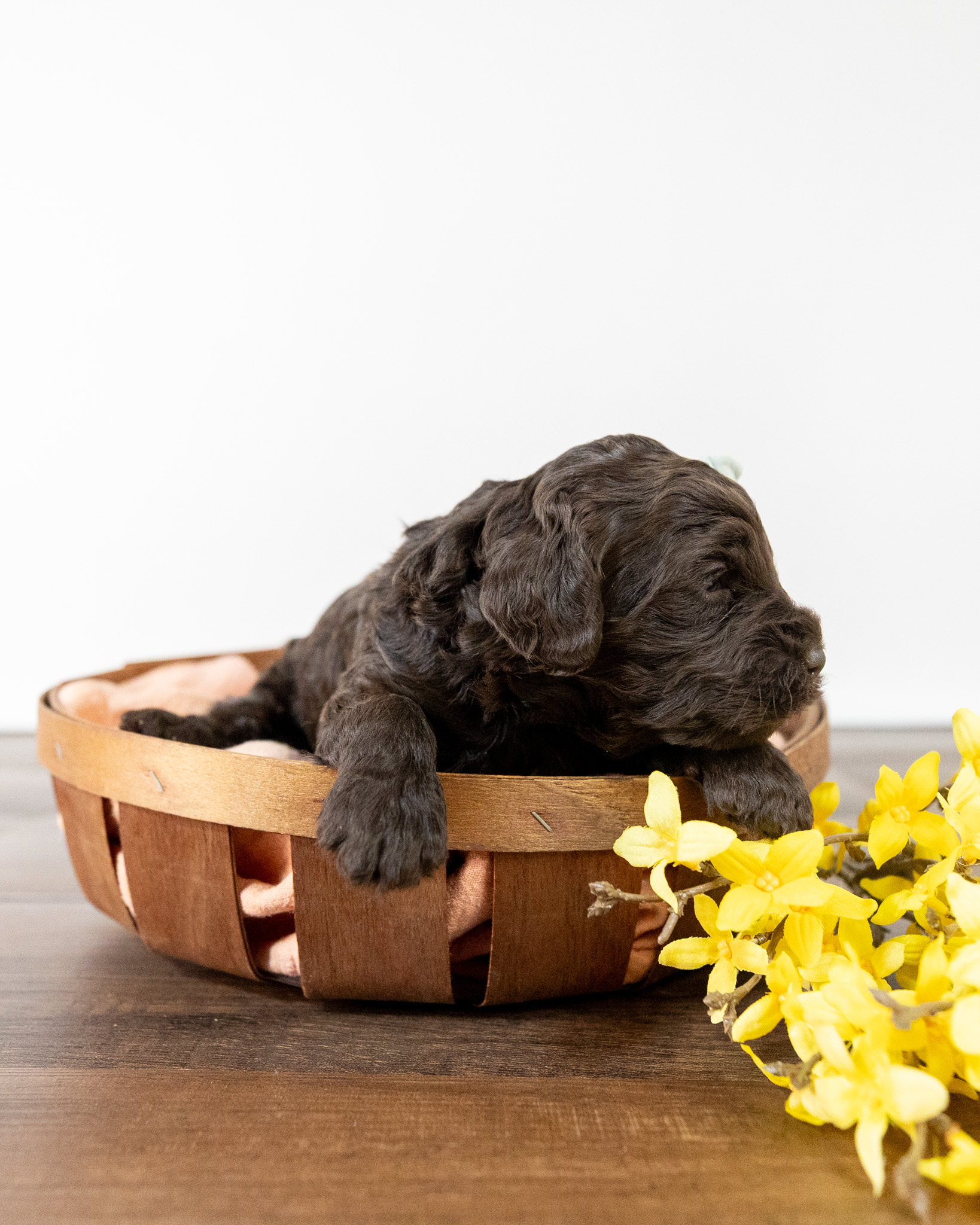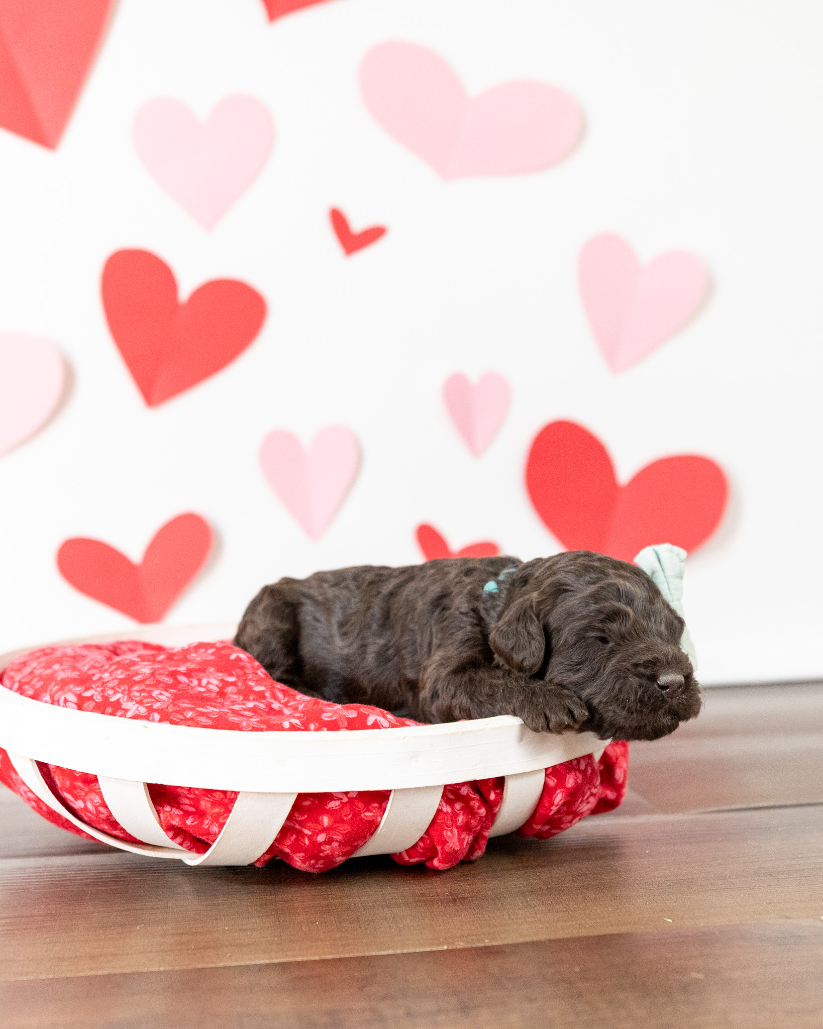 Athena is a medium multigen Labradoodle puppy who will be ready for her forever home March 17th! Her soft, fluffy coat is hypoallergenic and non-shedding, ensuring endless snuggles without fear of allergic reactions.