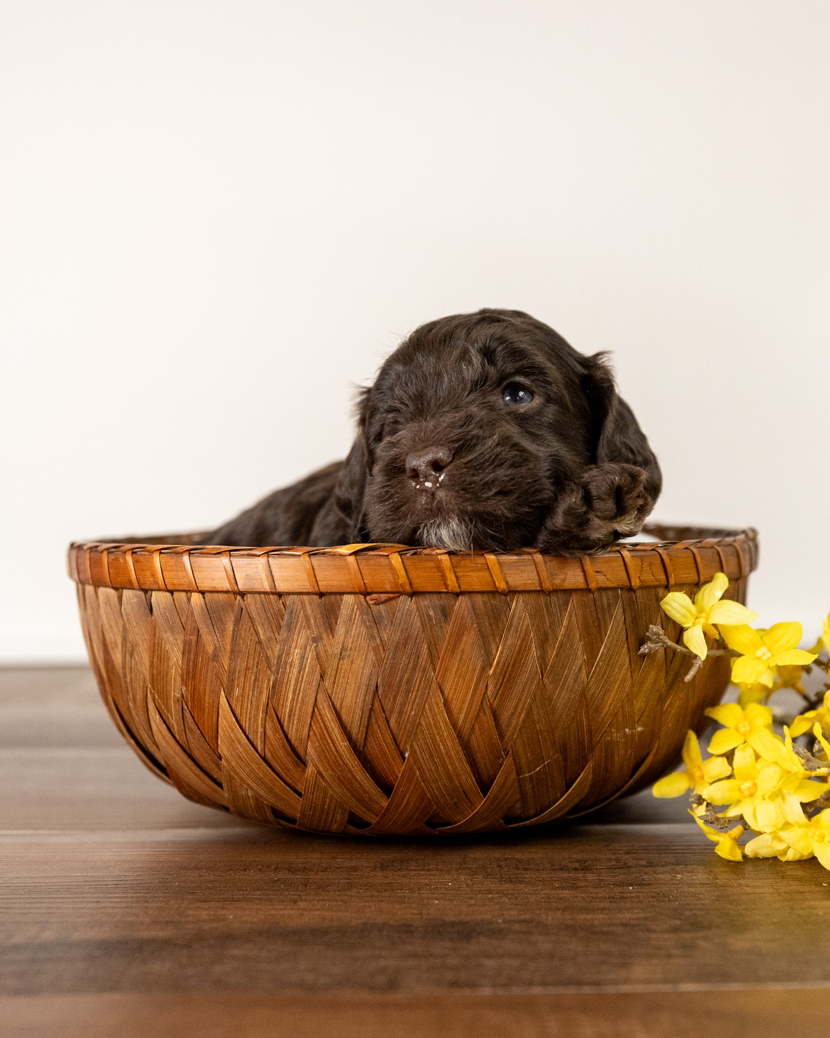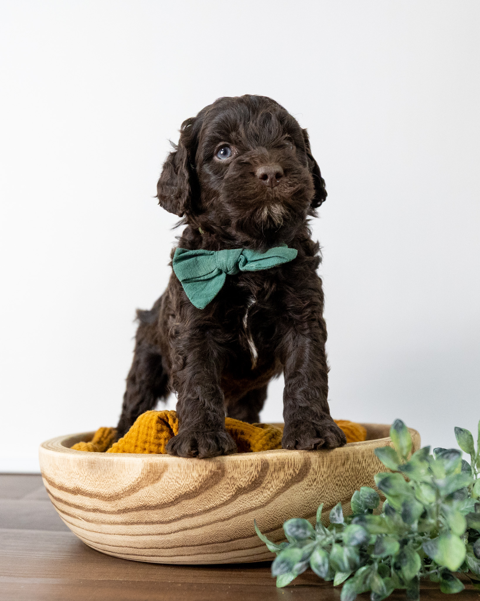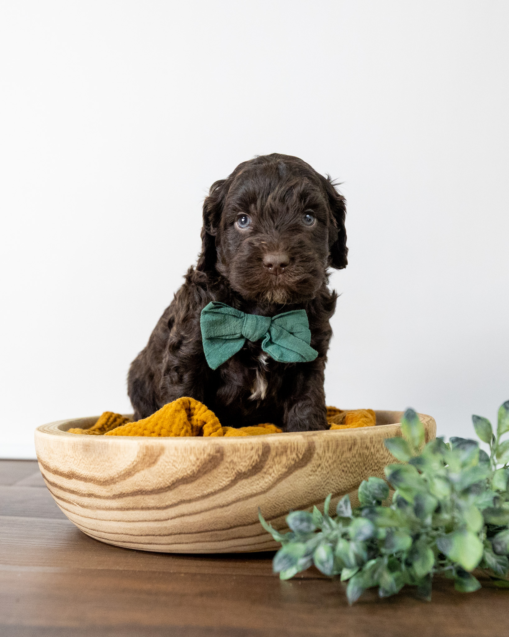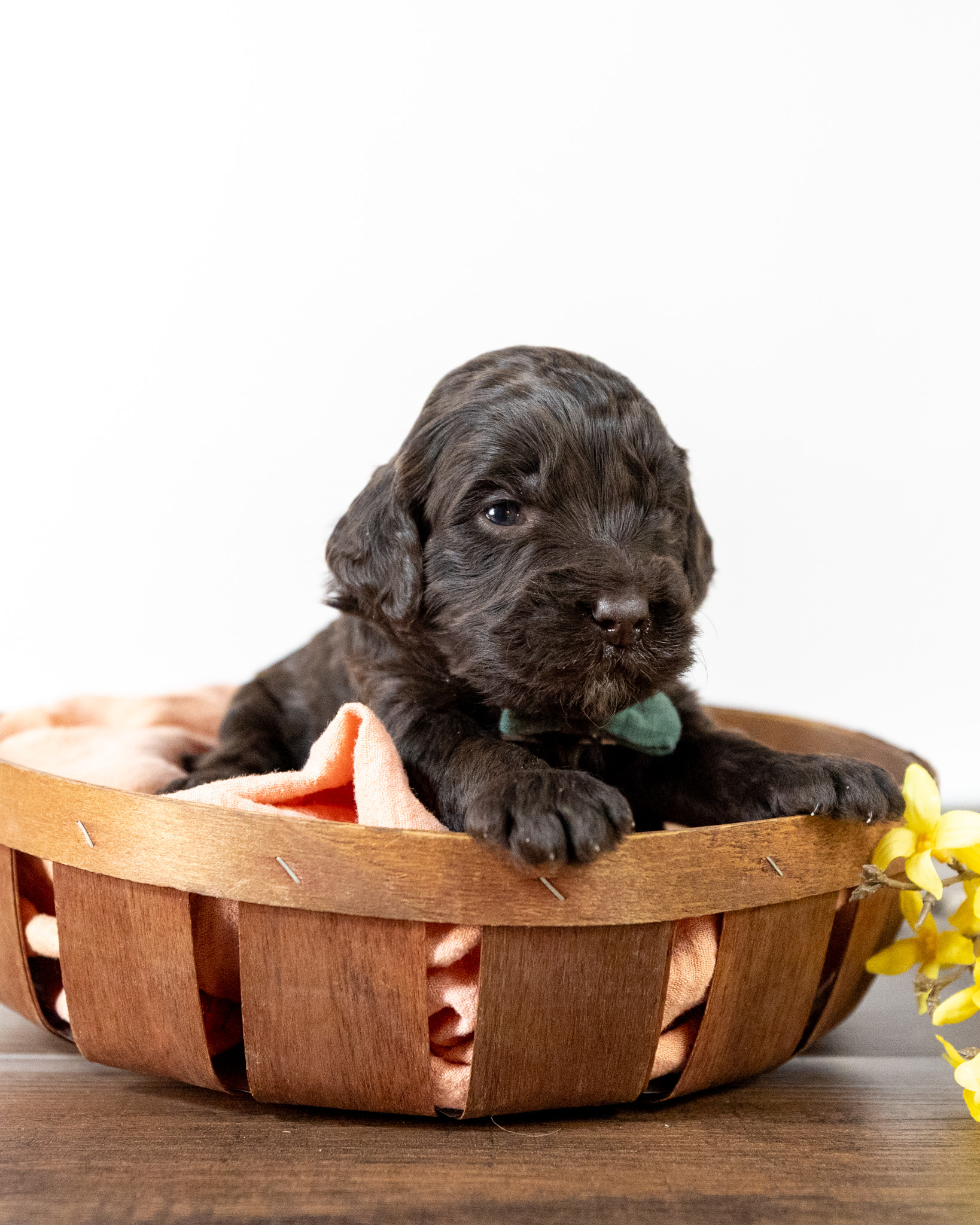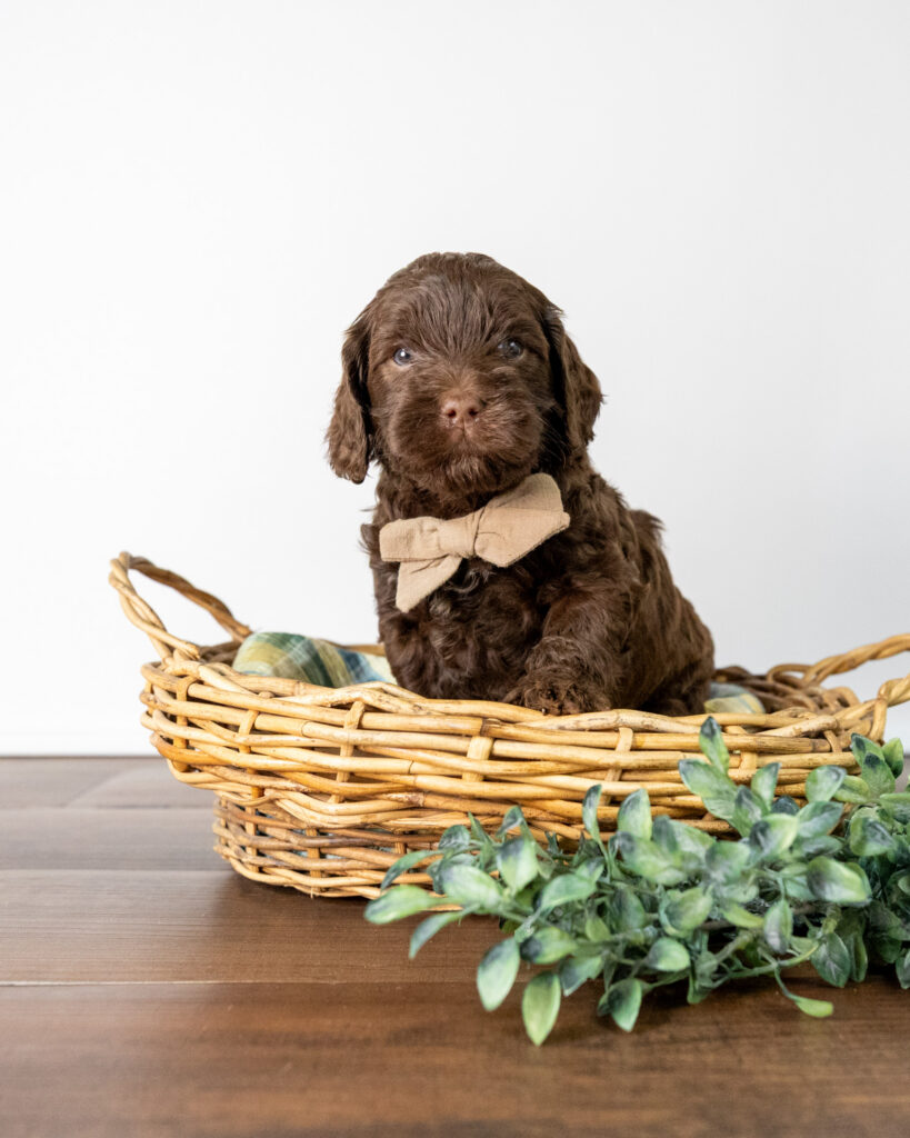 Emmett is a medium multigen Labradoodle puppy who will be ready for his forever home March 17th! His soft, fluffy coat is hypoallergenic and non-shedding, ensuring endless snuggles without fear of allergic reactions.
