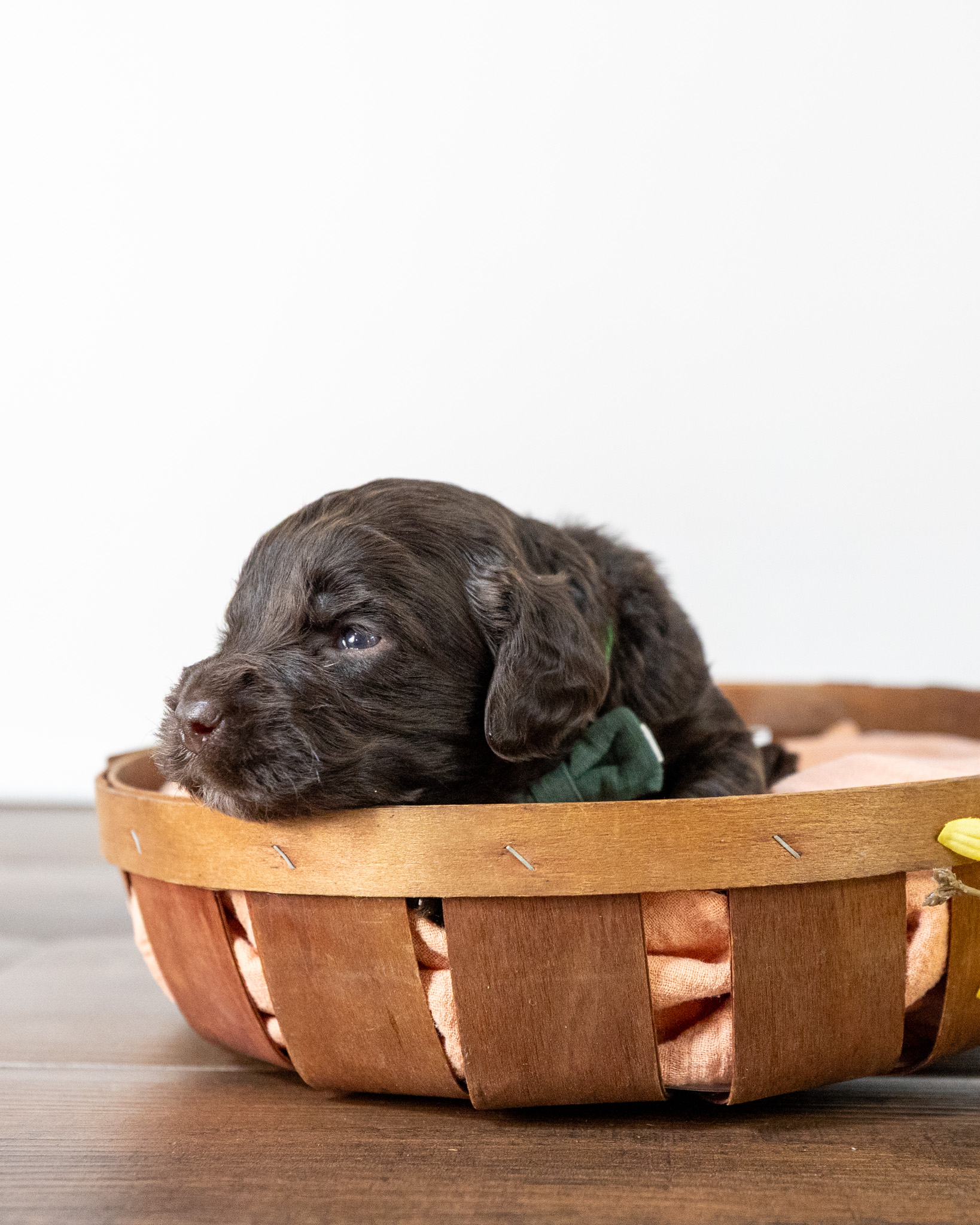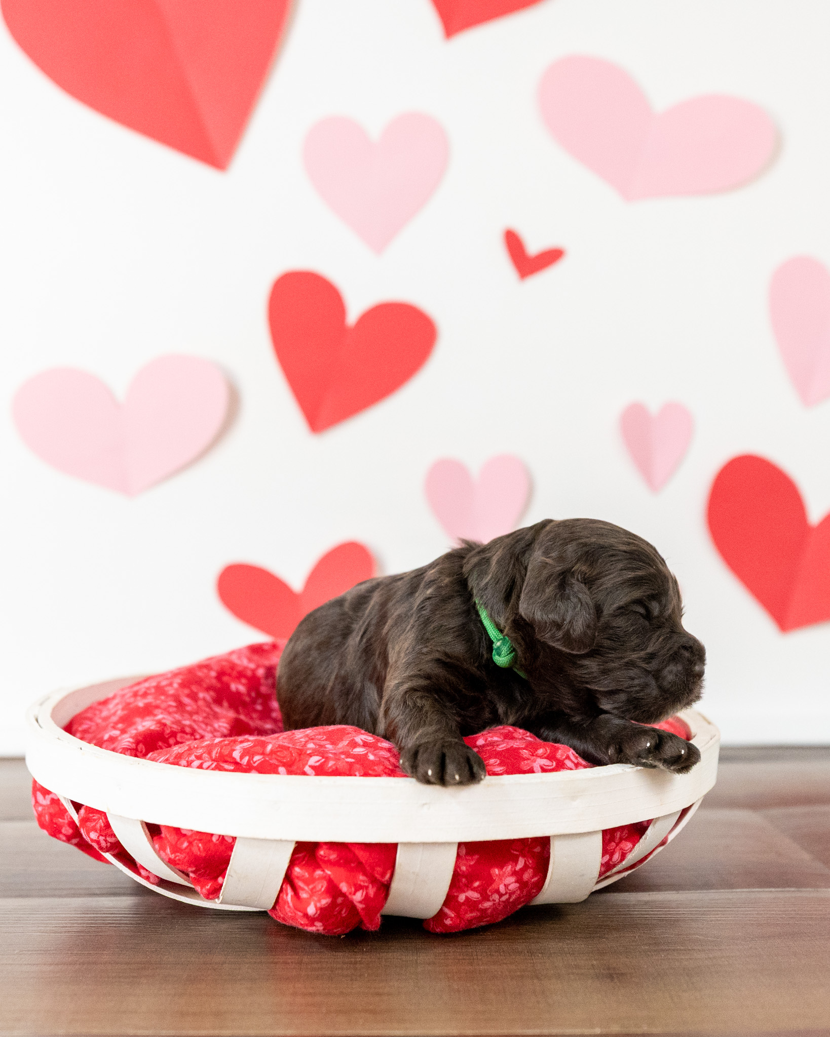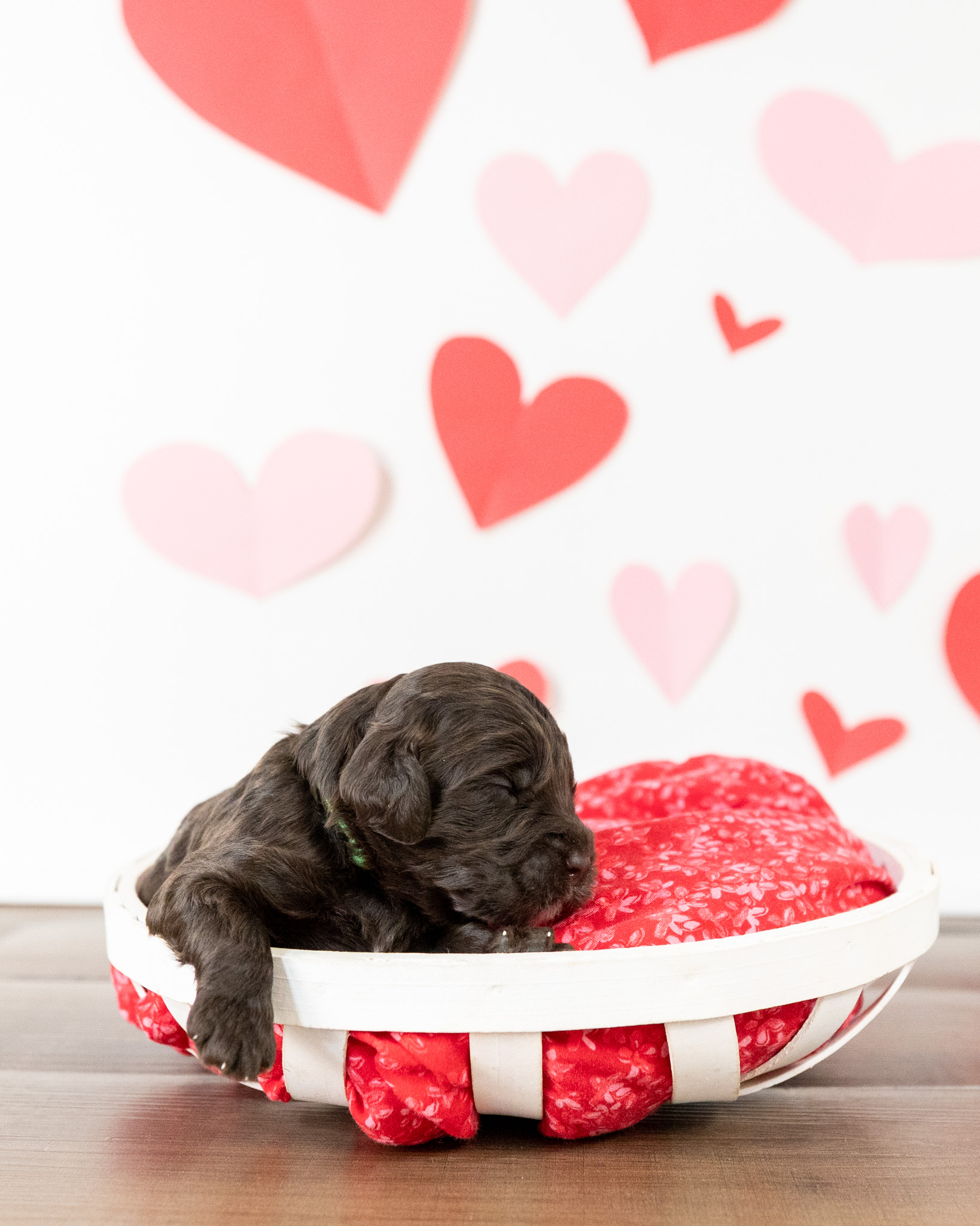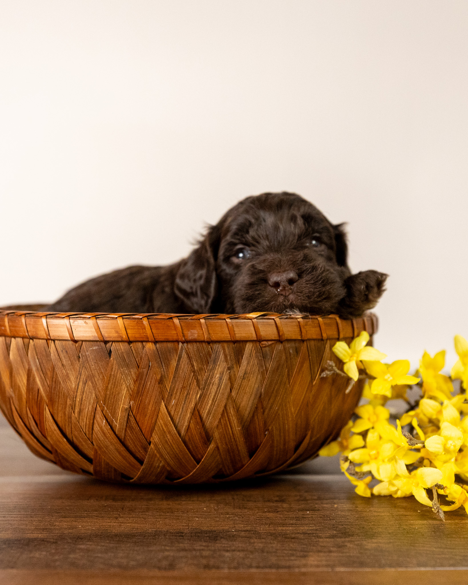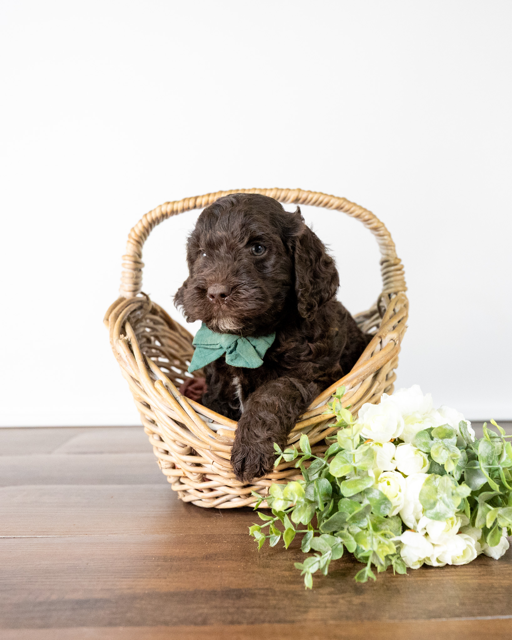 Emmett is a medium multigen Labradoodle puppy who will be ready for his forever home March 17th! His soft, fluffy coat is hypoallergenic and non-shedding, ensuring endless snuggles without fear of allergic reactions.