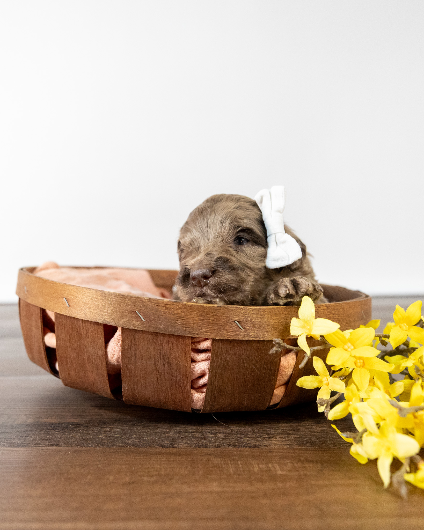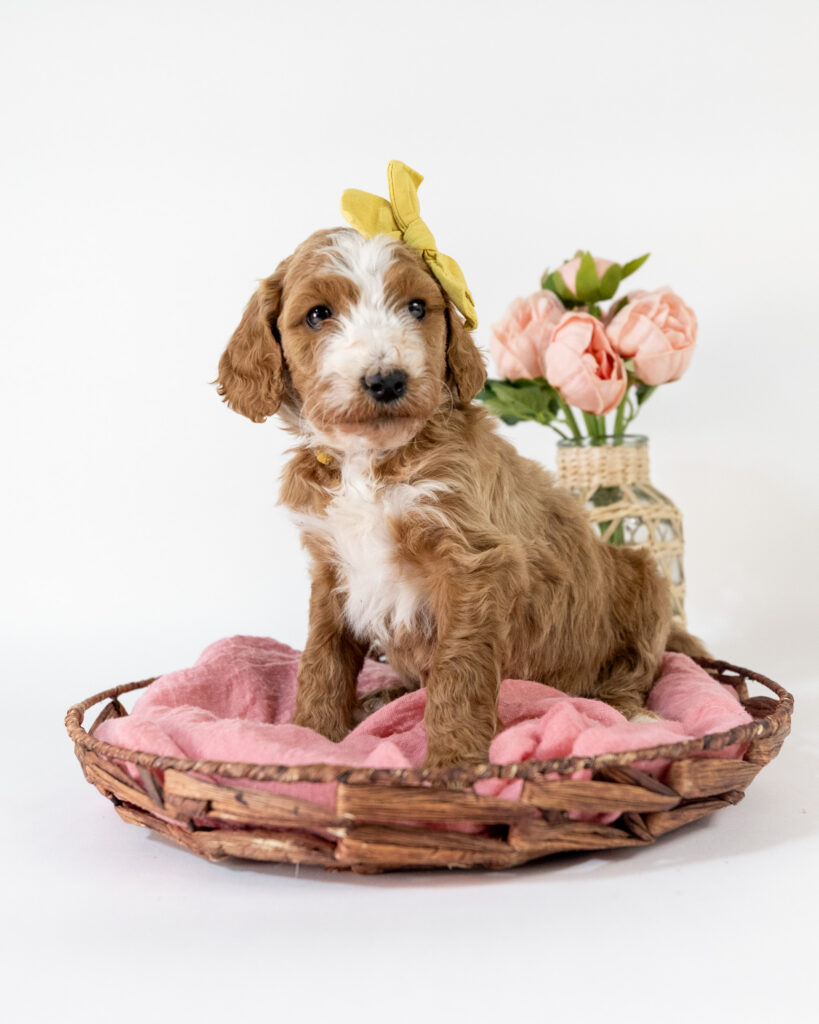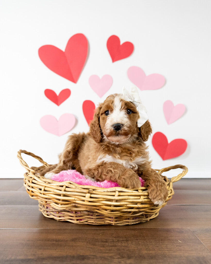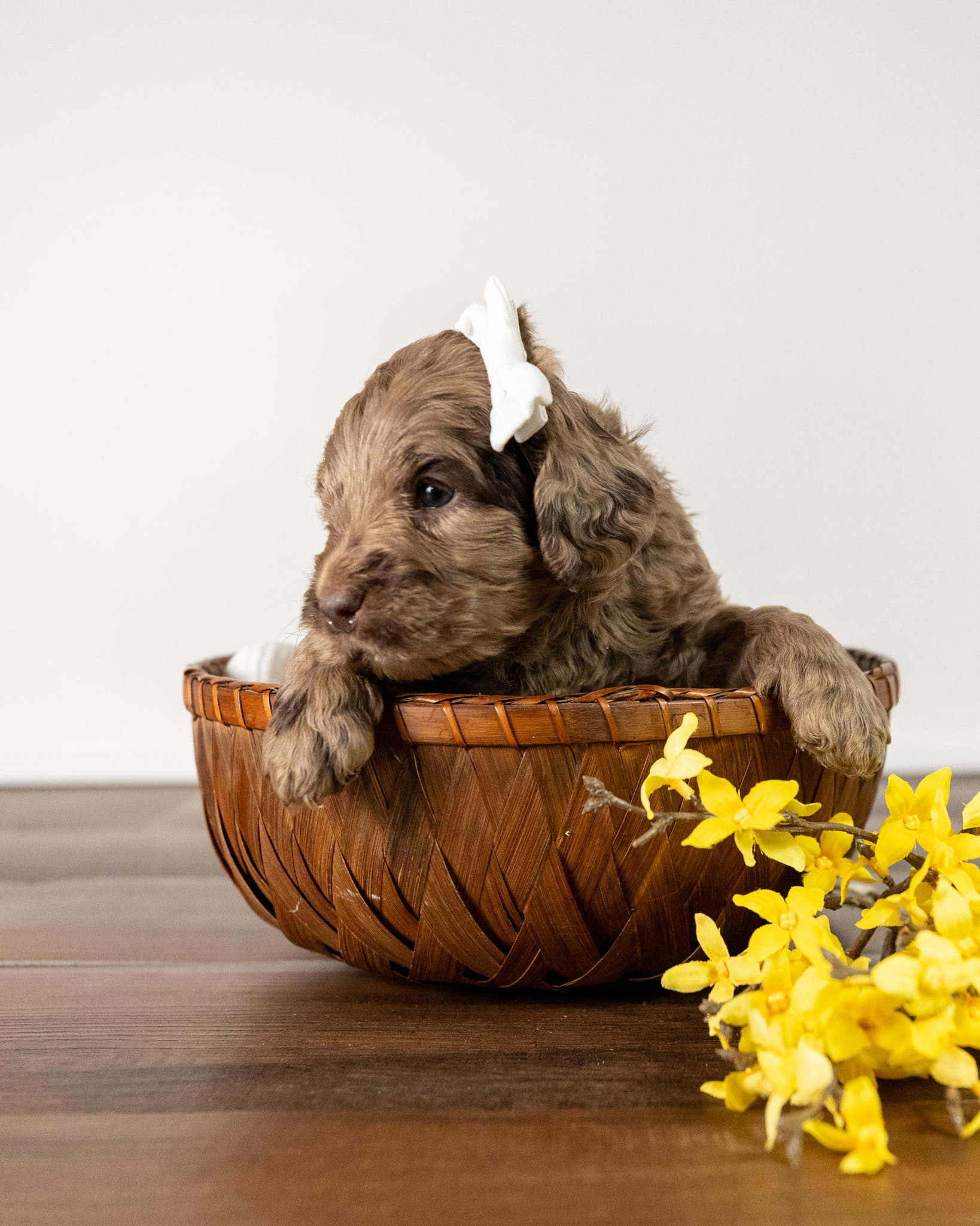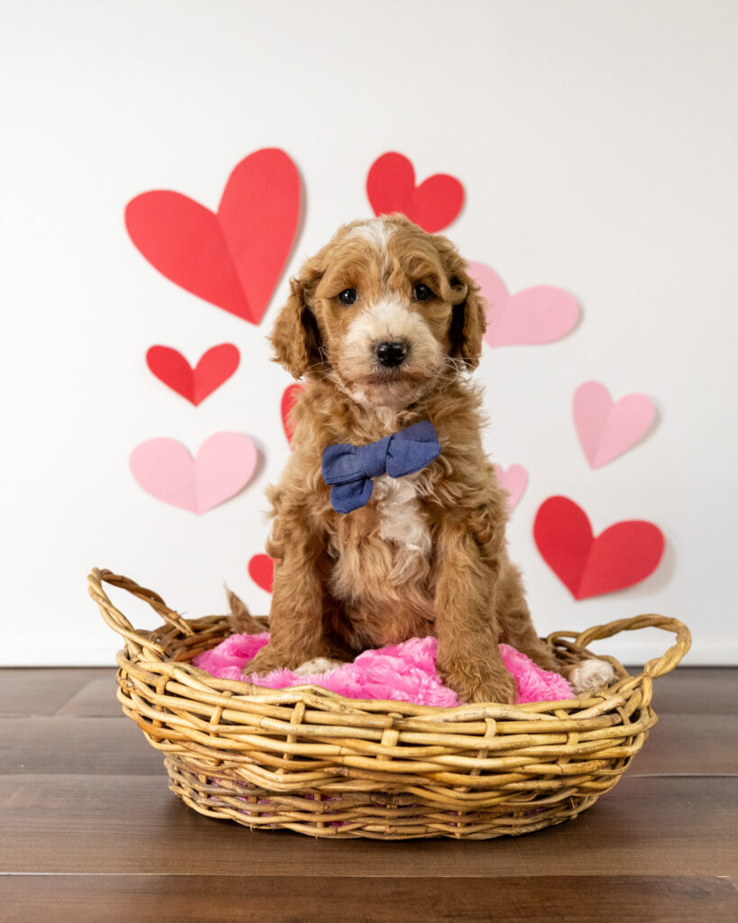 Izzy is a medium multigen Labradoodle puppy who will be ready for her forever home March 17th! Her soft, fluffy coat is hypoallergenic and non-shedding, ensuring endless snuggles without fear of allergic reactions.