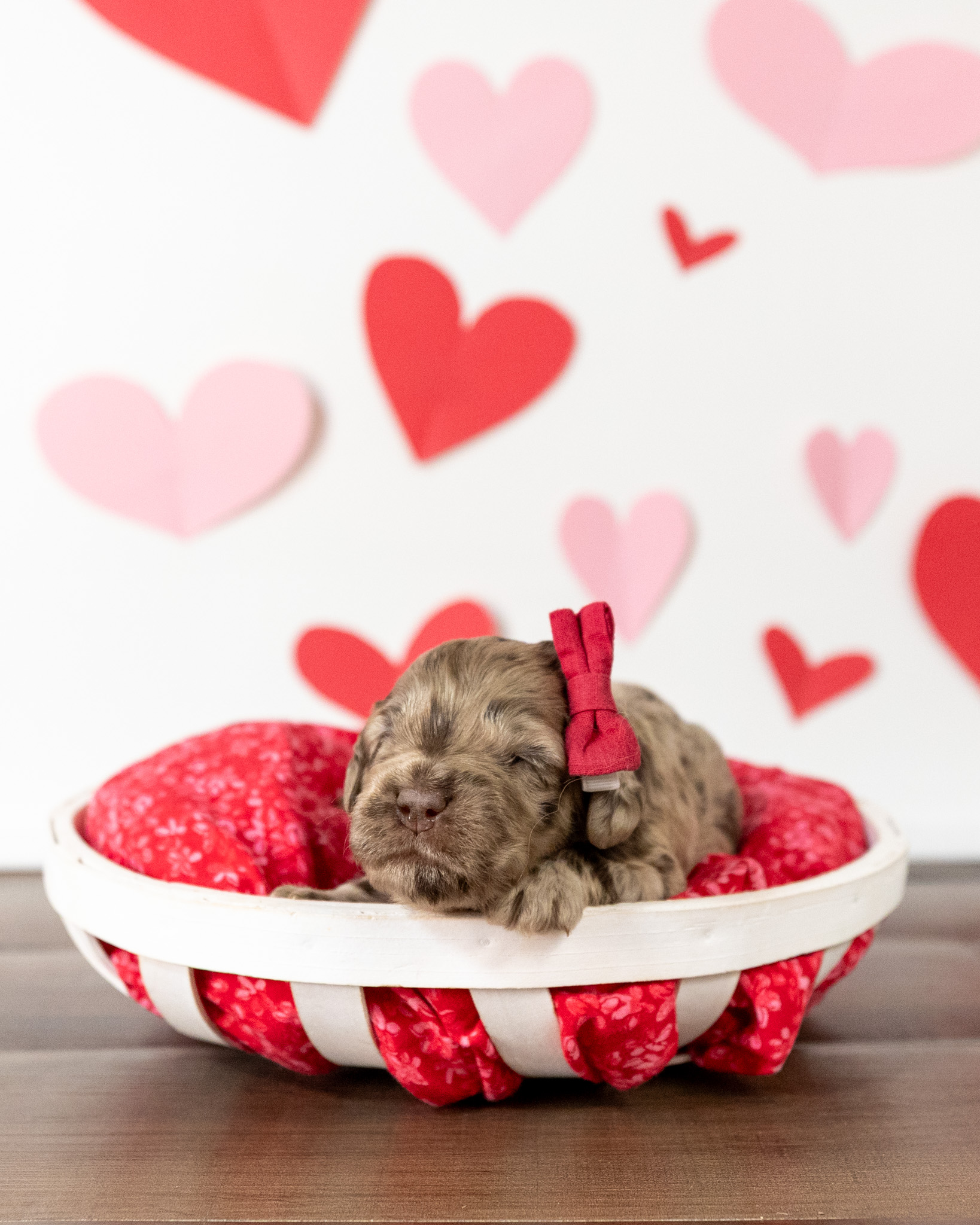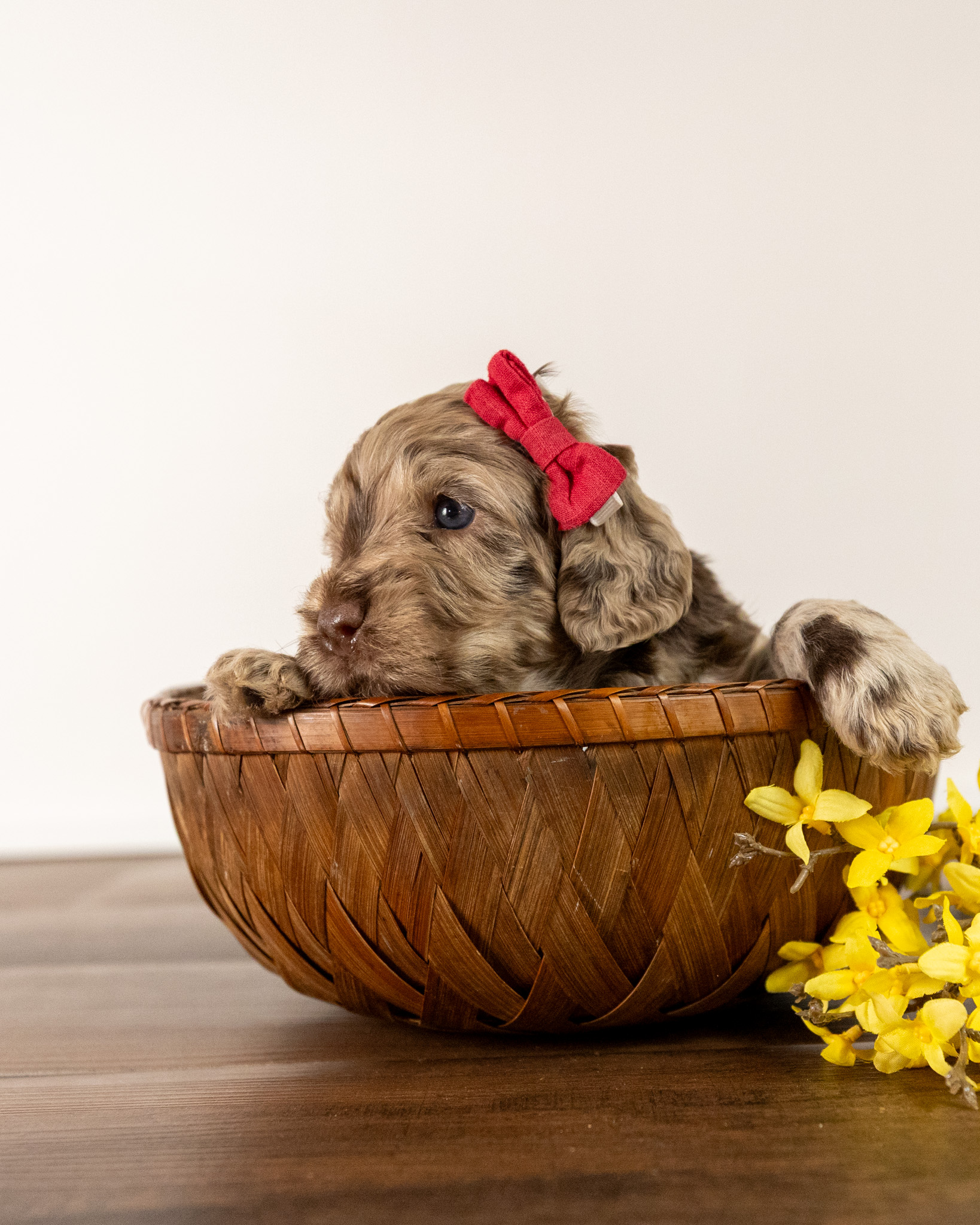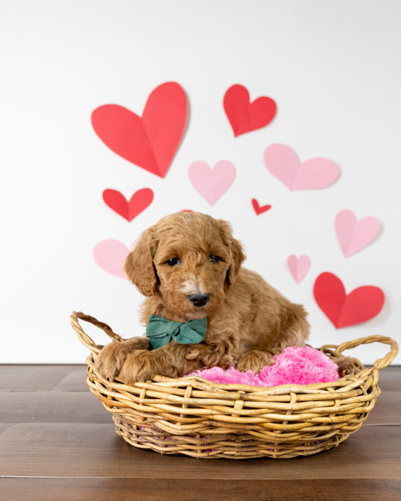 Ruby is a medium multigen Labradoodle puppy who will be ready for her forever home March 17th! Her soft, fluffy coat is hypoallergenic and non-shedding, ensuring endless snuggles without fear of allergic reactions.