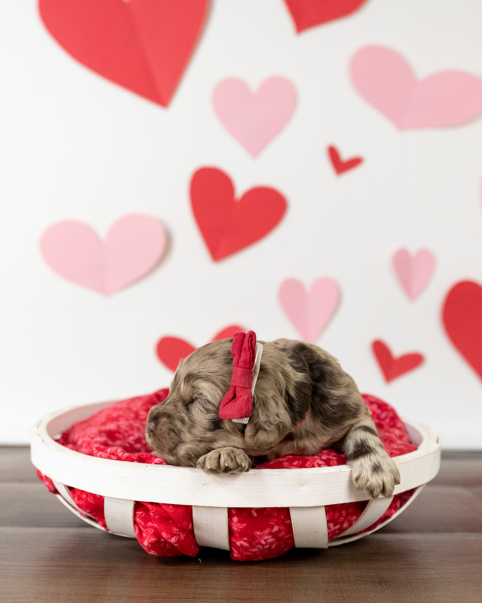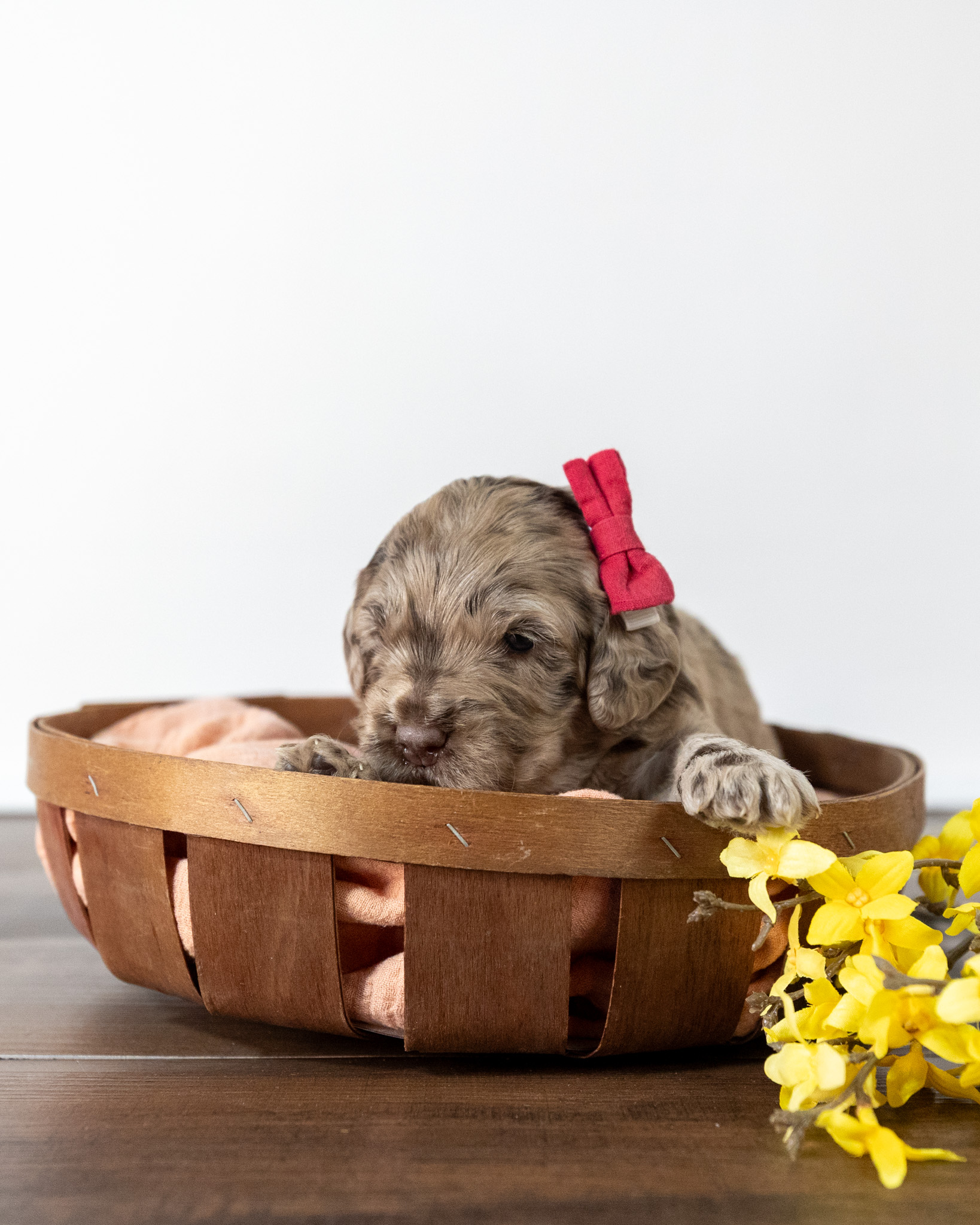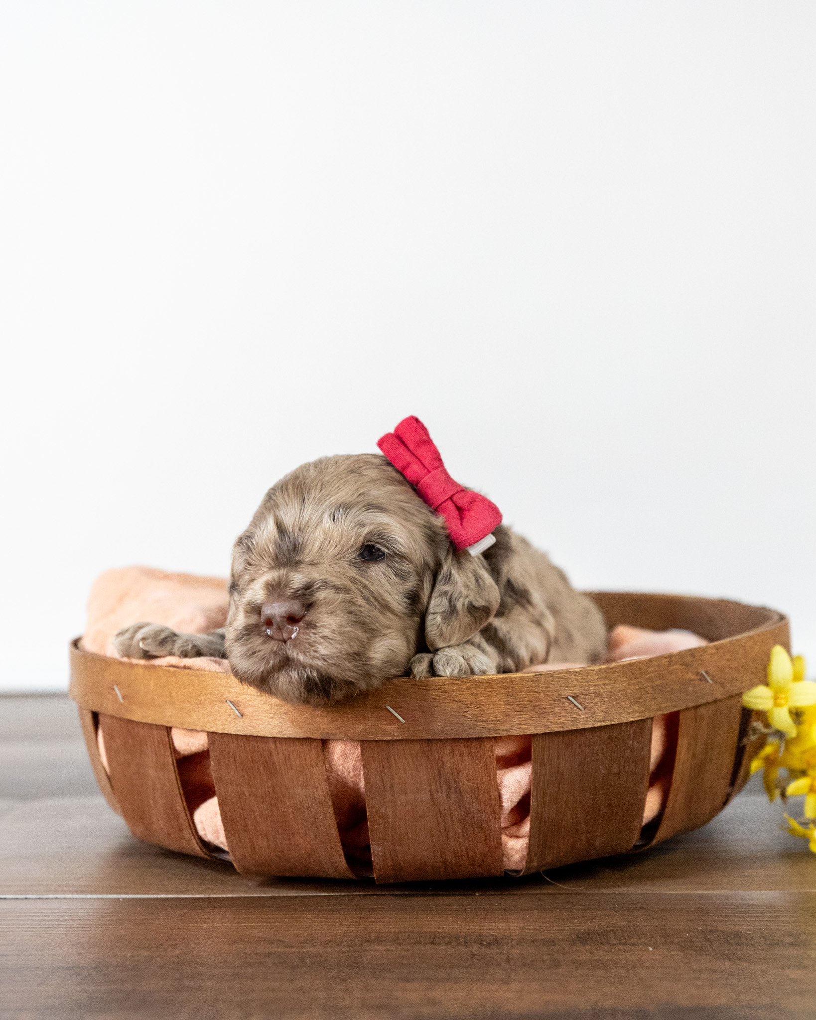 Ruby is a medium multigen Labradoodle puppy who will be ready for her forever home March 17th! Her soft, fluffy coat is hypoallergenic and non-shedding, ensuring endless snuggles without fear of allergic reactions.
