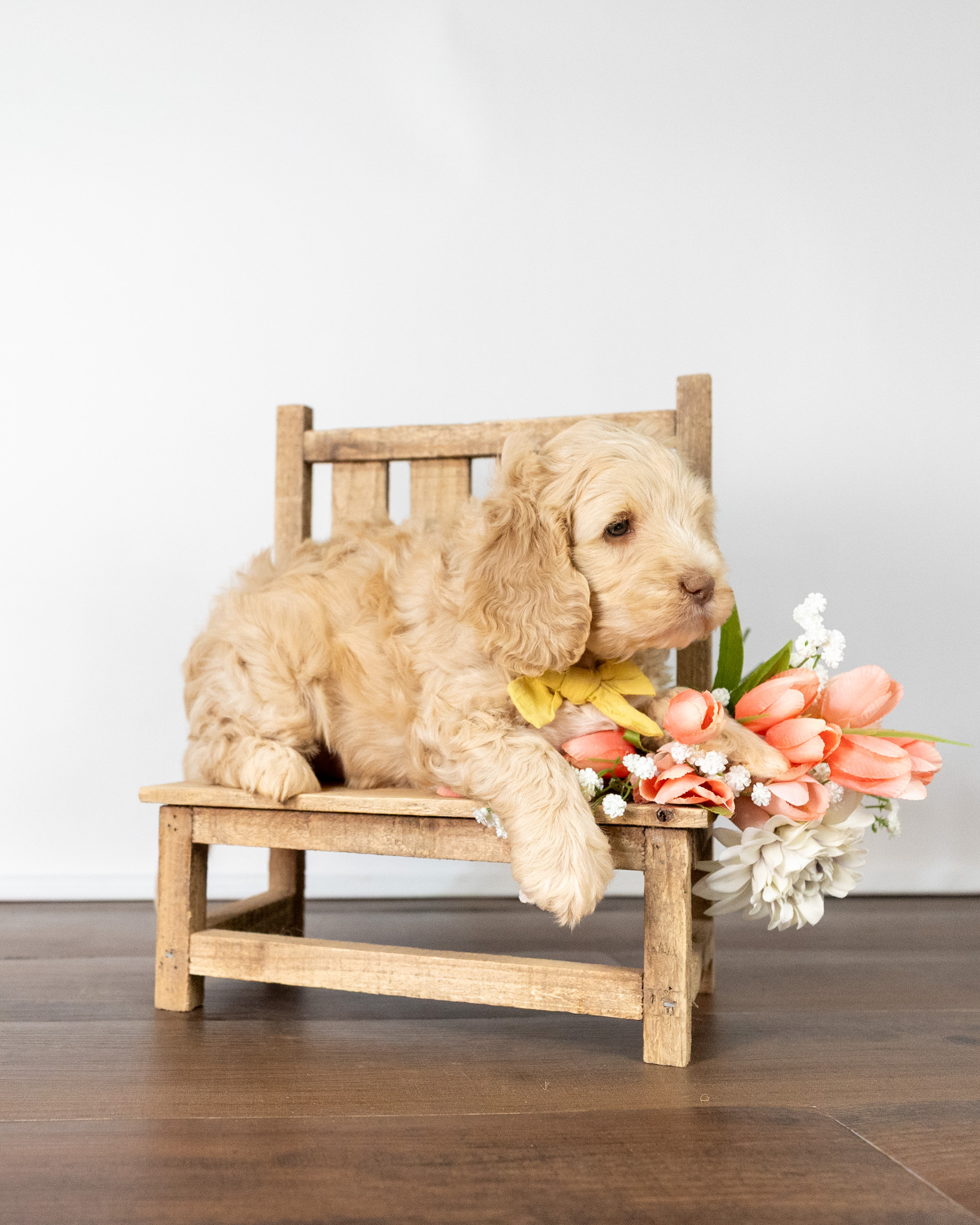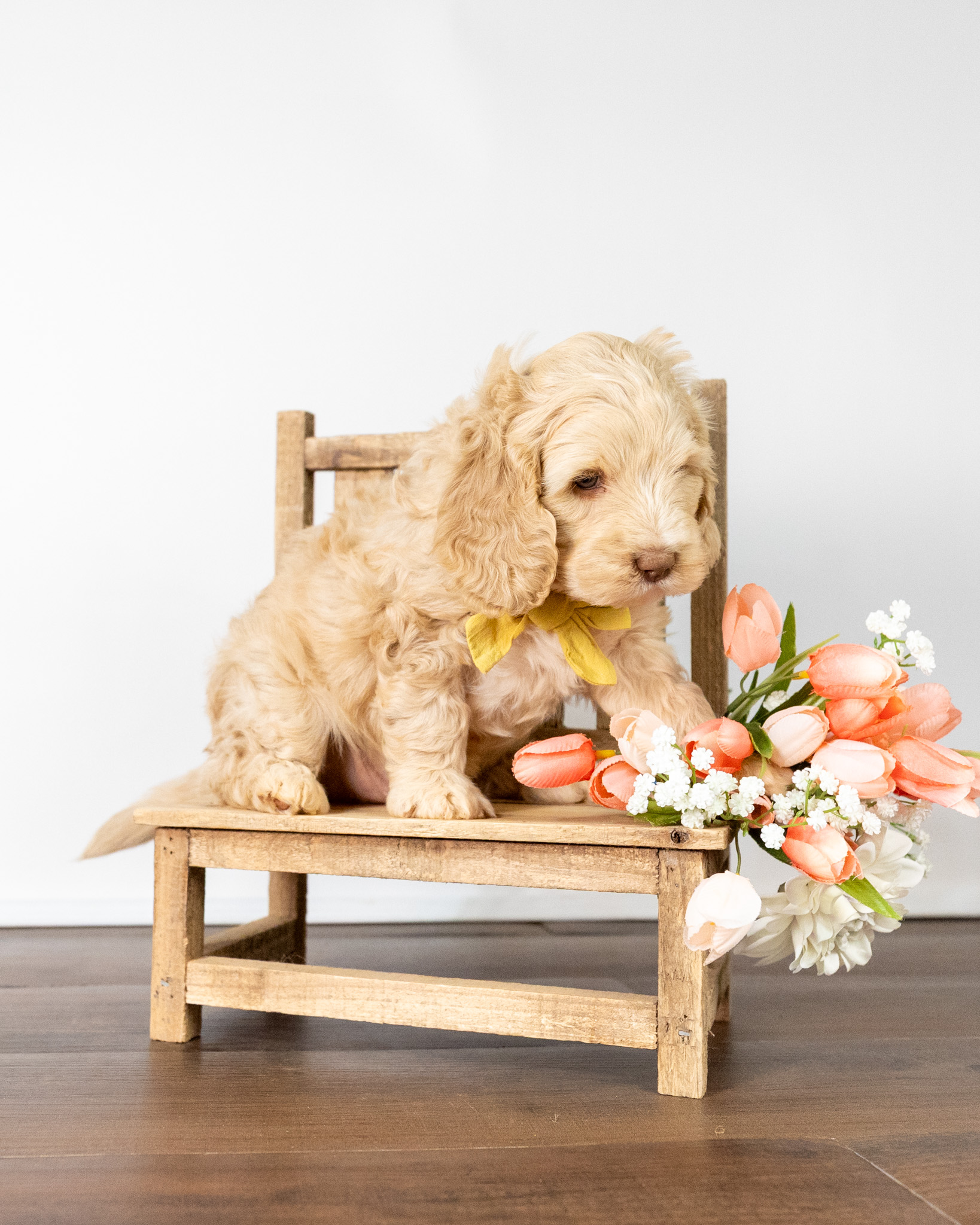 Snickerdoodle is a red mini Cockapoo puppy who will be ready for his forever home around December 13th.