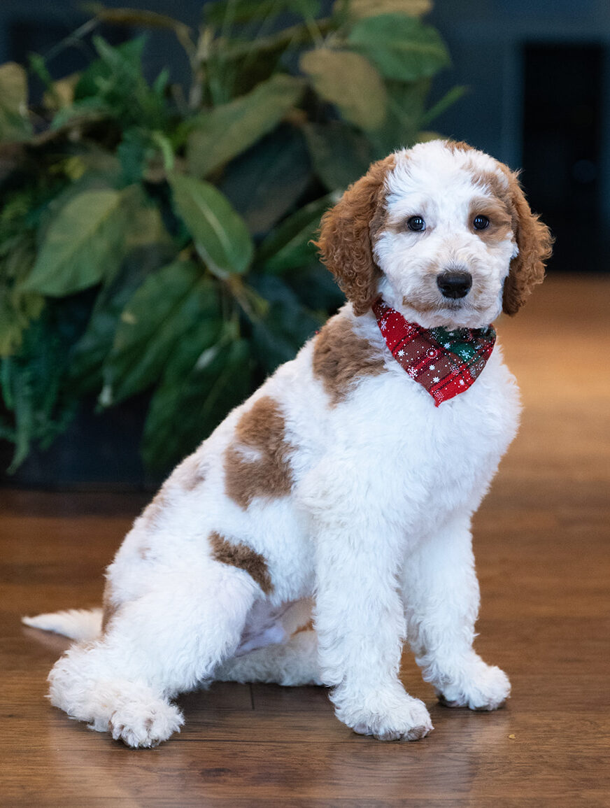 Aspen is a standard multigen Goldendoodle puppy who will be completing his third month of training on January 27th! His soft, fluffy coat is hypoallergenic and non-shedding, ensuring endless snuggles without fear of allergic reactions.