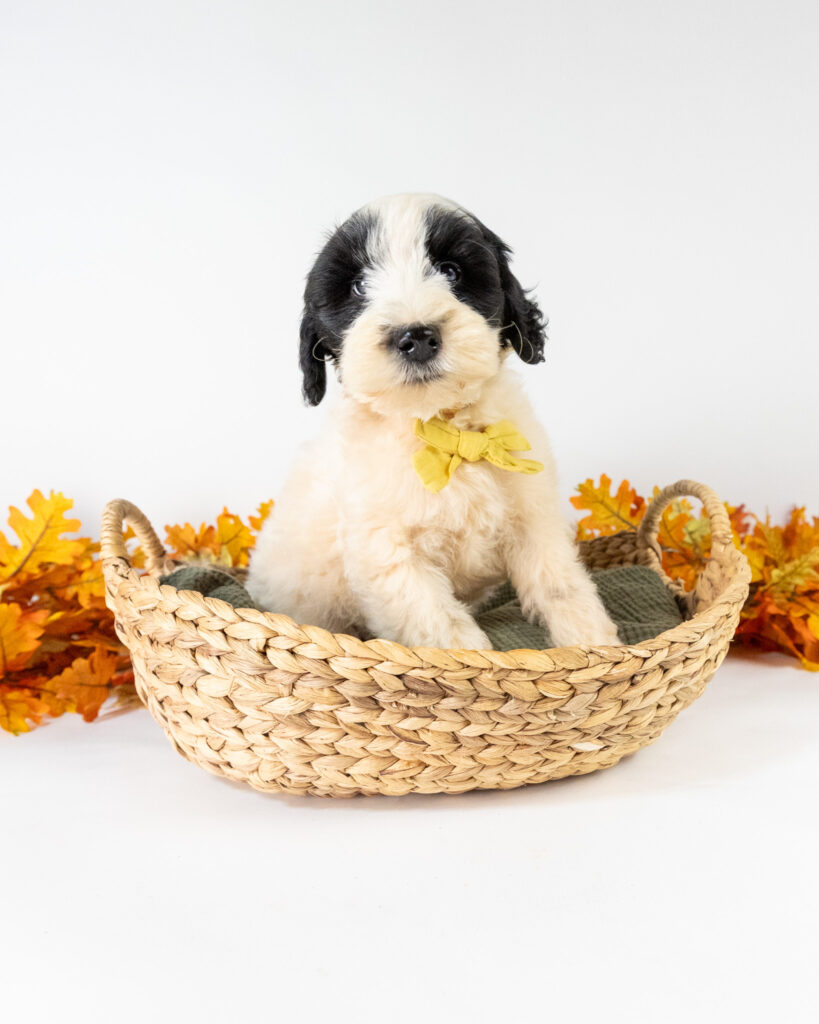 Olaf is a standard multigen Goldendoodle puppy who will graduate from our 1 month training program in December! His soft, fluffy coat is hypoallergenic and non-shedding, ensuring endless snuggles without fear of allergic reactions.