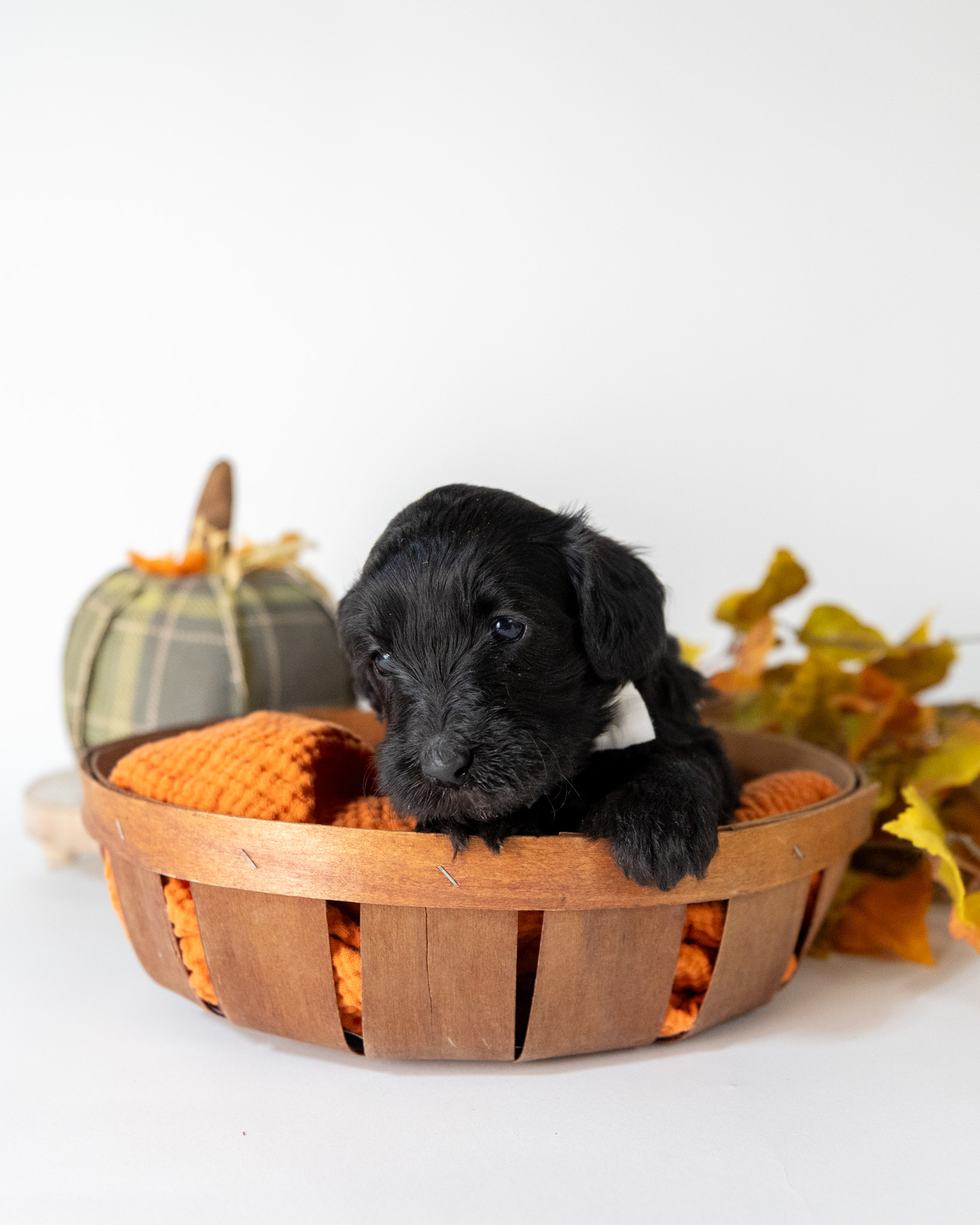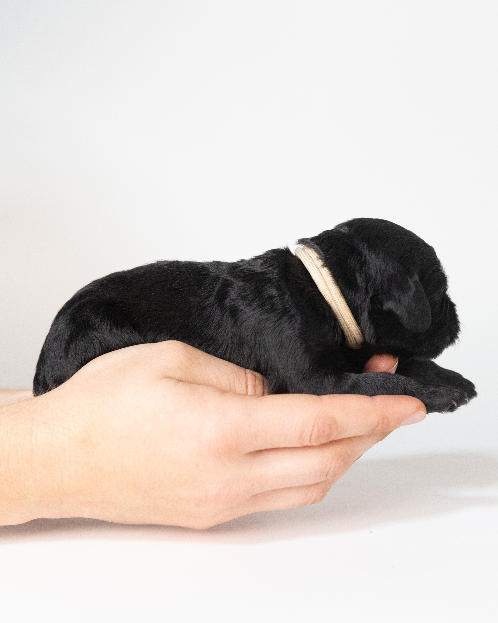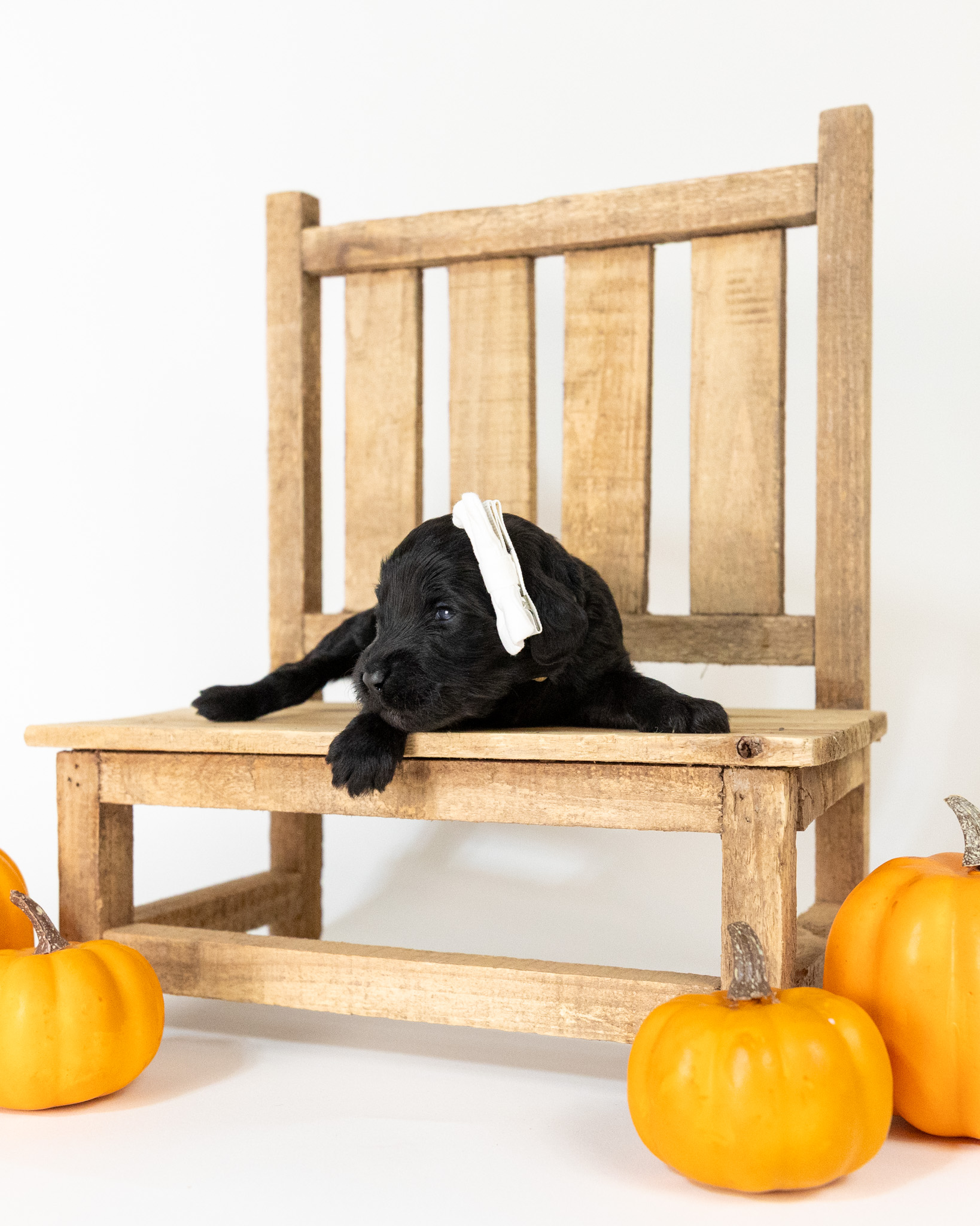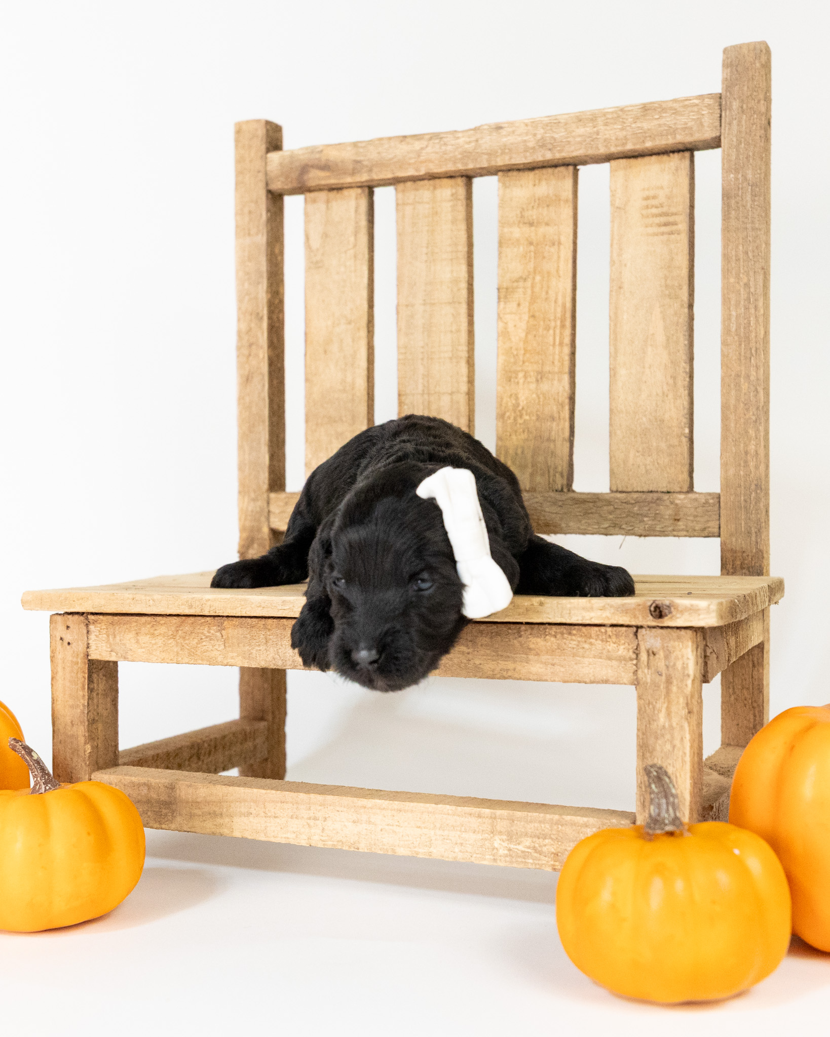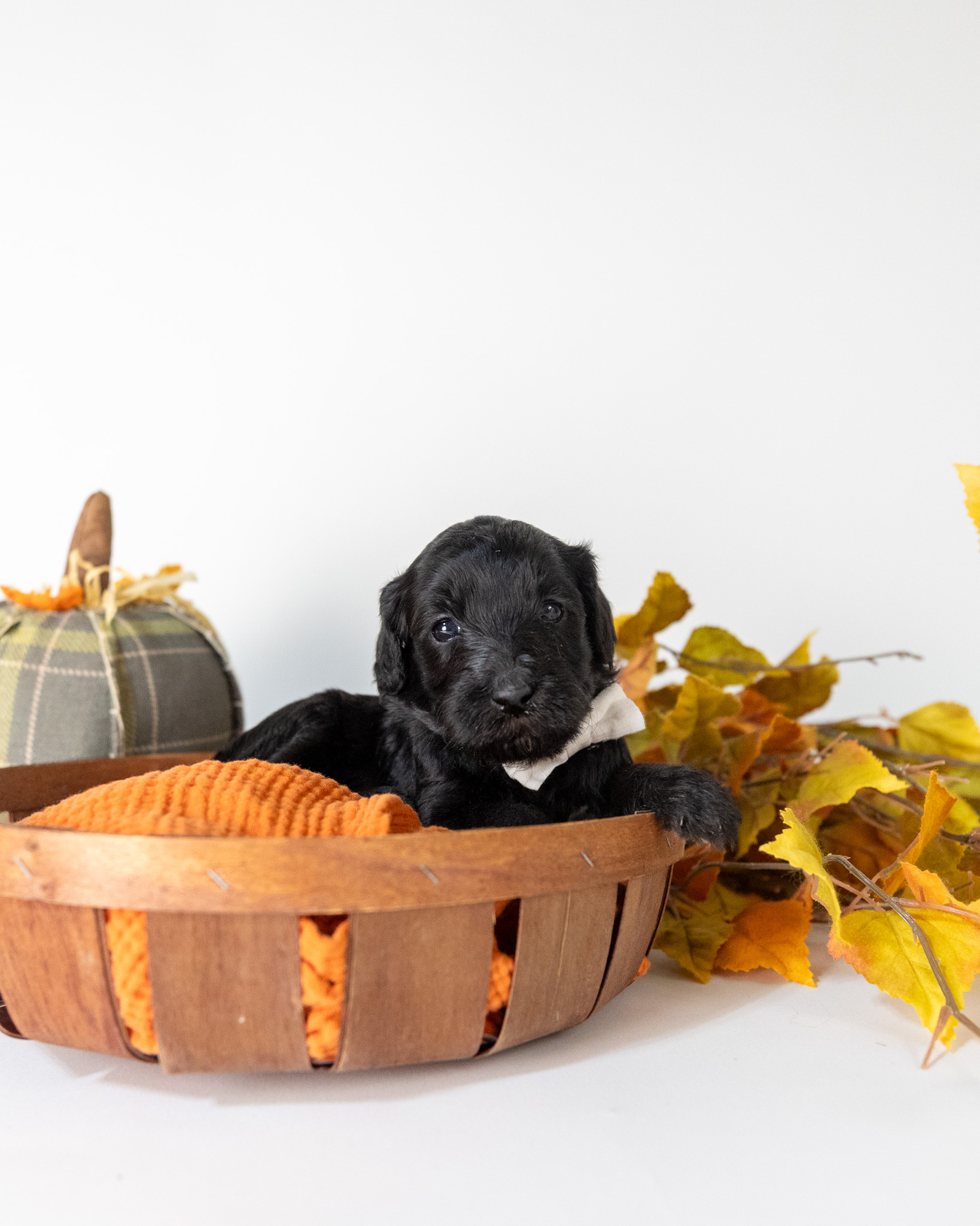 Blitzen is a black multigen Goldendoodle puppy who will be ready for her fur-ever home around December 16th! Her soft, fluffy coat is hypoallergenic and non-shedding, ensuring endless snuggles without fear of allergic reactions. With a loyal and affectionate temperament, she is the perfect forever friend!
