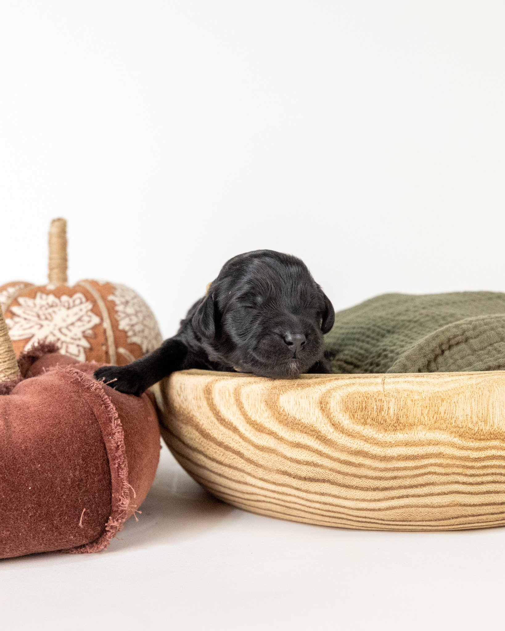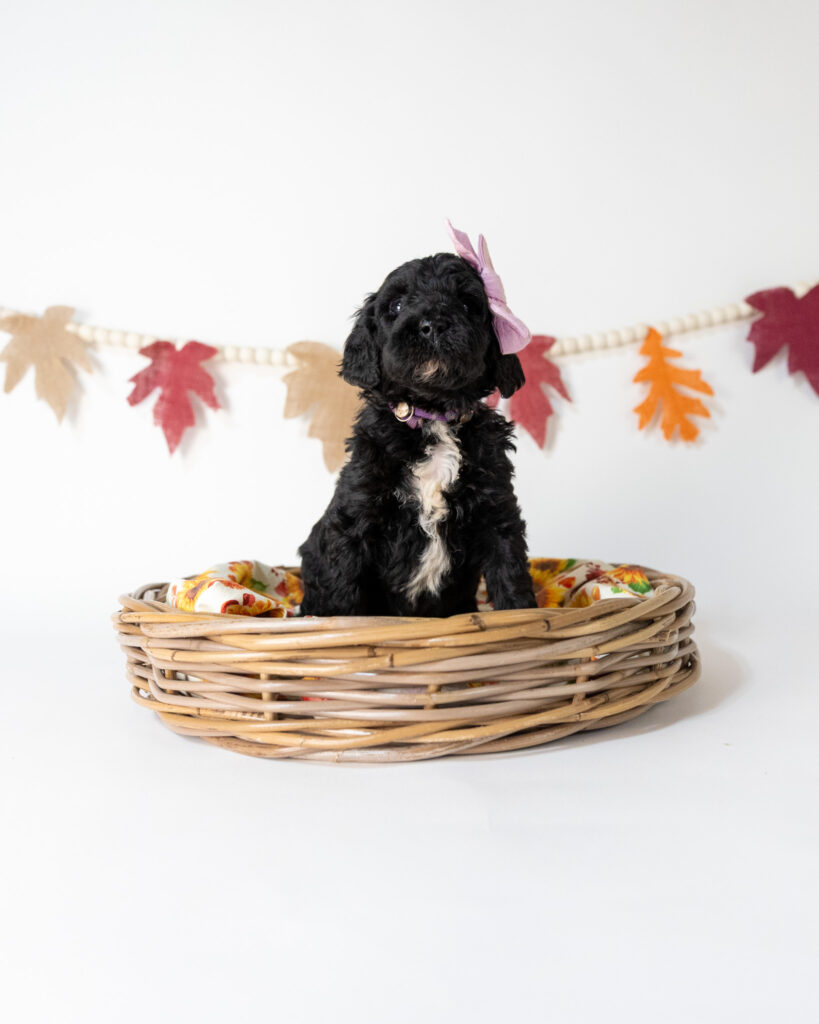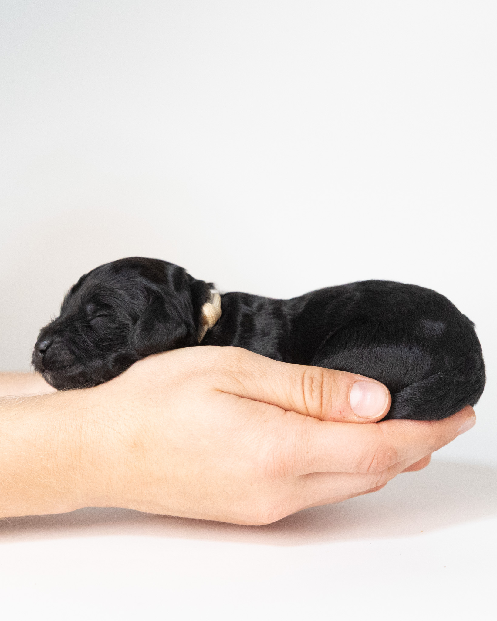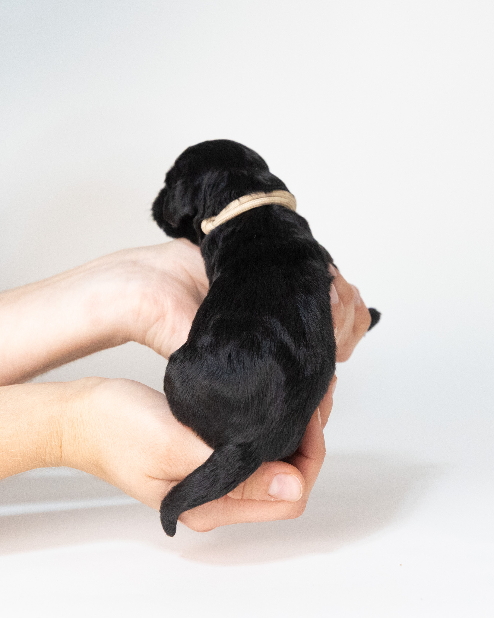 Blitzen is a black multigen Goldendoodle puppy who will be ready for her fur-ever home around December 16th! Her soft, fluffy coat is hypoallergenic and non-shedding, ensuring endless snuggles without fear of allergic reactions. With a loyal and affectionate temperament, she is the perfect forever friend!