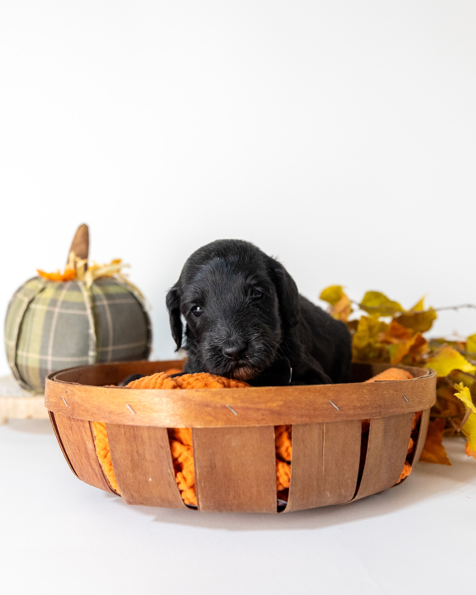 Igloo is a black male standard Goldendoodle puppy who will be ready for his  forever home around January 7th.
