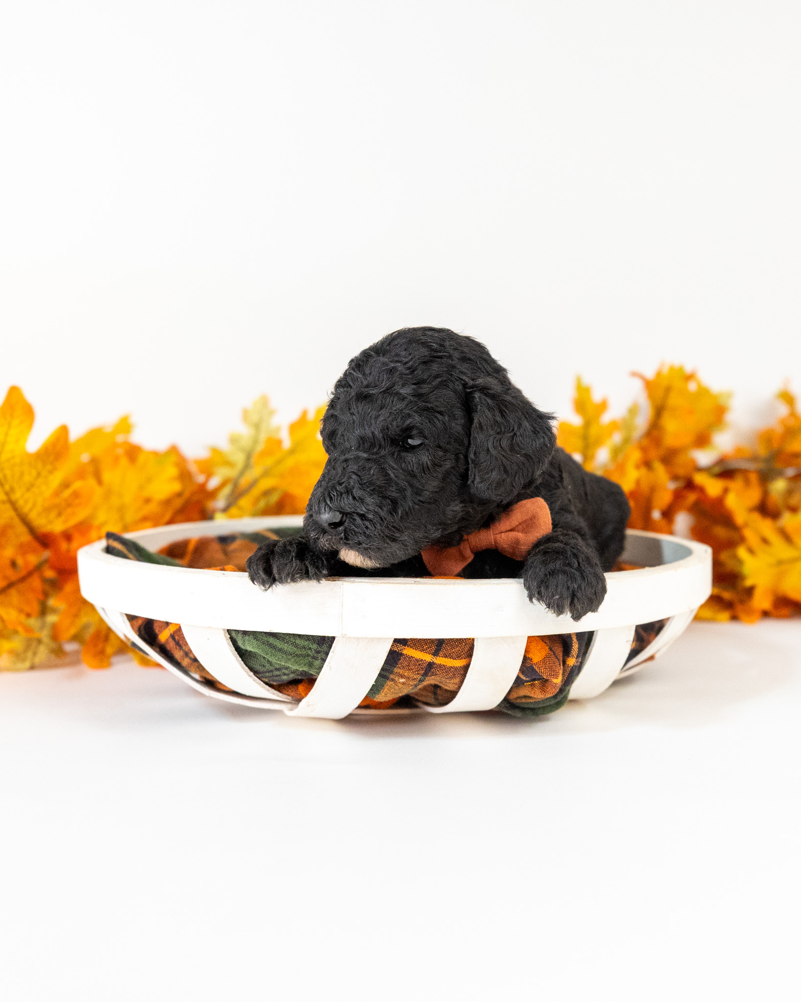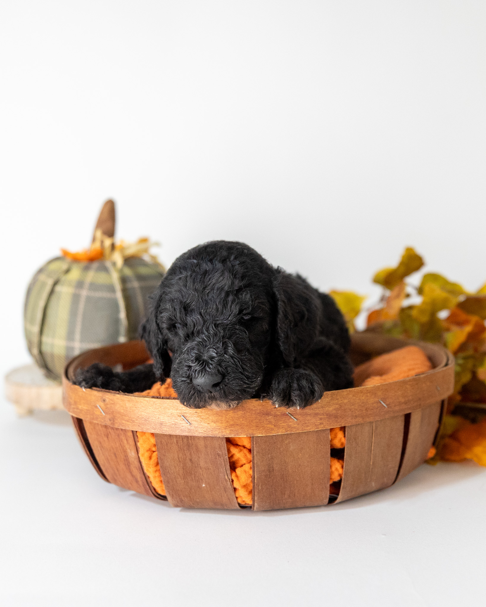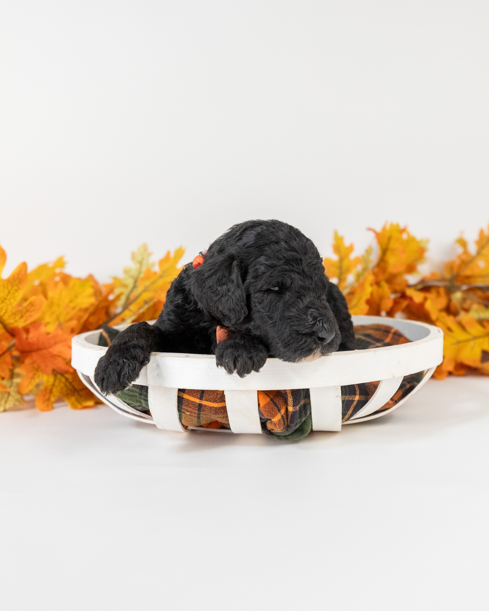 Rudolph is a black multigen Goldendoodle puppy who will be ready for his fur-ever home around December 16th! His soft, fluffy coat is hypoallergenic and non-shedding, ensuring endless snuggles without fear of allergic reactions. With a loyal and affectionate temperament, he is the perfect forever friend!