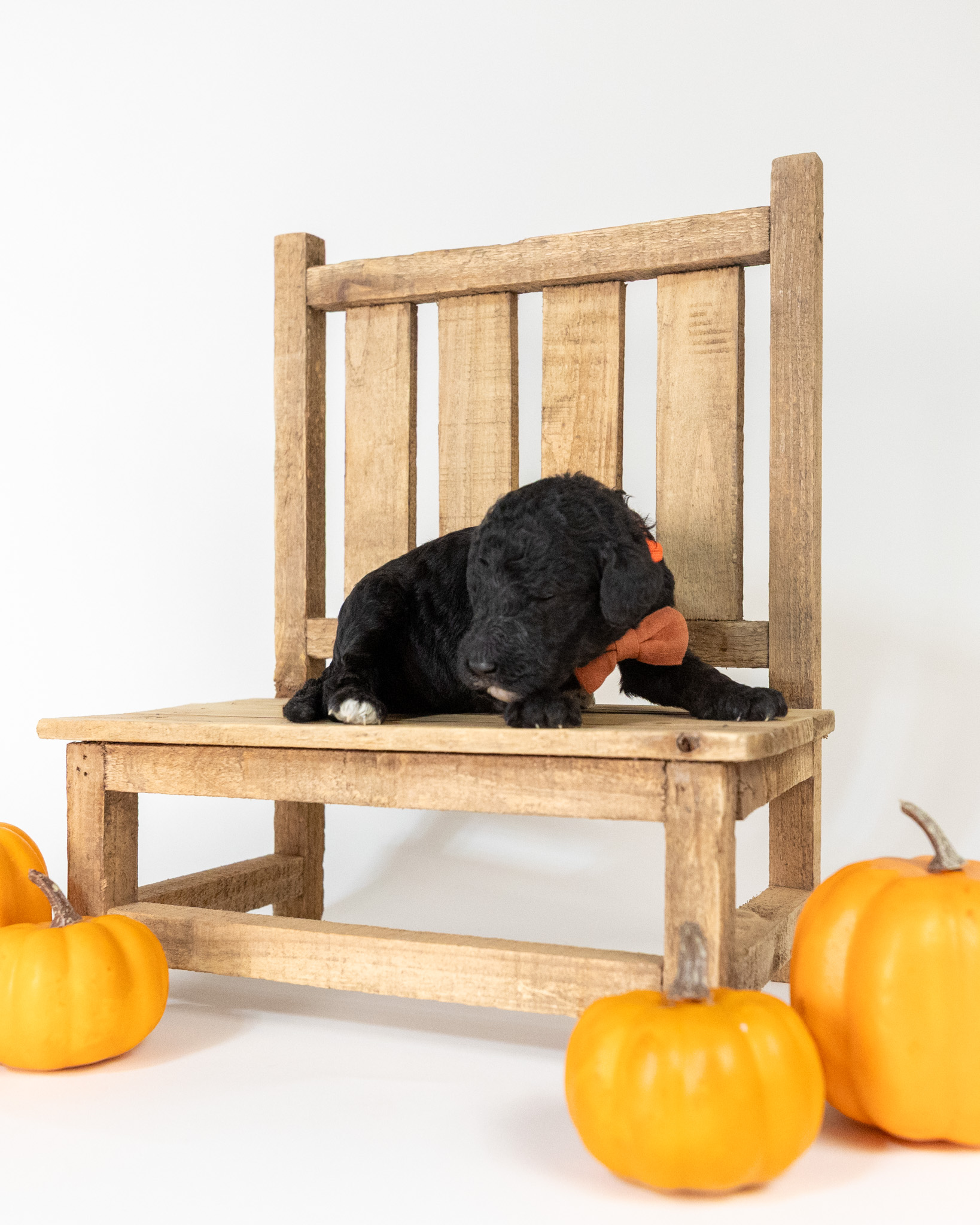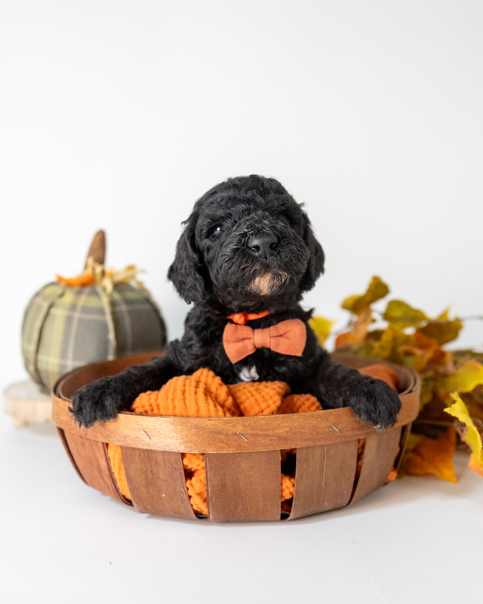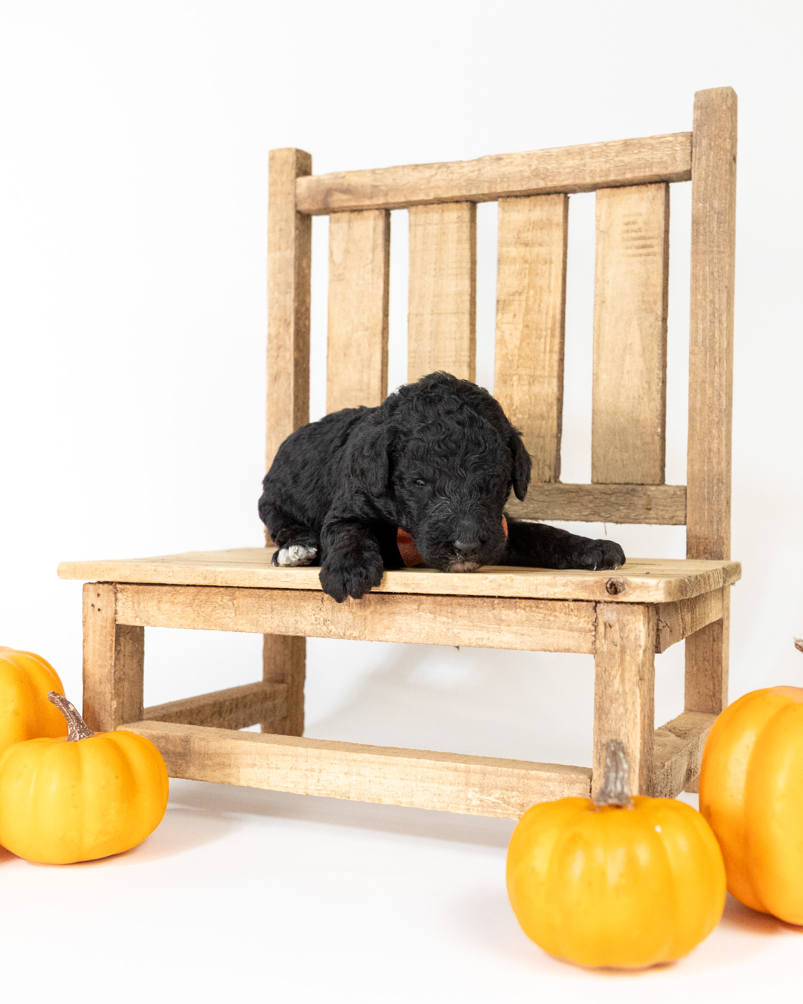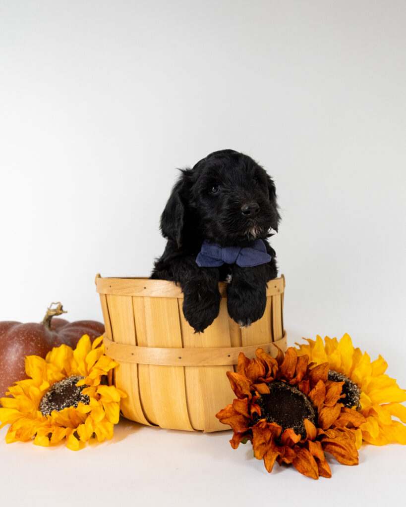 Rudolph is a black multigen Goldendoodle puppy who will be ready for his fur-ever home around December 16th! His soft, fluffy coat is hypoallergenic and non-shedding, ensuring endless snuggles without fear of allergic reactions. With a loyal and affectionate temperament, he is the perfect forever friend!