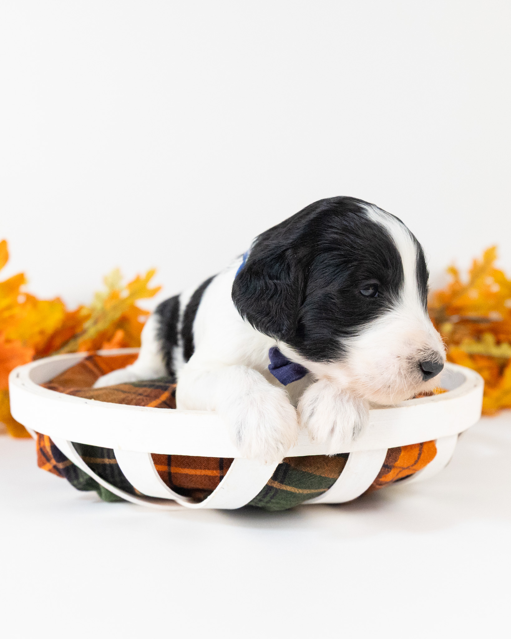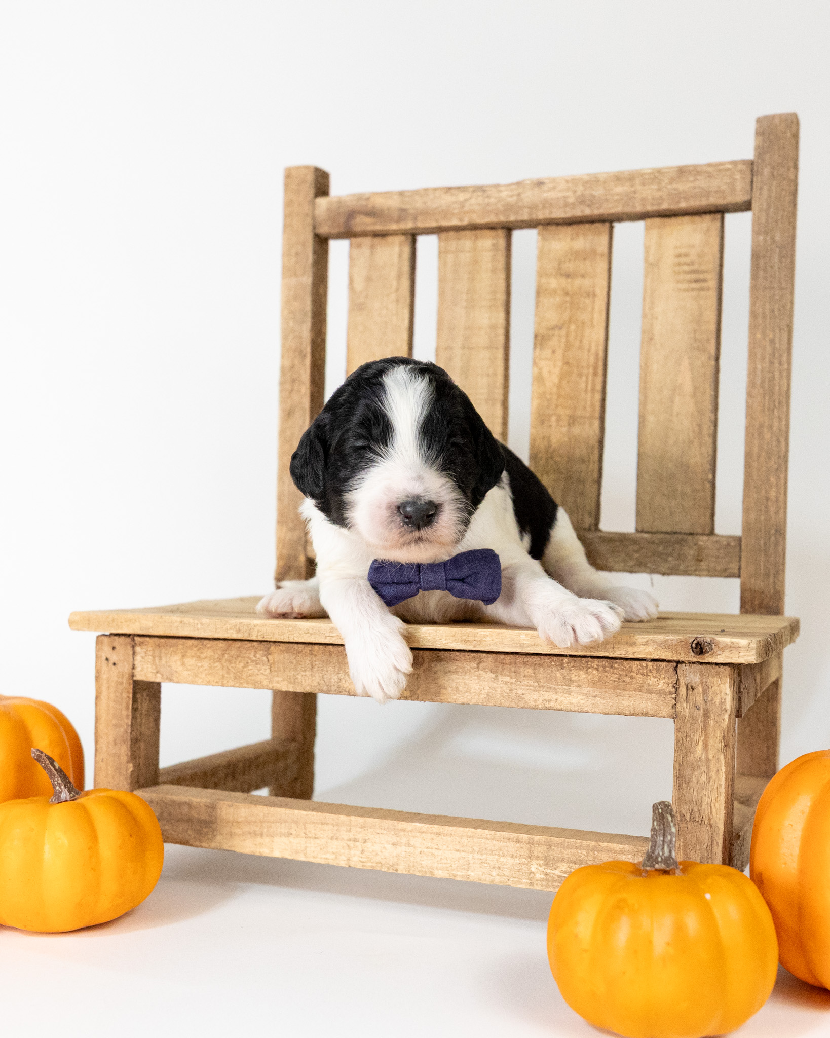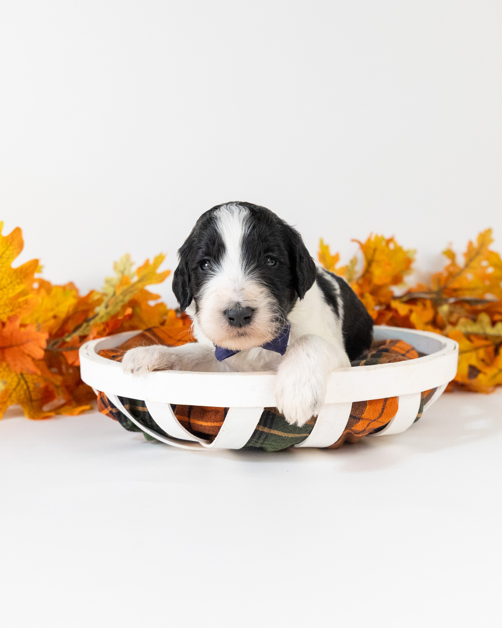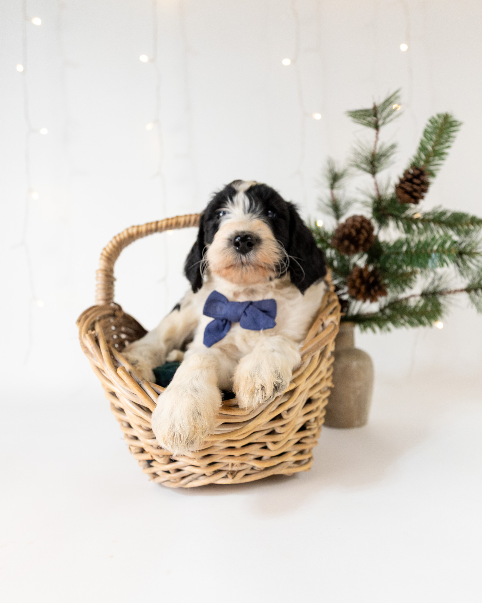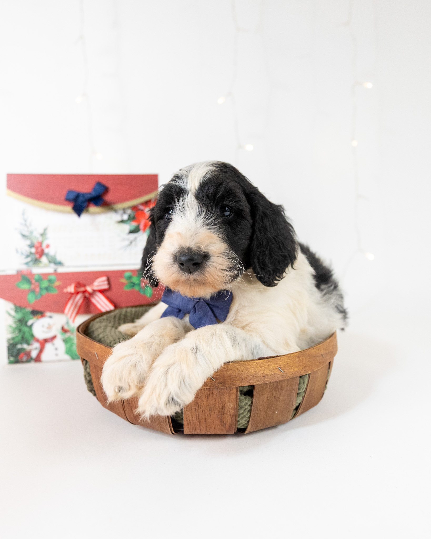 Santa Paws is a black and white parti multigen Goldendoodle puppy who will be ready for his fur-ever home around December 16th! His soft, fluffy coat is hypoallergenic and non-shedding, ensuring endless snuggles without fear of allergic reactions. With a loyal and affectionate temperament, he is the perfect forever friend!