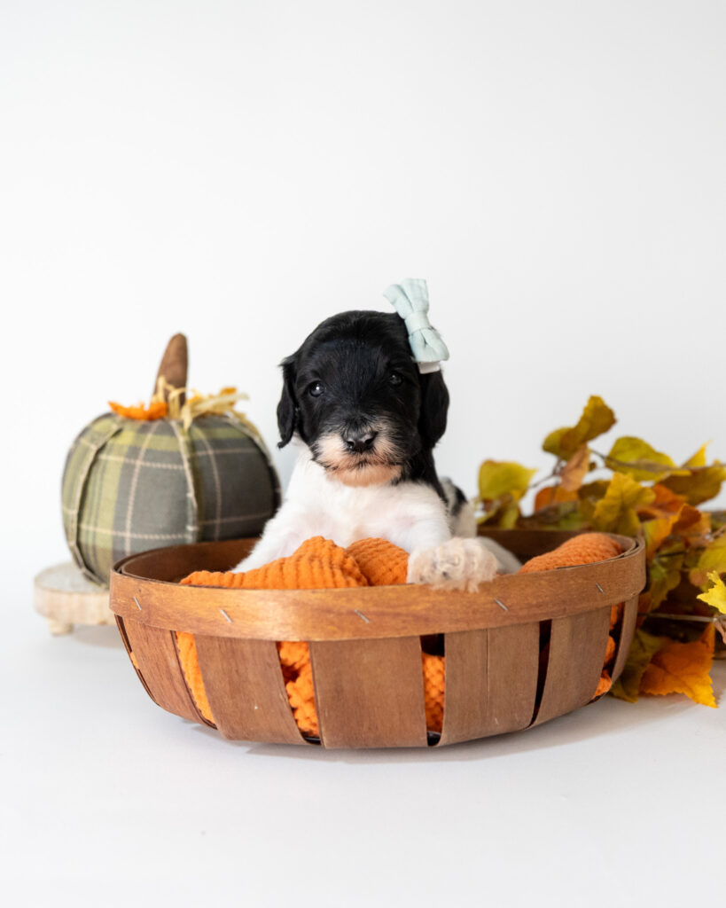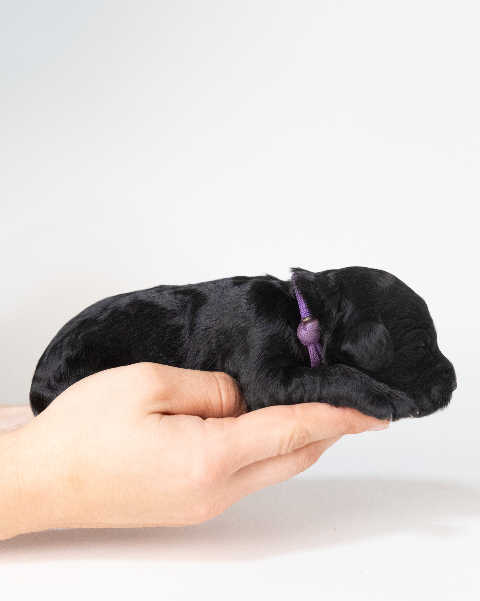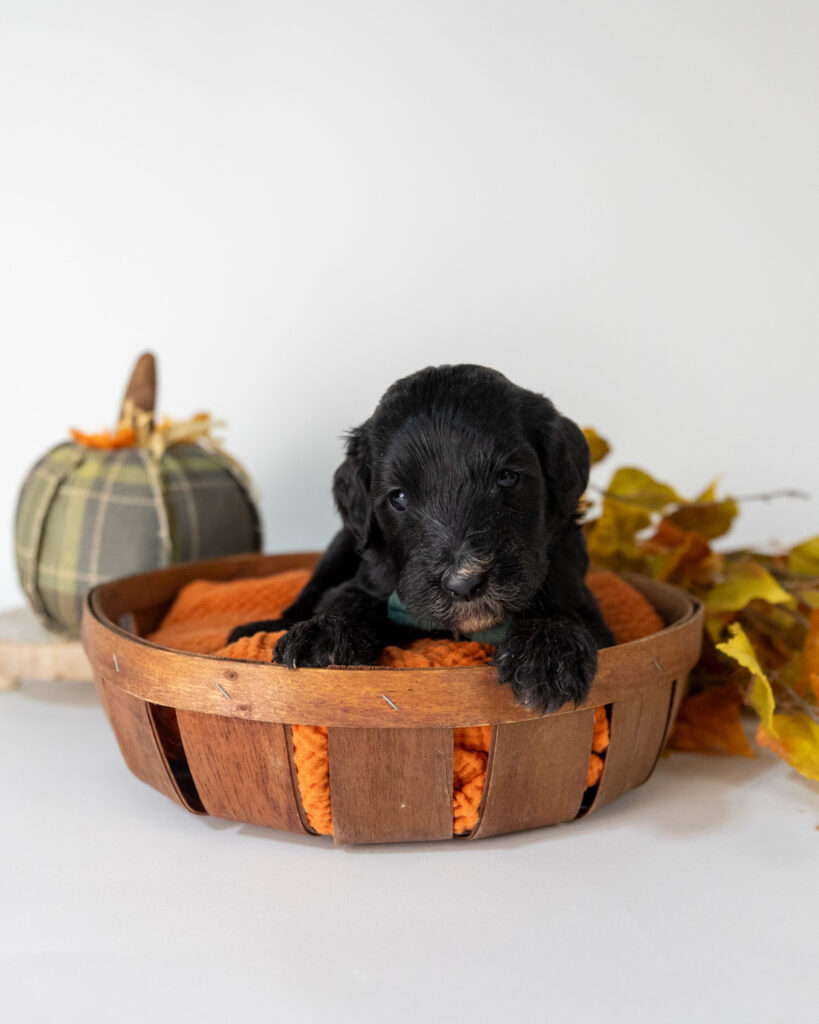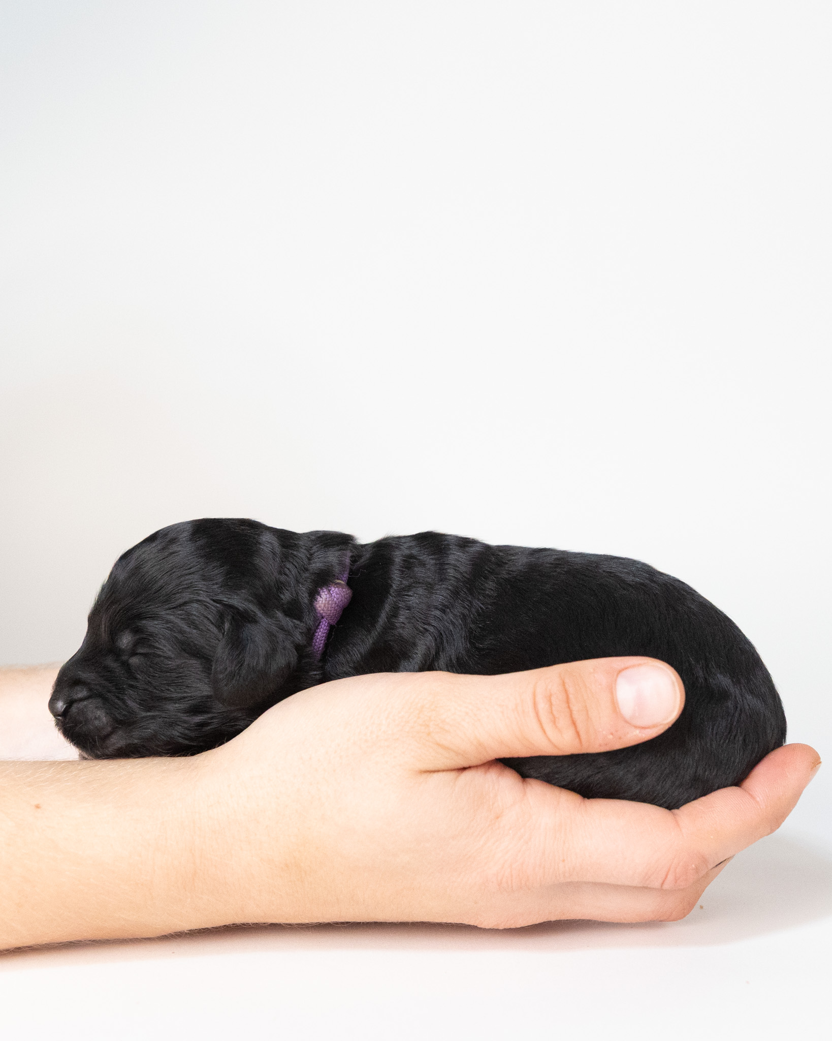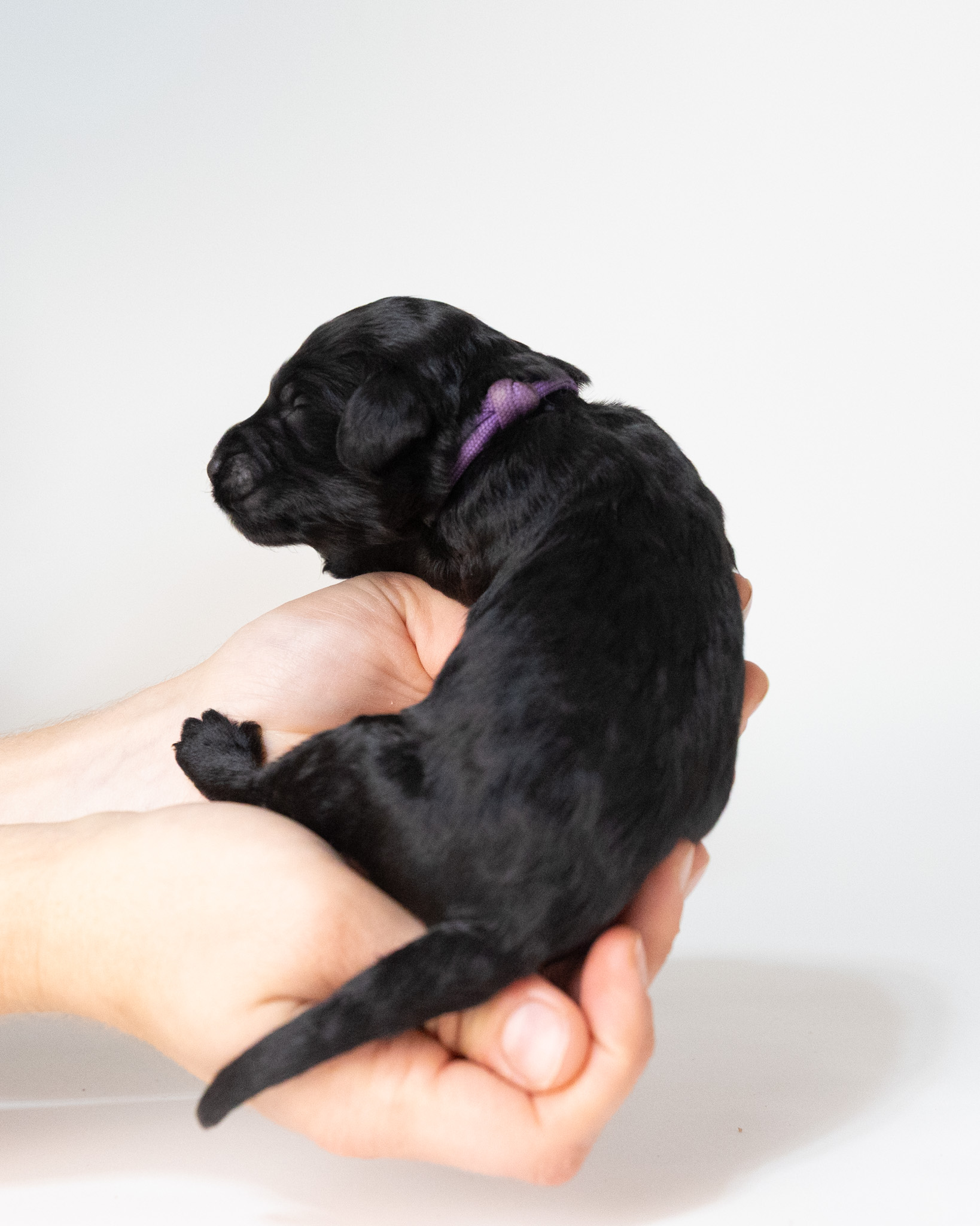 Vixen is a black multigen Goldendoodle puppy who will be ready for her fur-ever home around December 16th! Her soft, fluffy coat is hypoallergenic and non-shedding, ensuring endless snuggles without fear of allergic reactions. With a loyal and affectionate temperament, she is the perfect forever friend!