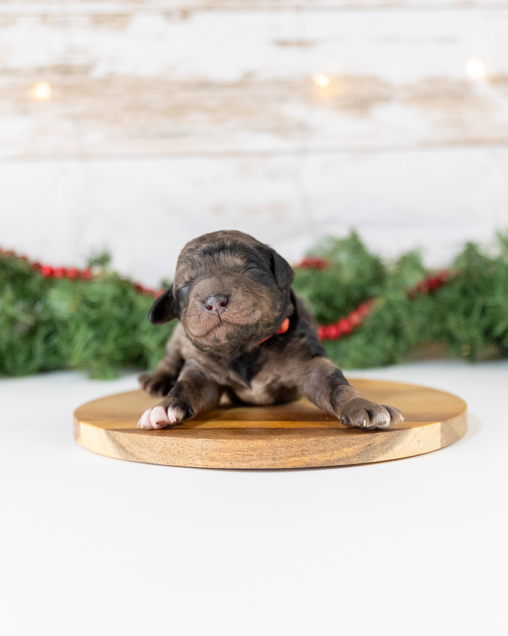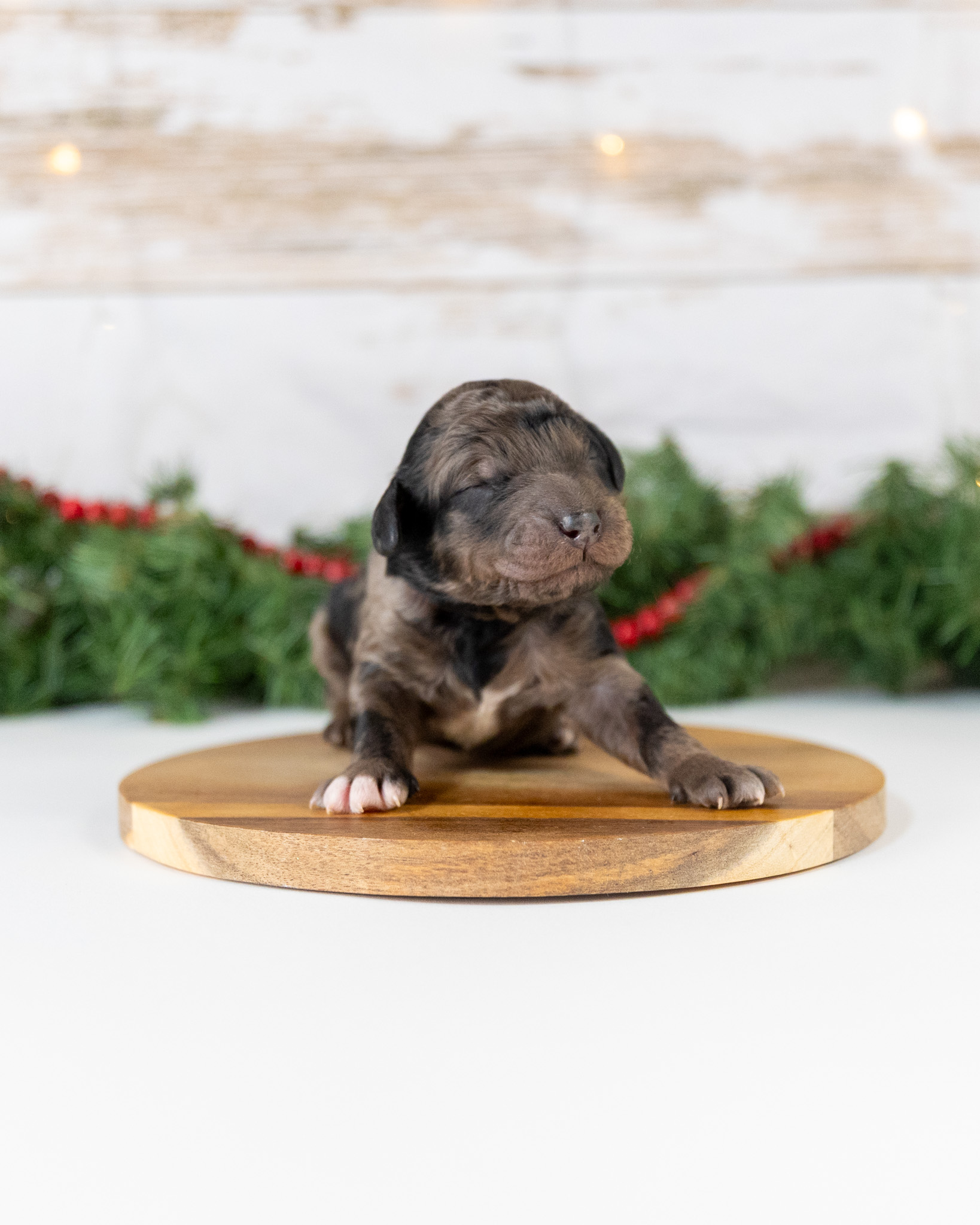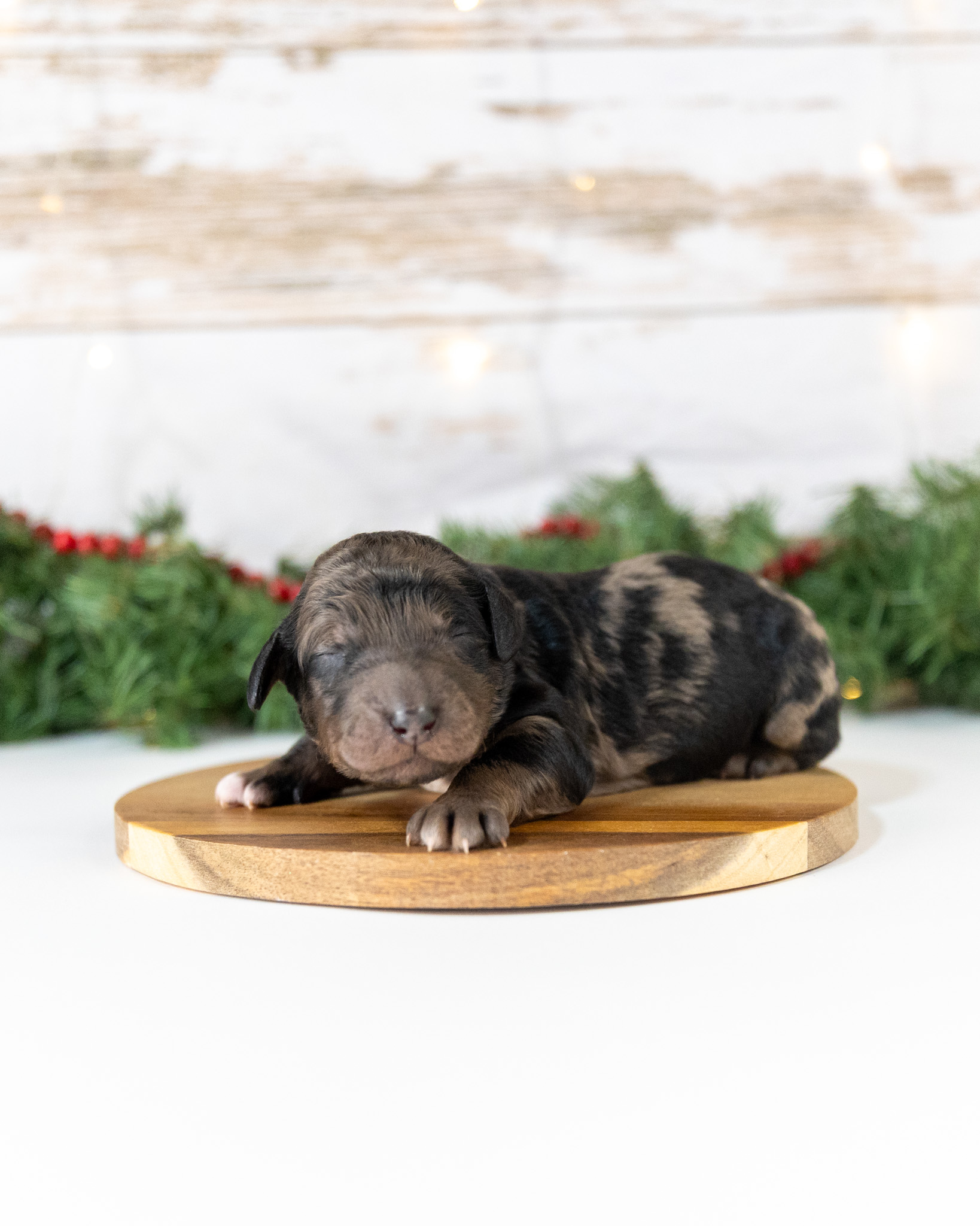Spruce is a blue merle male standard Goldendoodle puppy who will be ready for his forever home around January 7th.