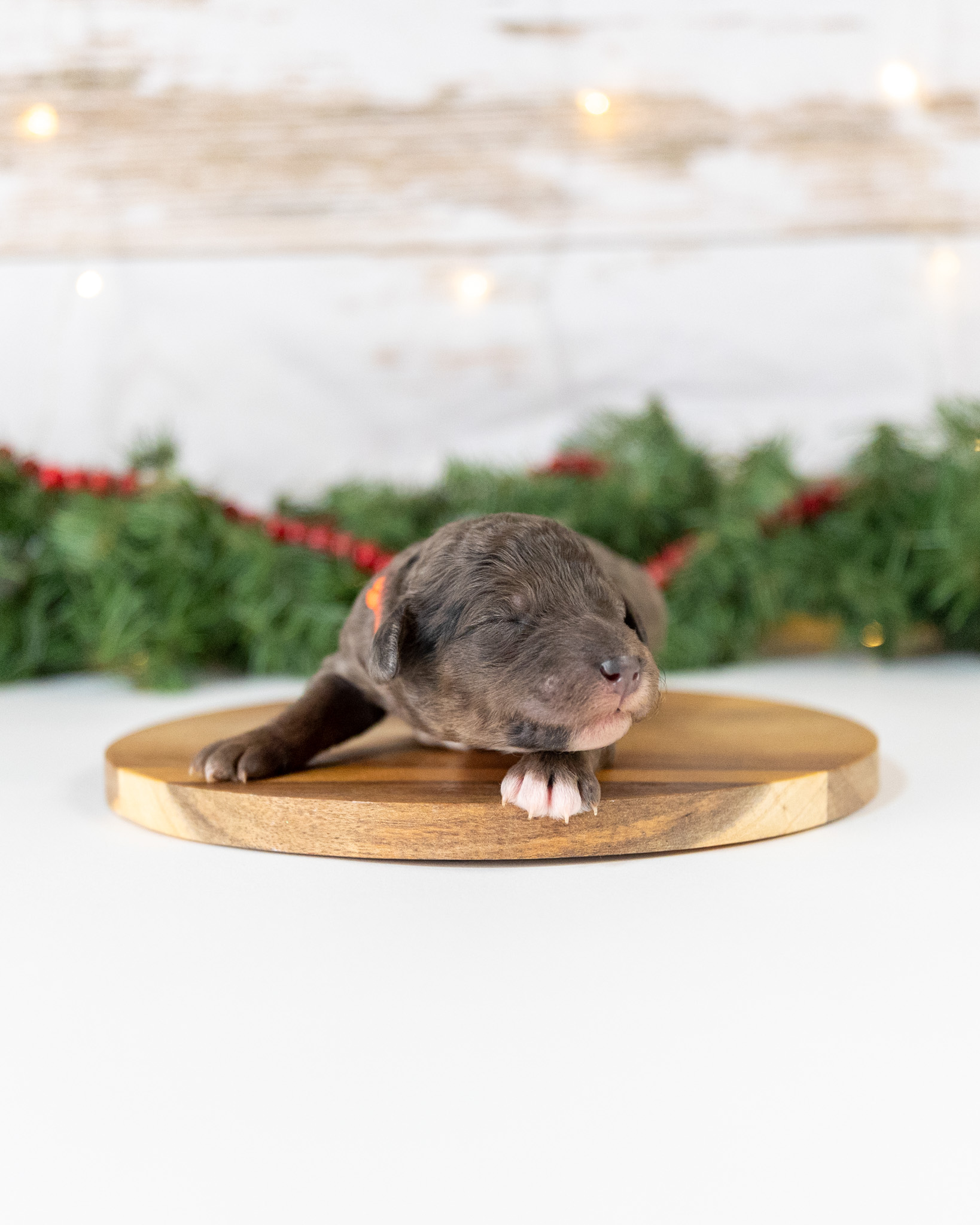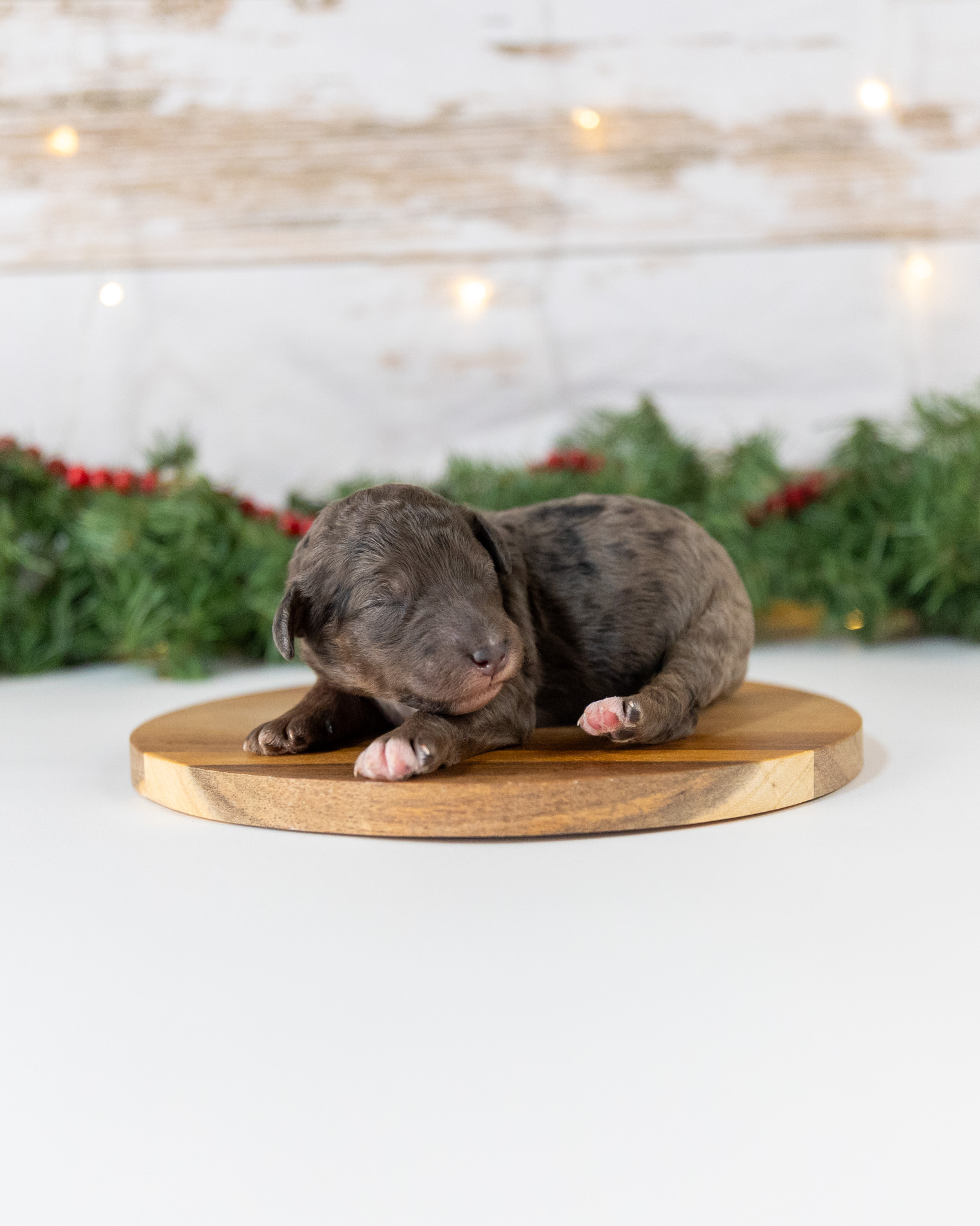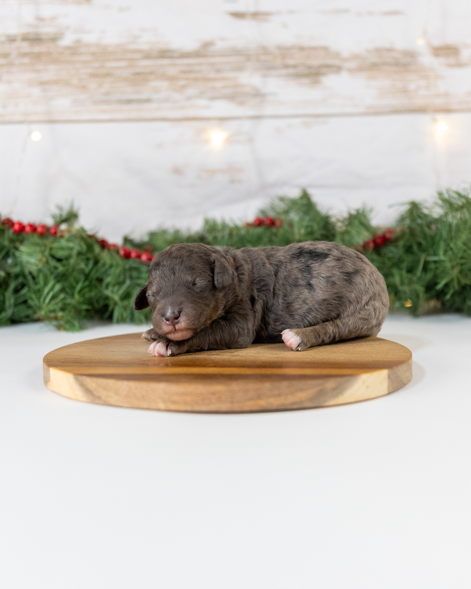 Tundra is a standard multigen Goldendoodle puppy who will be ready for his forever home February 4th! His soft, fluffy coat is hypoallergenic and non-shedding, ensuring endless snuggles without fear of allergic reactions.