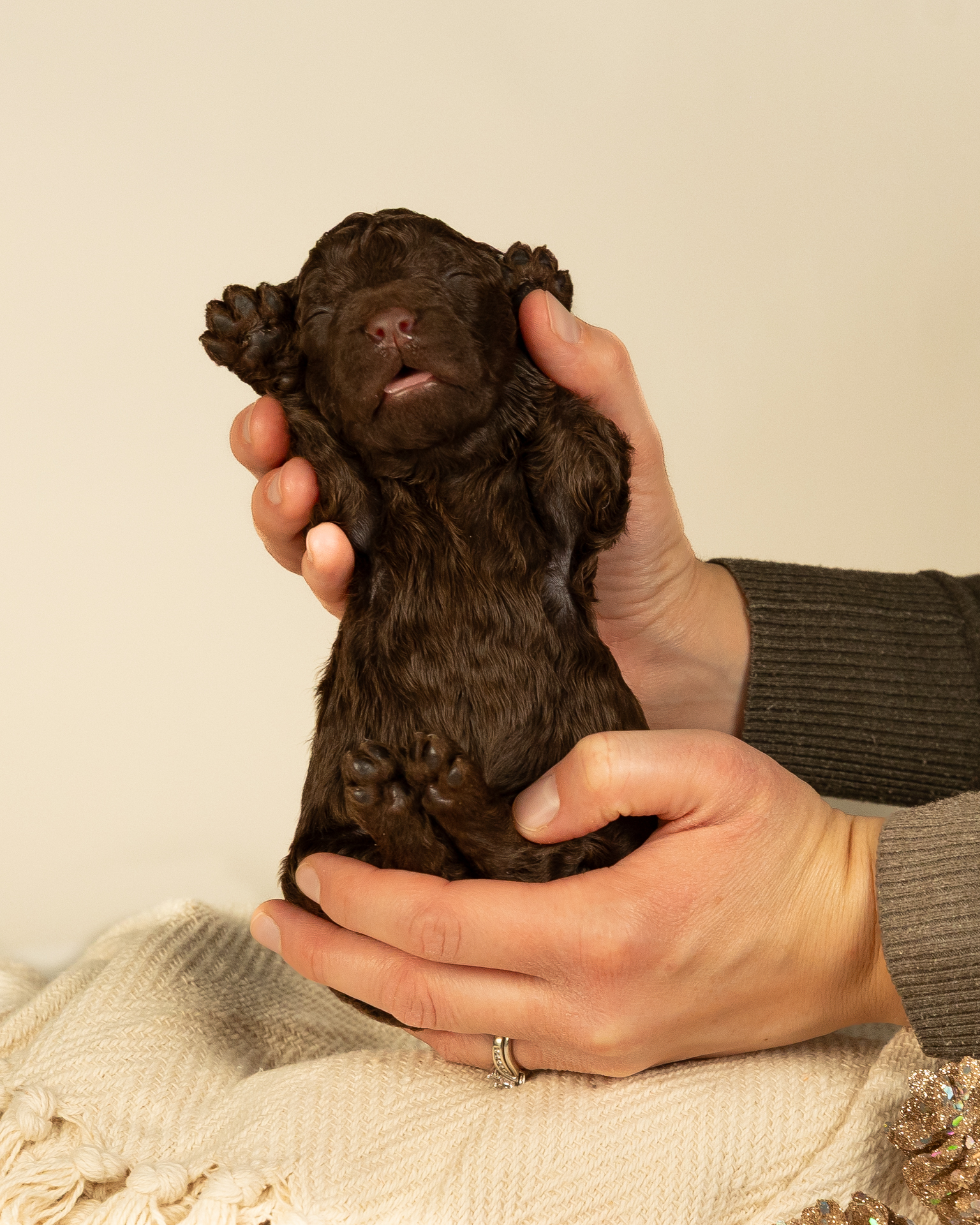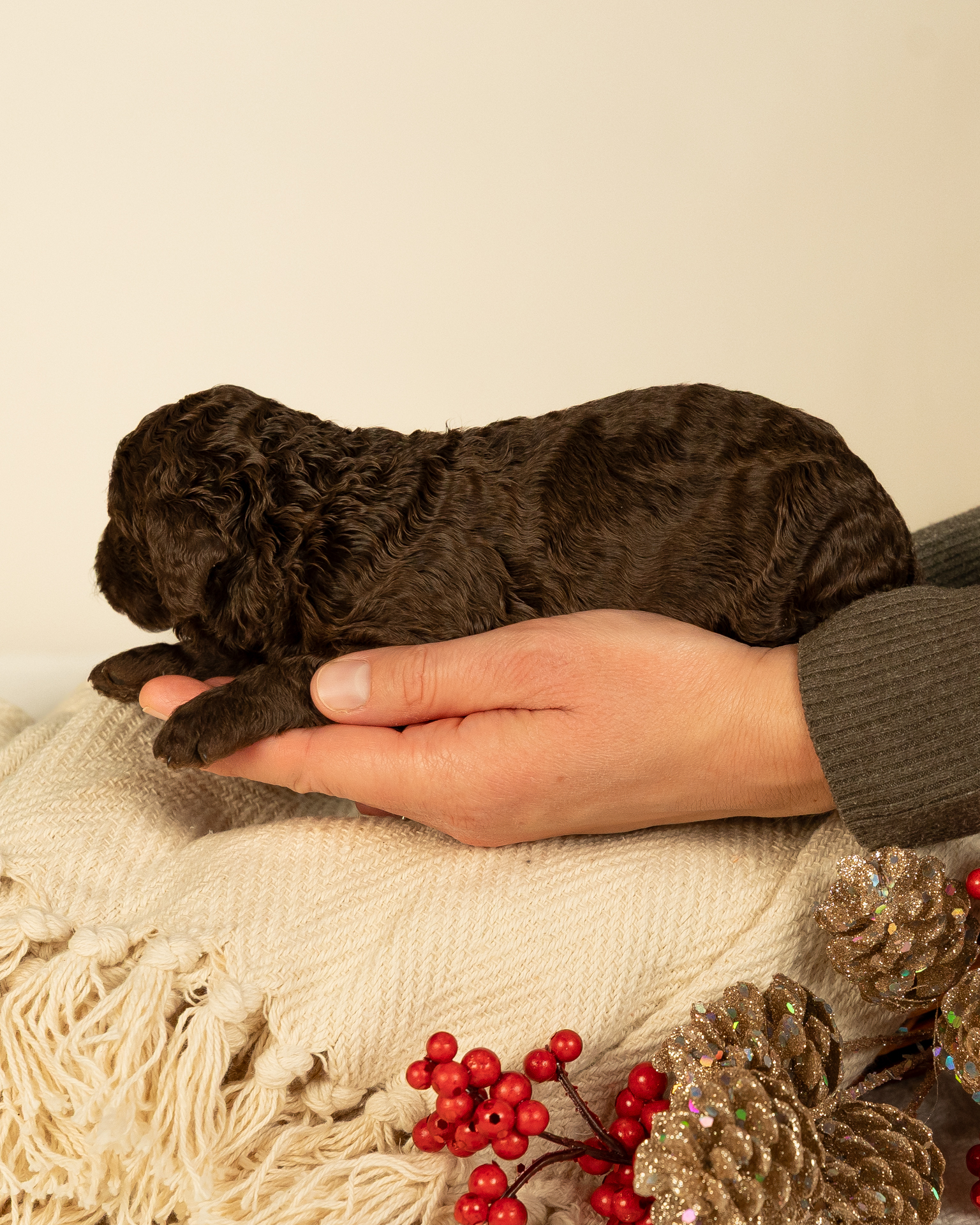 Celeste is a multigen standard Goldendoodle puppy who will be ready for her fur-ever home around December 23rd! Her soft, fluffy coat is hypoallergenic and non-shedding, ensuring endless snuggles without fear of allergic reactions. With a loyal and affectionate temperament, she is the perfect forever friend!