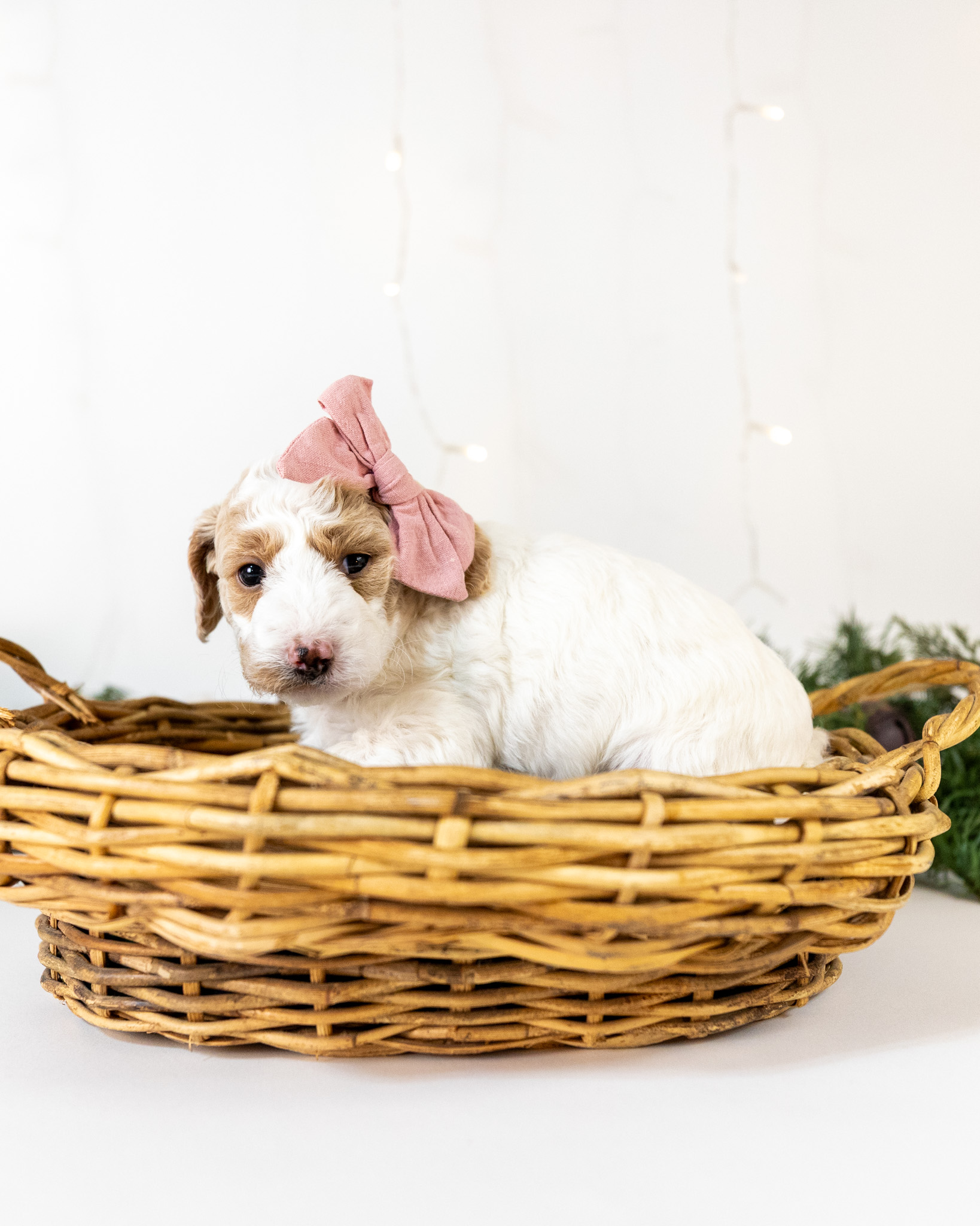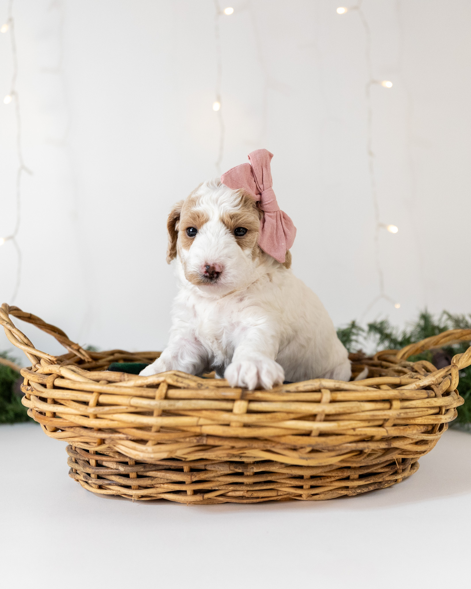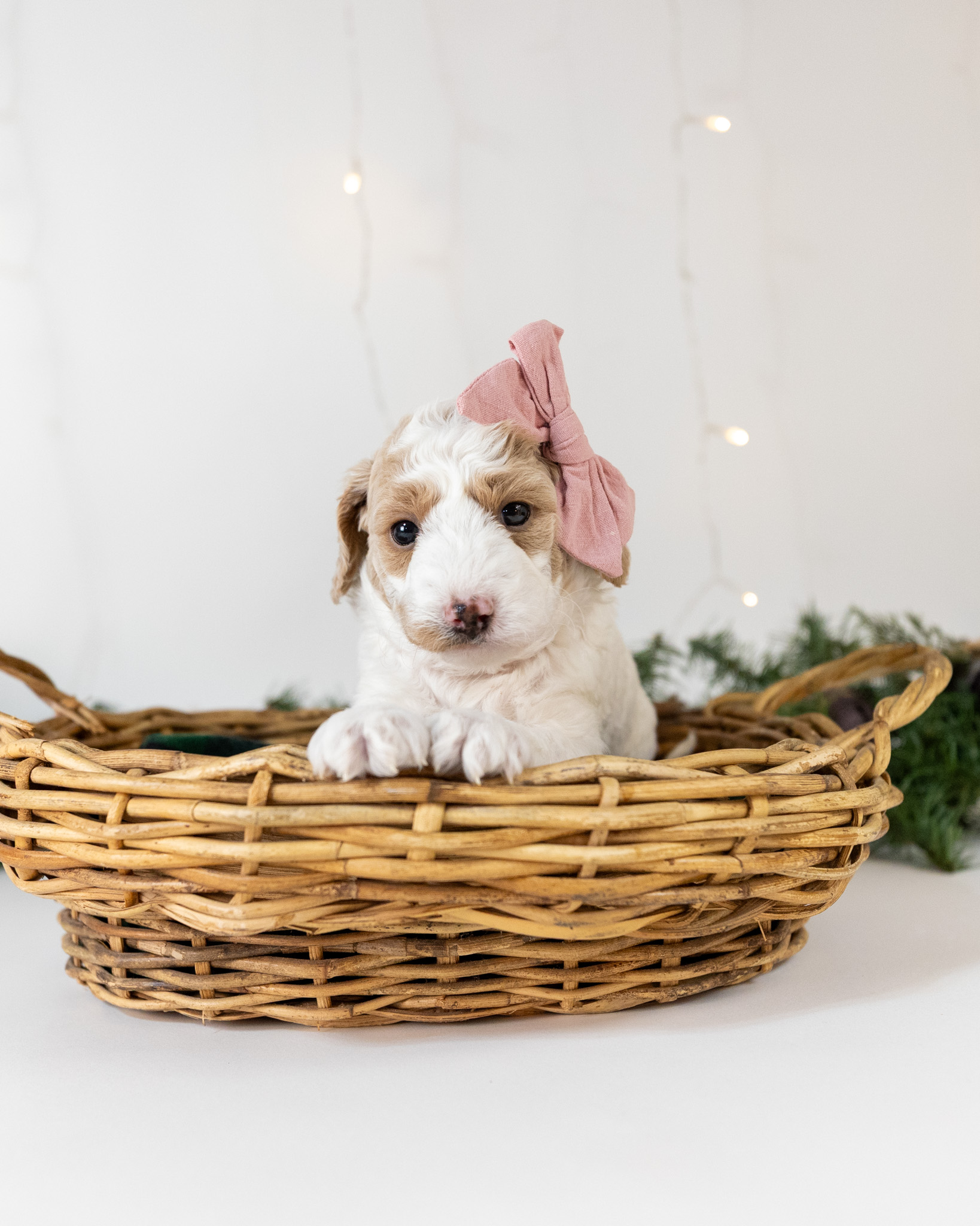 Anna is a multigen mini Goldendoodle puppy who will be ready for her fur-ever home December 24th! Her soft, fluffy coat is hypoallergenic and non-shedding, ensuring endless snuggles without fear of allergic reactions. With a loyal and affectionate temperament, she is the perfect forever friend!