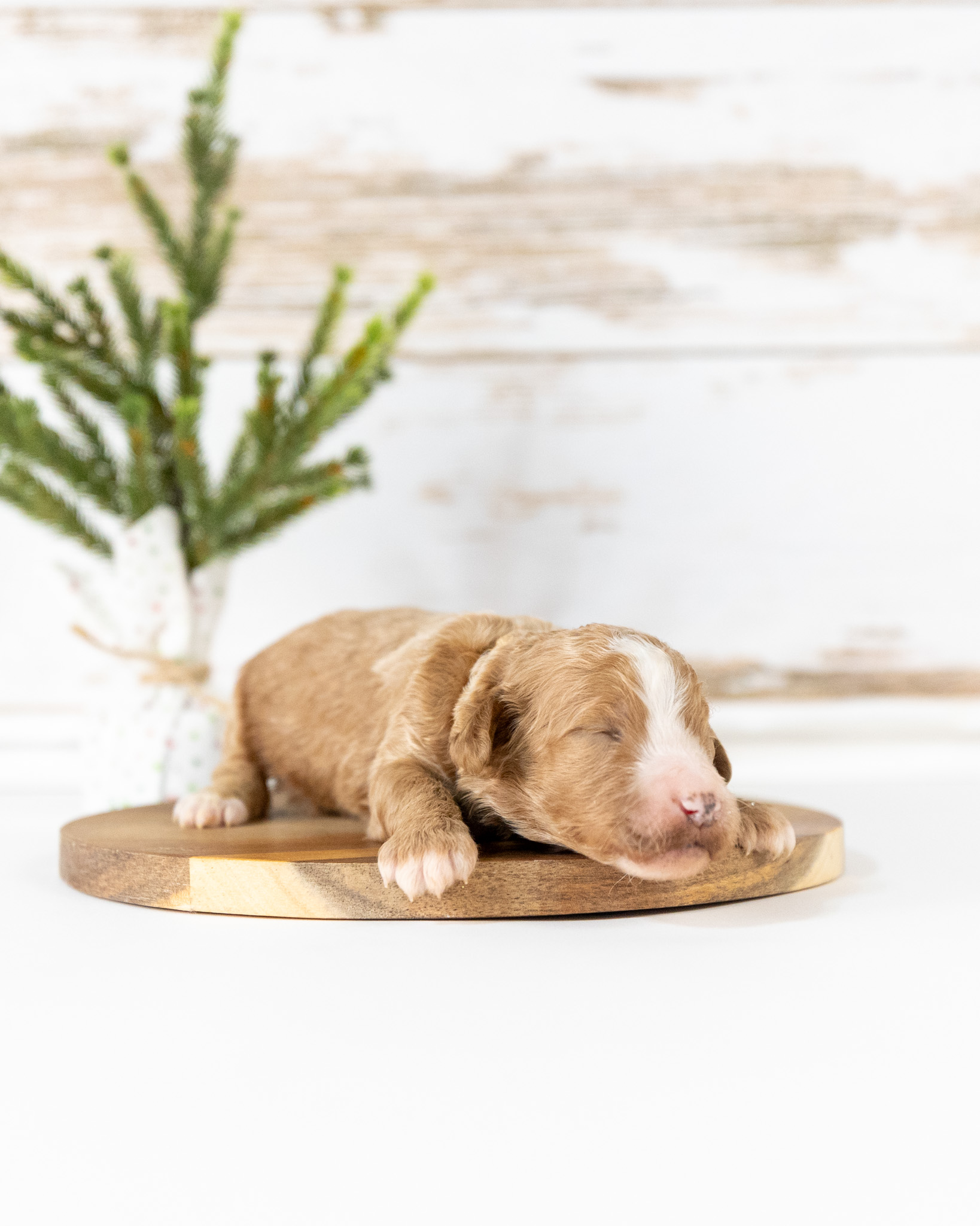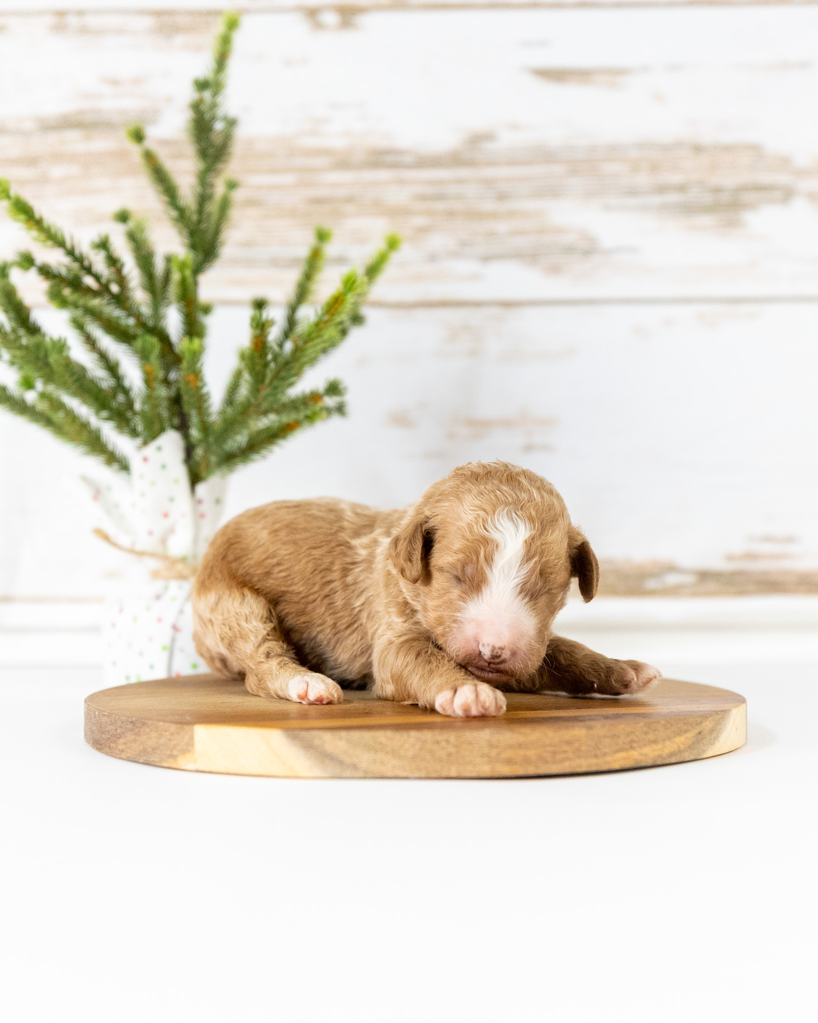 Ivy is a standard multigen Goldendoodle puppy who will be ready for her forever home February 12th! Her soft, fluffy coat is hypoallergenic and non-shedding, ensuring endless snuggles without fear of allergic reactions.