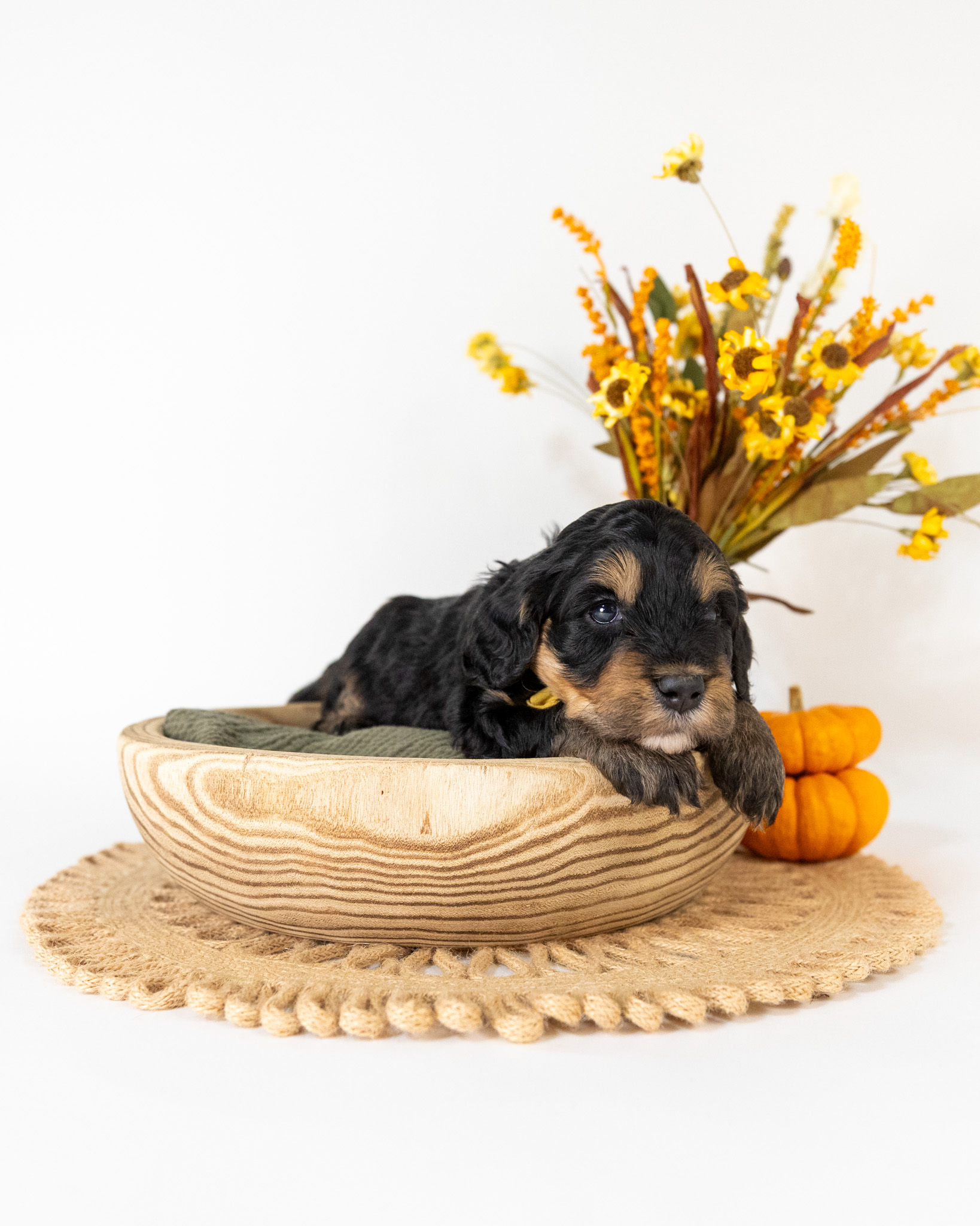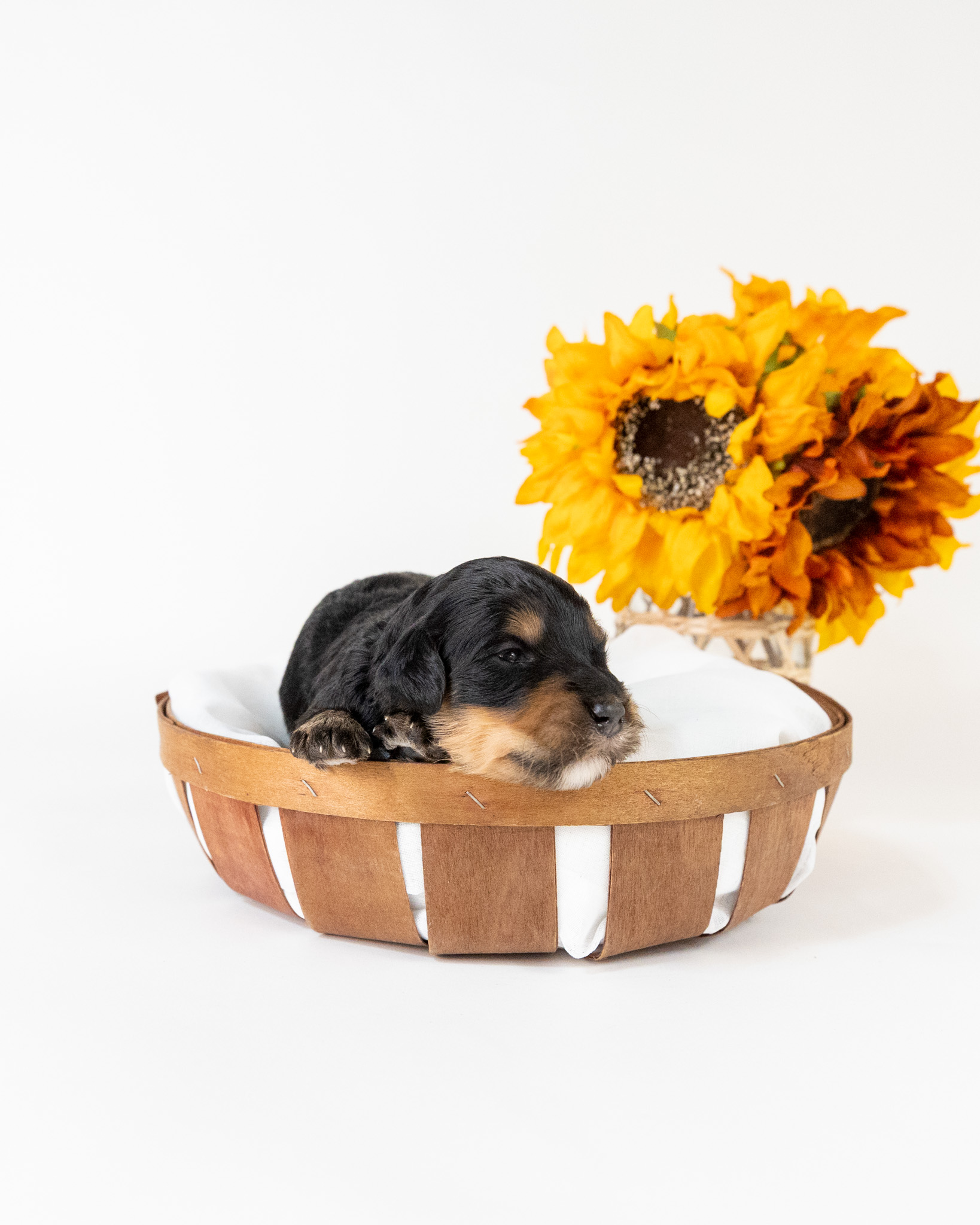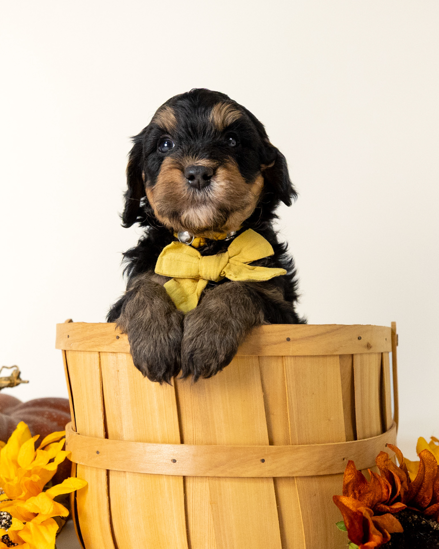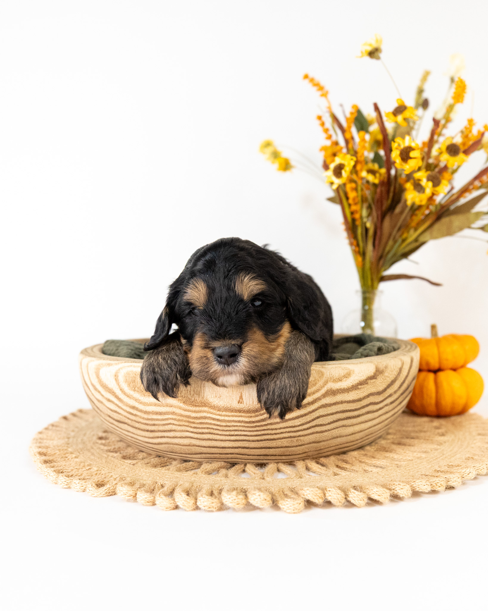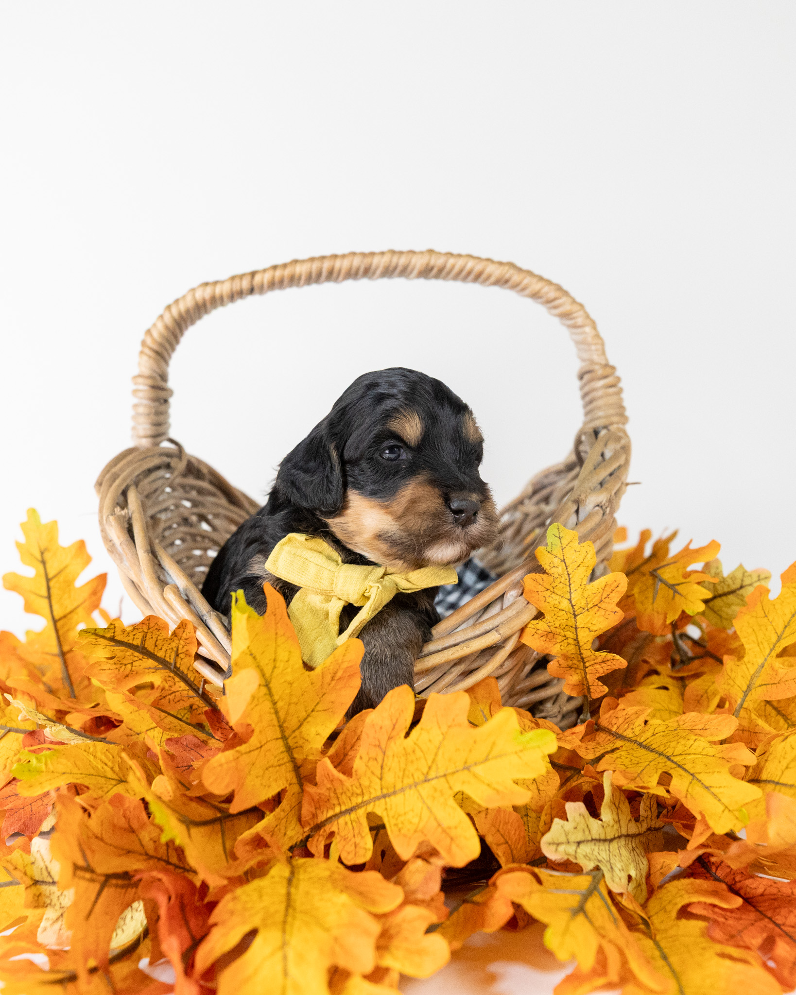 Garland is a multigen Goldendoodle puppy who will be ready for his fur-ever home around December 8th! His soft, fluffy coat is hypoallergenic and non-shedding, ensuring endless snuggles without fear of allergic reactions. With a loyal and affectionate temperament, he is the perfect forever friend!