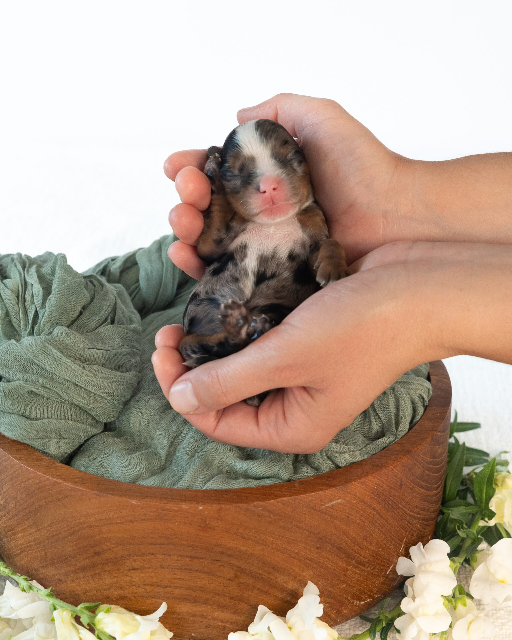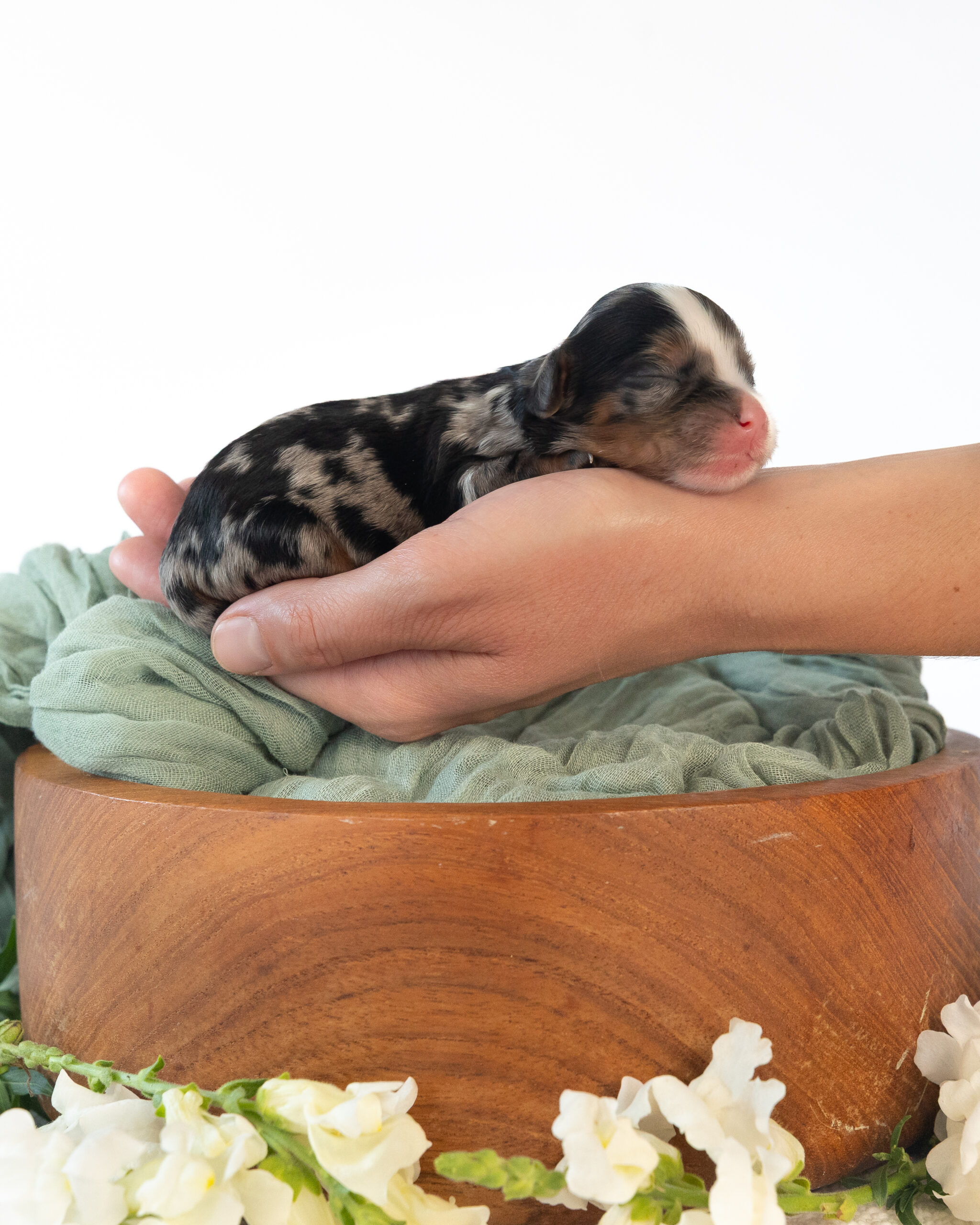 Maverick is a sweet multigen mini Cockapoo puppy who will be ready for his fur-ever home around October 13th! His soft, fluffy coat is hypoallergenic and non-shedding, ensuring endless snuggles without fear of allergic reactions. With a loyal and affectionate temperament, he is the perfect forever friend!