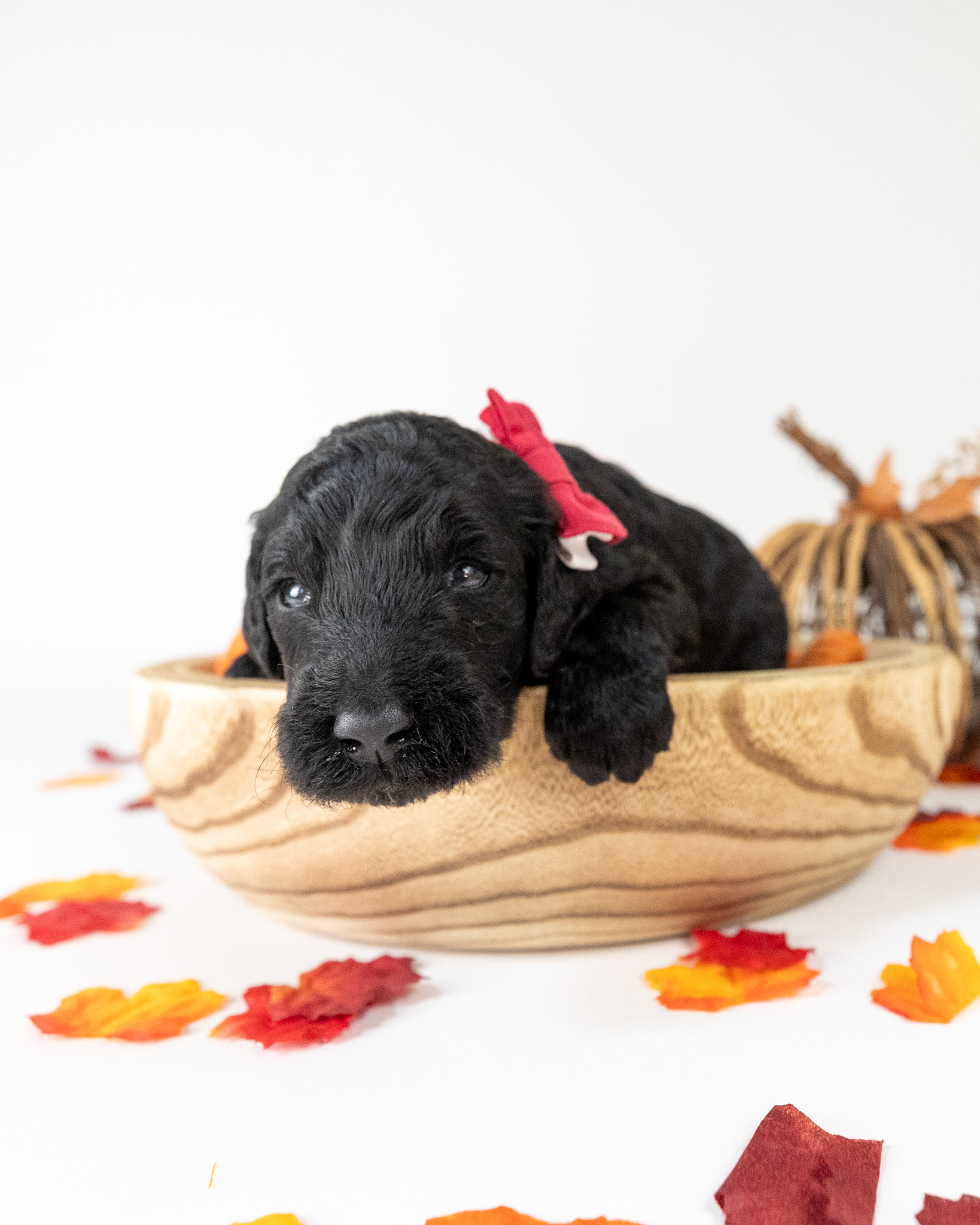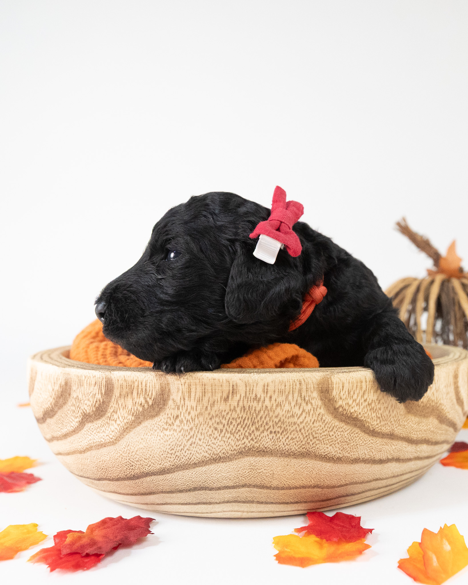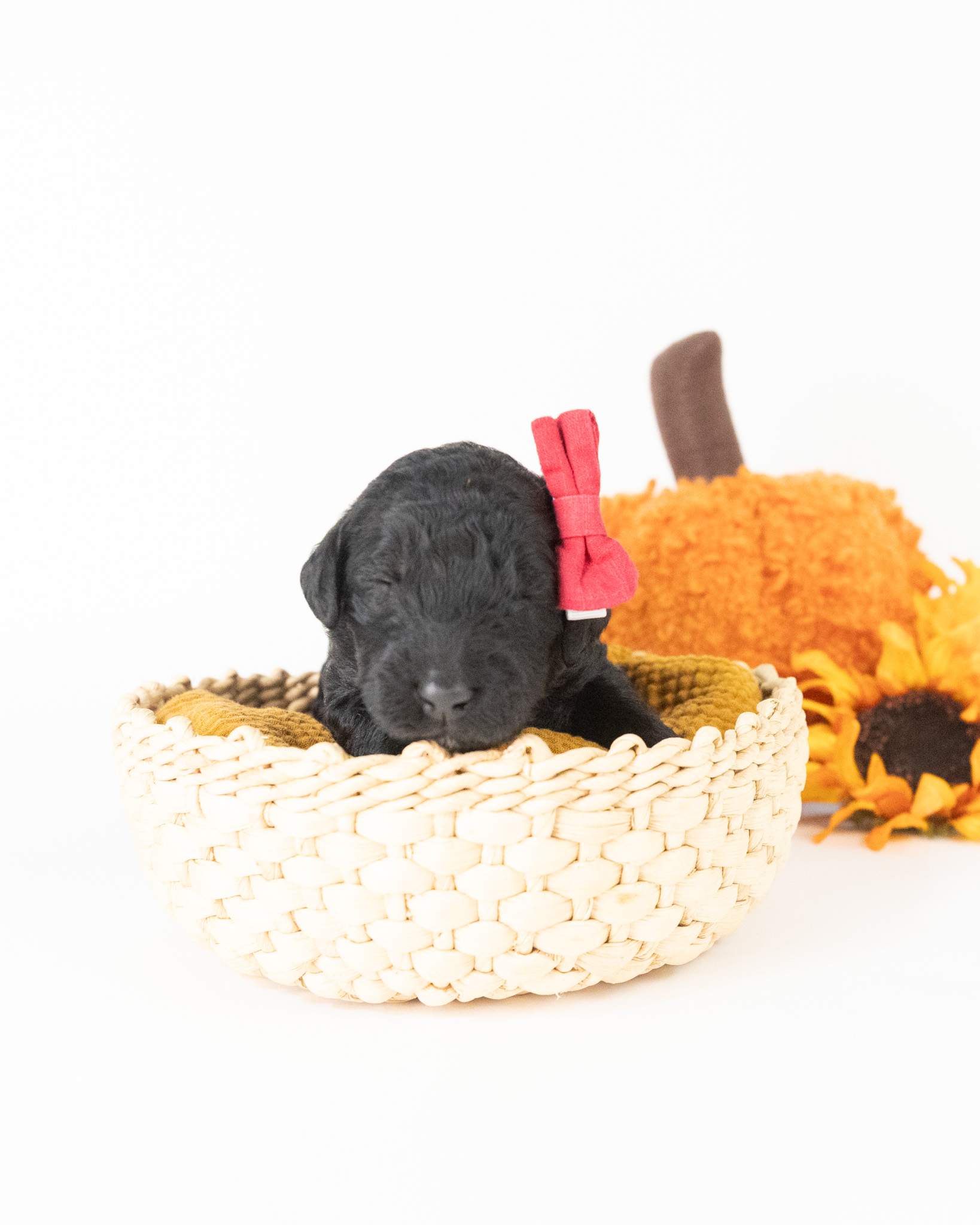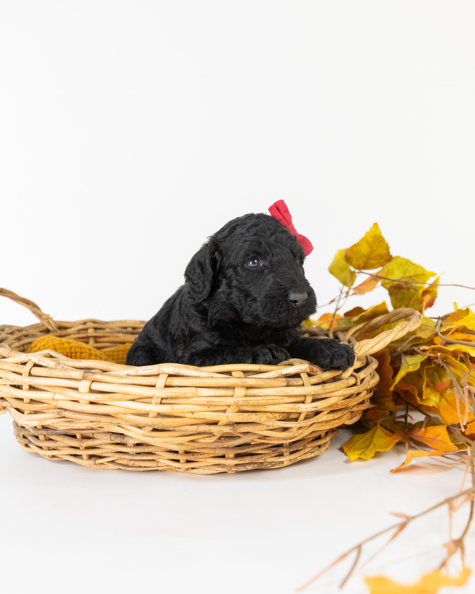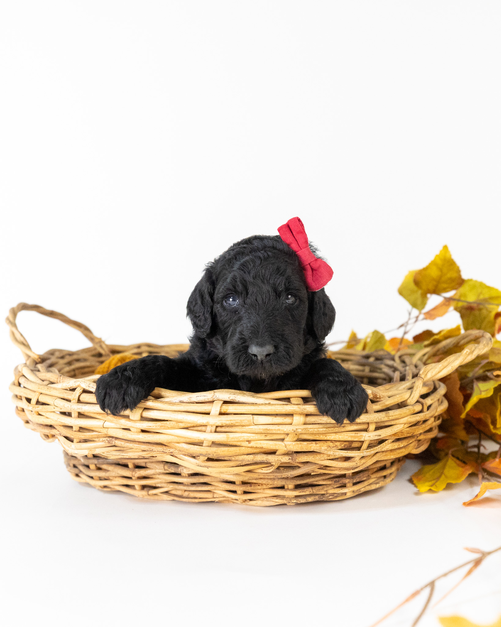 Ribbon is a multigen Goldendoodle puppy who will be ready for her fur-ever home around December 11th! Her soft, fluffy coat is hypoallergenic and non-shedding, ensuring endless snuggles without fear of allergic reactions. With a loyal and affectionate temperament, she is the perfect forever friend!