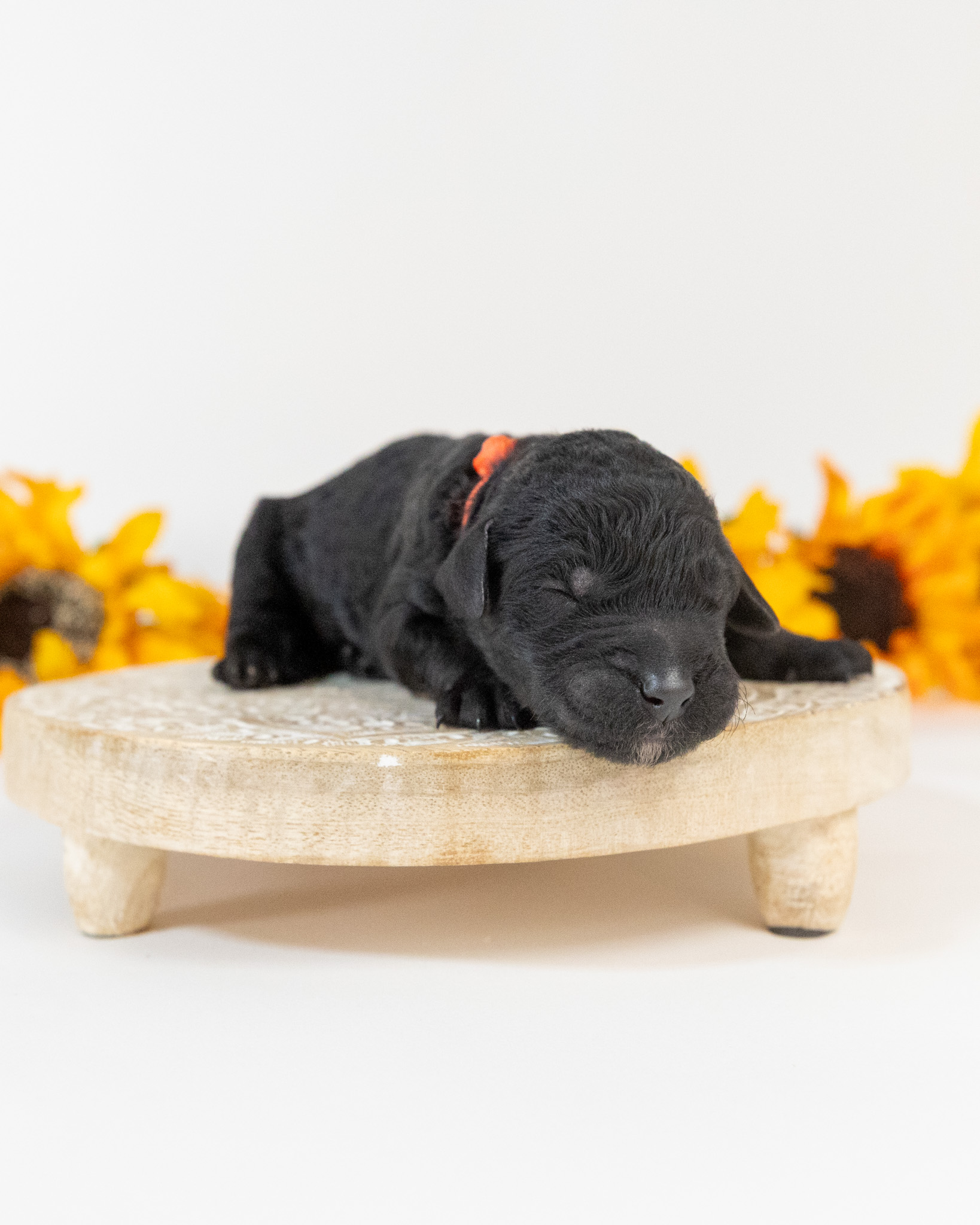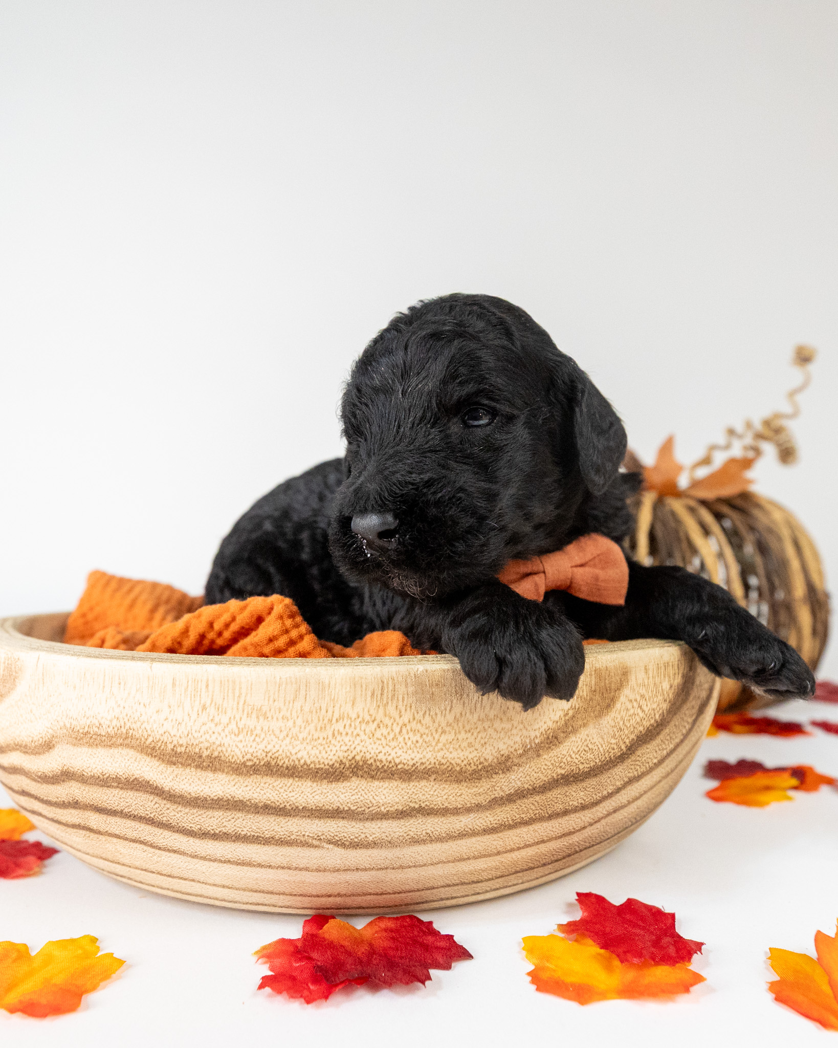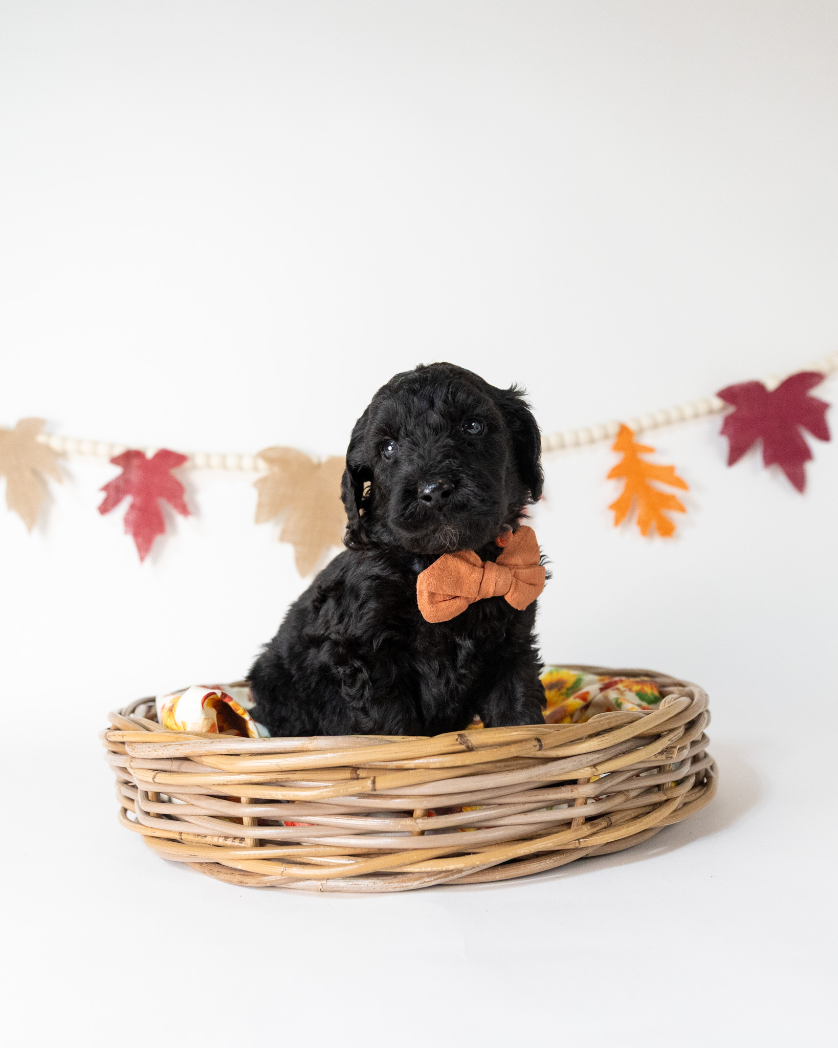 Turkey is a multigen Goldendoodle puppy who will be ready for his fur-ever home around December 11th! His soft, fluffy coat is hypoallergenic and non-shedding, ensuring endless snuggles without fear of allergic reactions. With a loyal and affectionate temperament, he is the perfect forever friend!