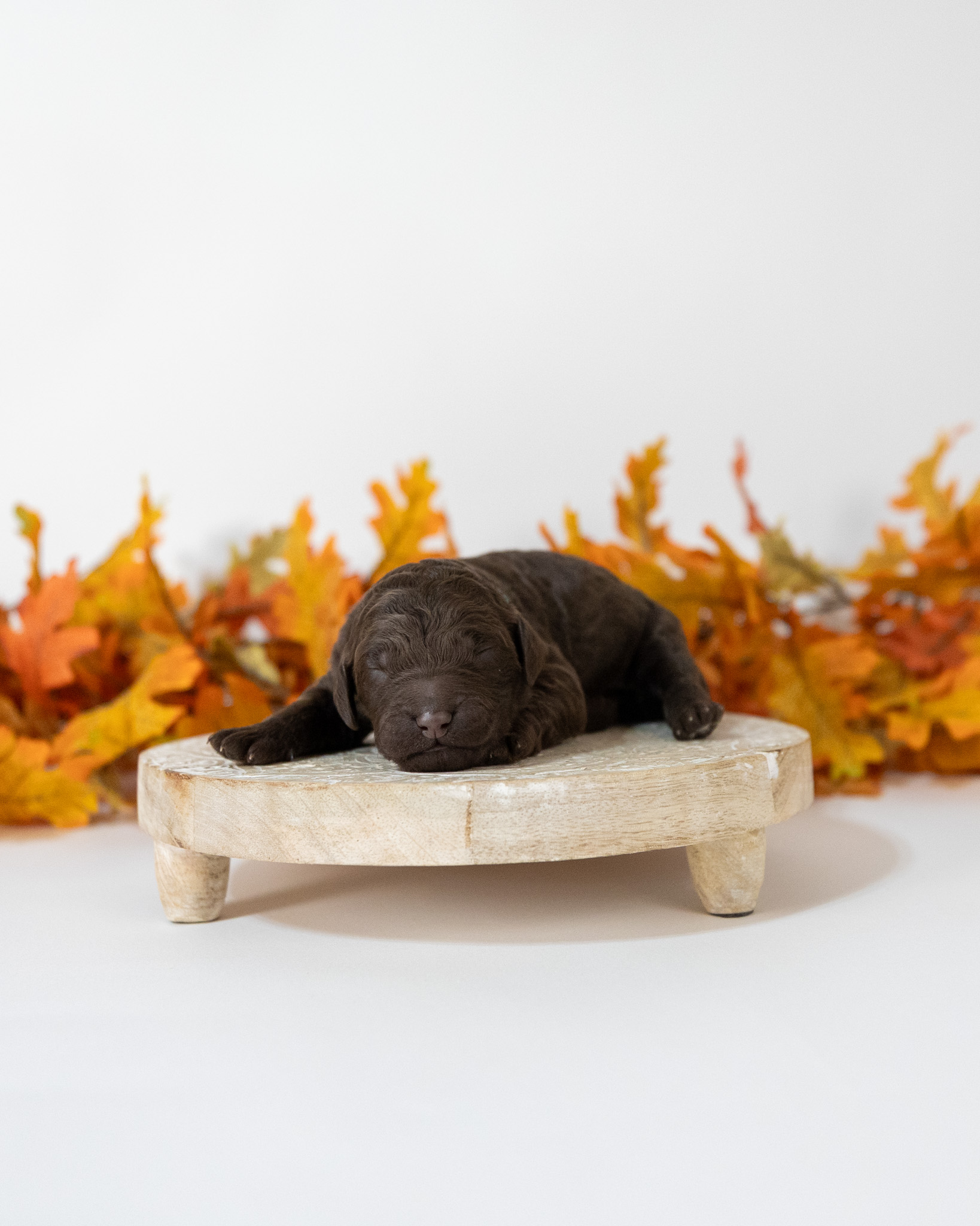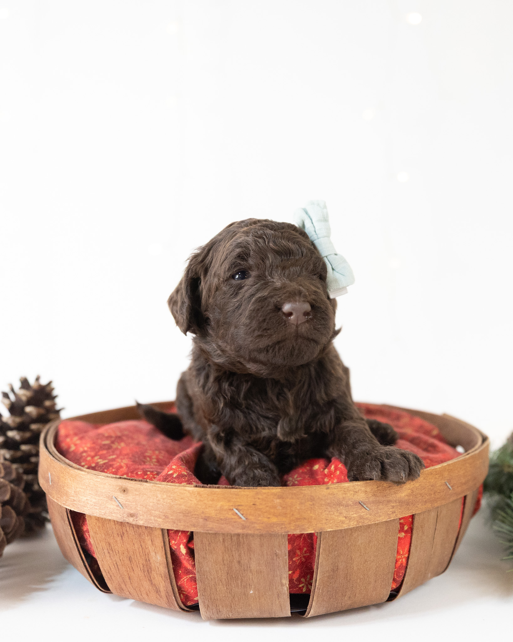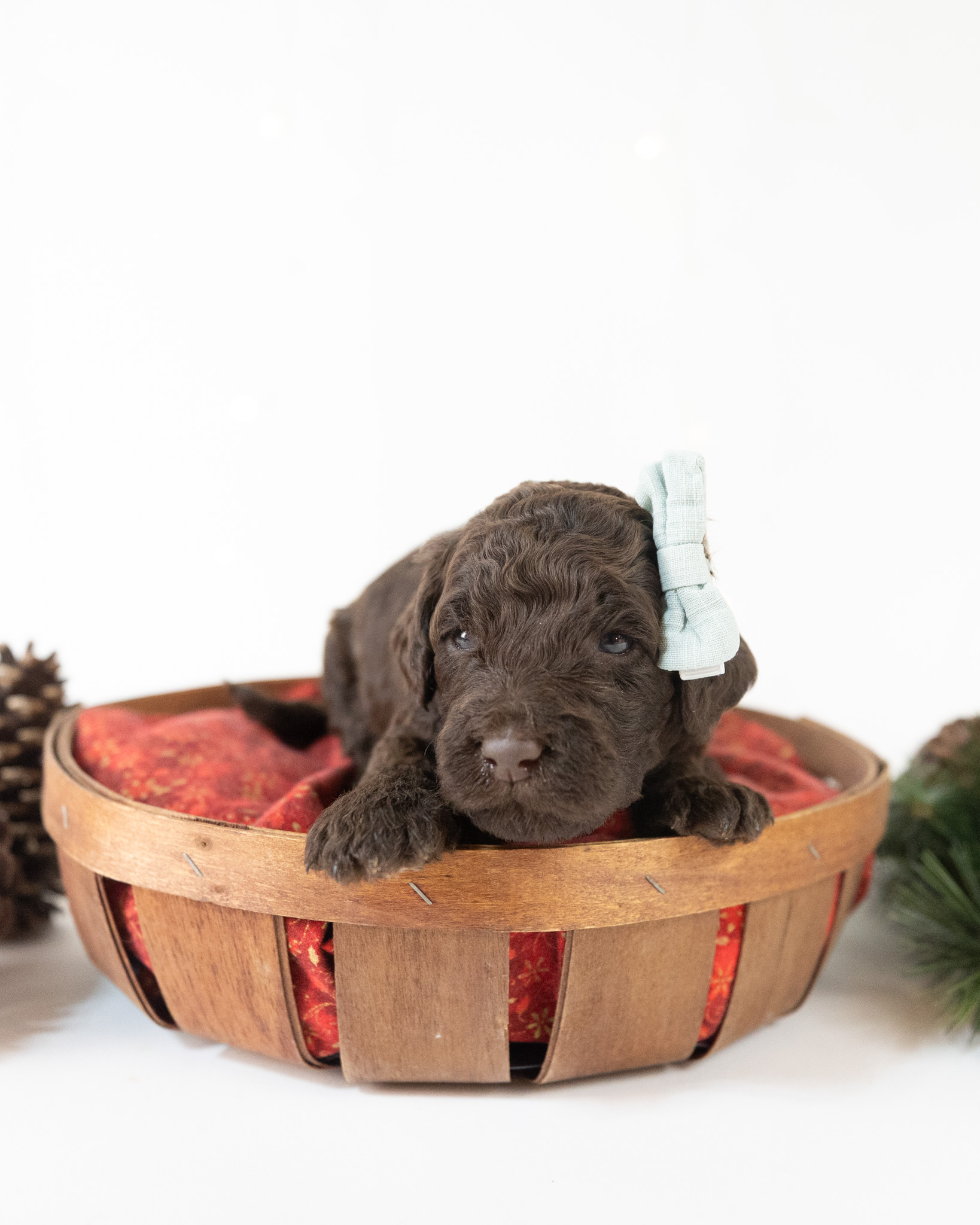 Aurora is a standard multigen Goldendoodle puppy who will be ready for her forever home January 7th! Her soft, fluffy coat is hypoallergenic and non-shedding, ensuring endless snuggles without fear of allergic reactions.