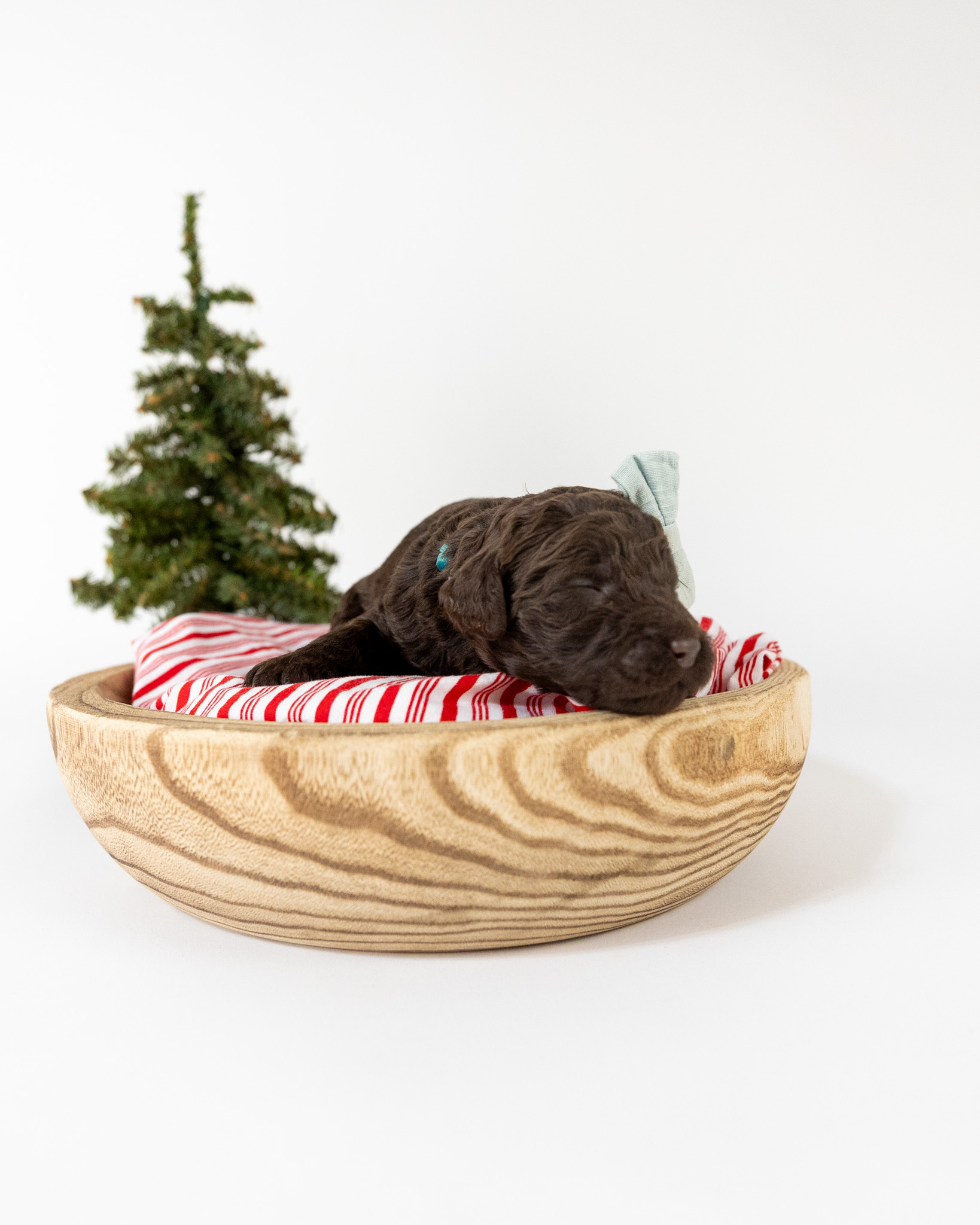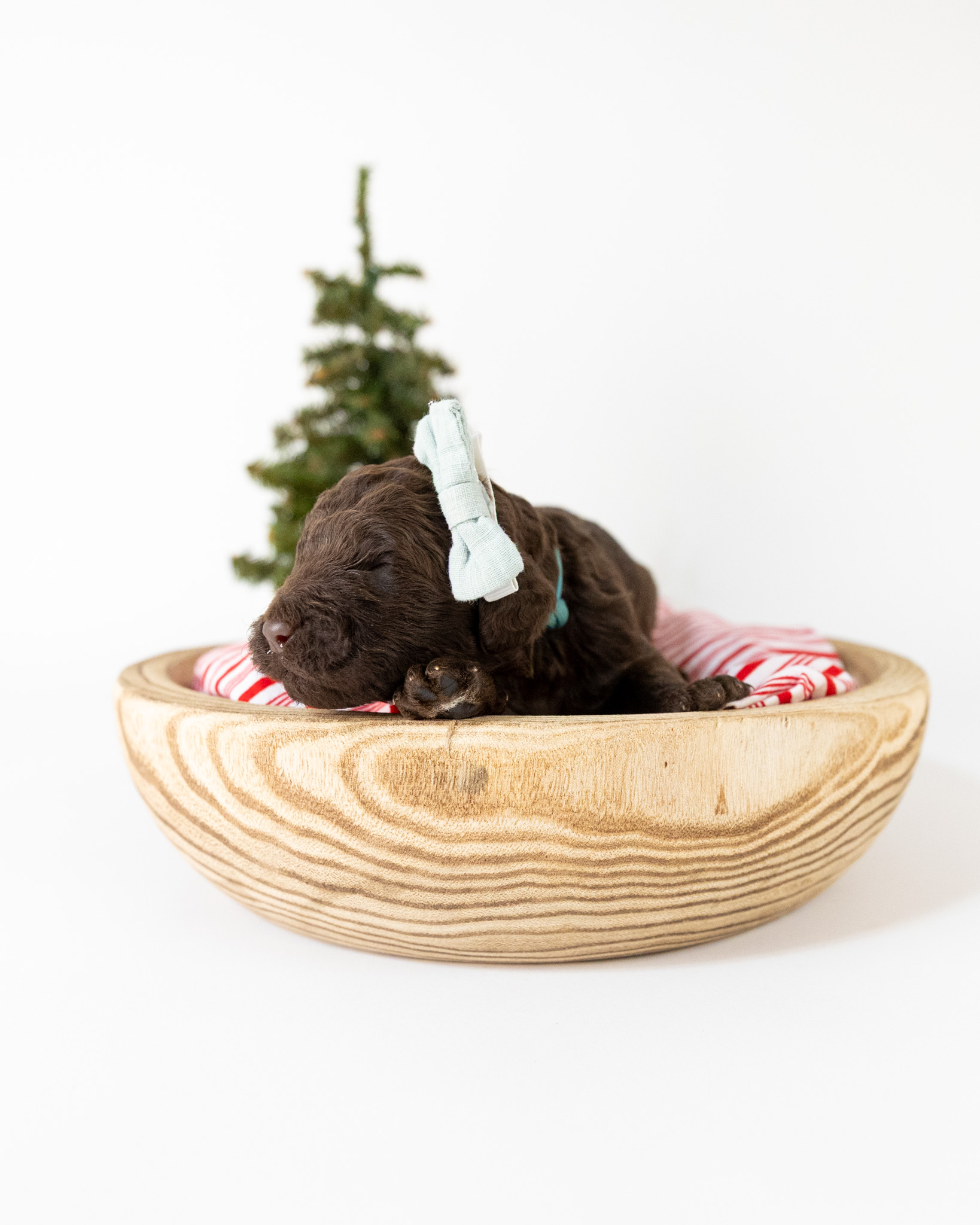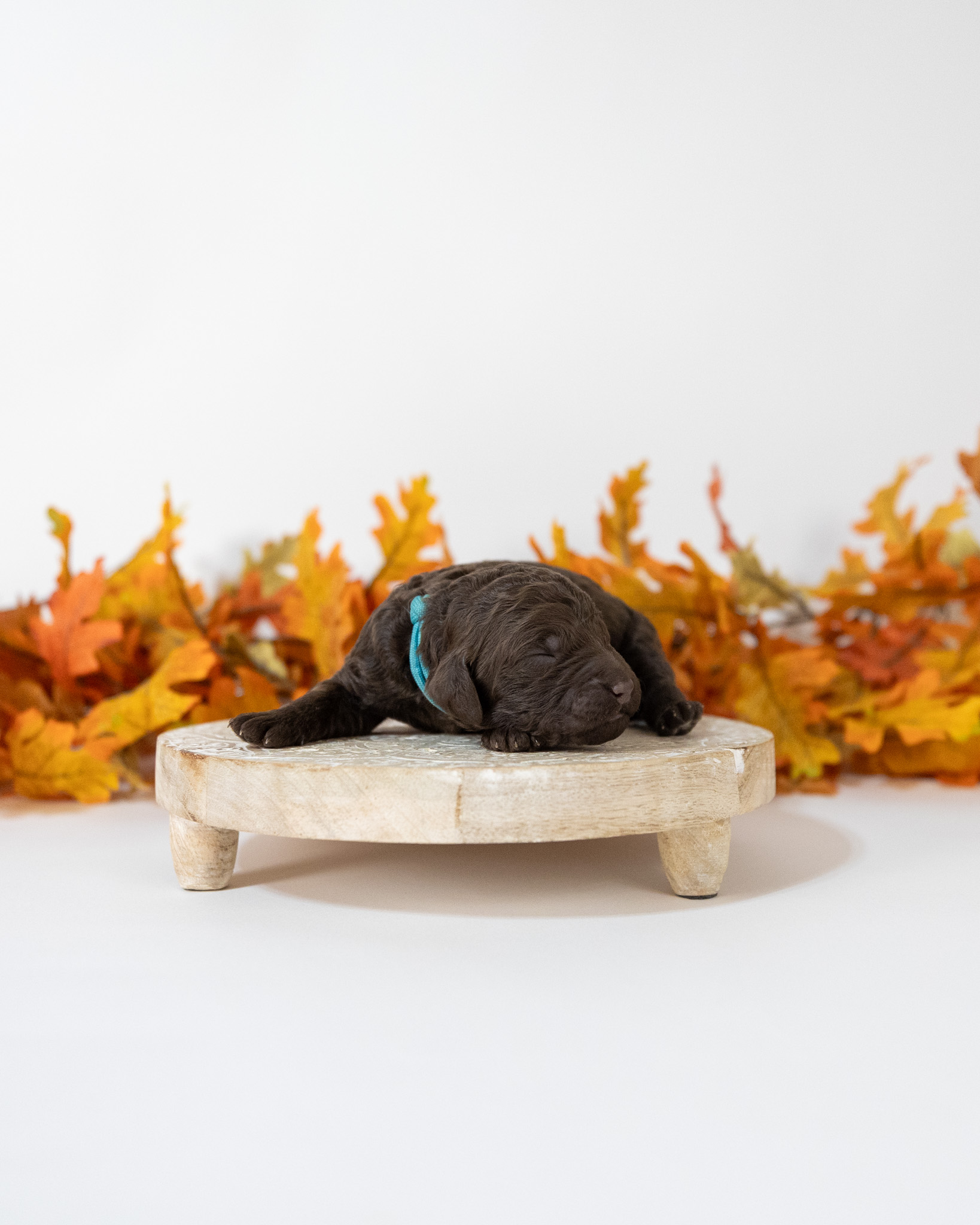 Aurora is a standard multigen Goldendoodle puppy who will be ready for her forever home January 7th! Her soft, fluffy coat is hypoallergenic and non-shedding, ensuring endless snuggles without fear of allergic reactions.