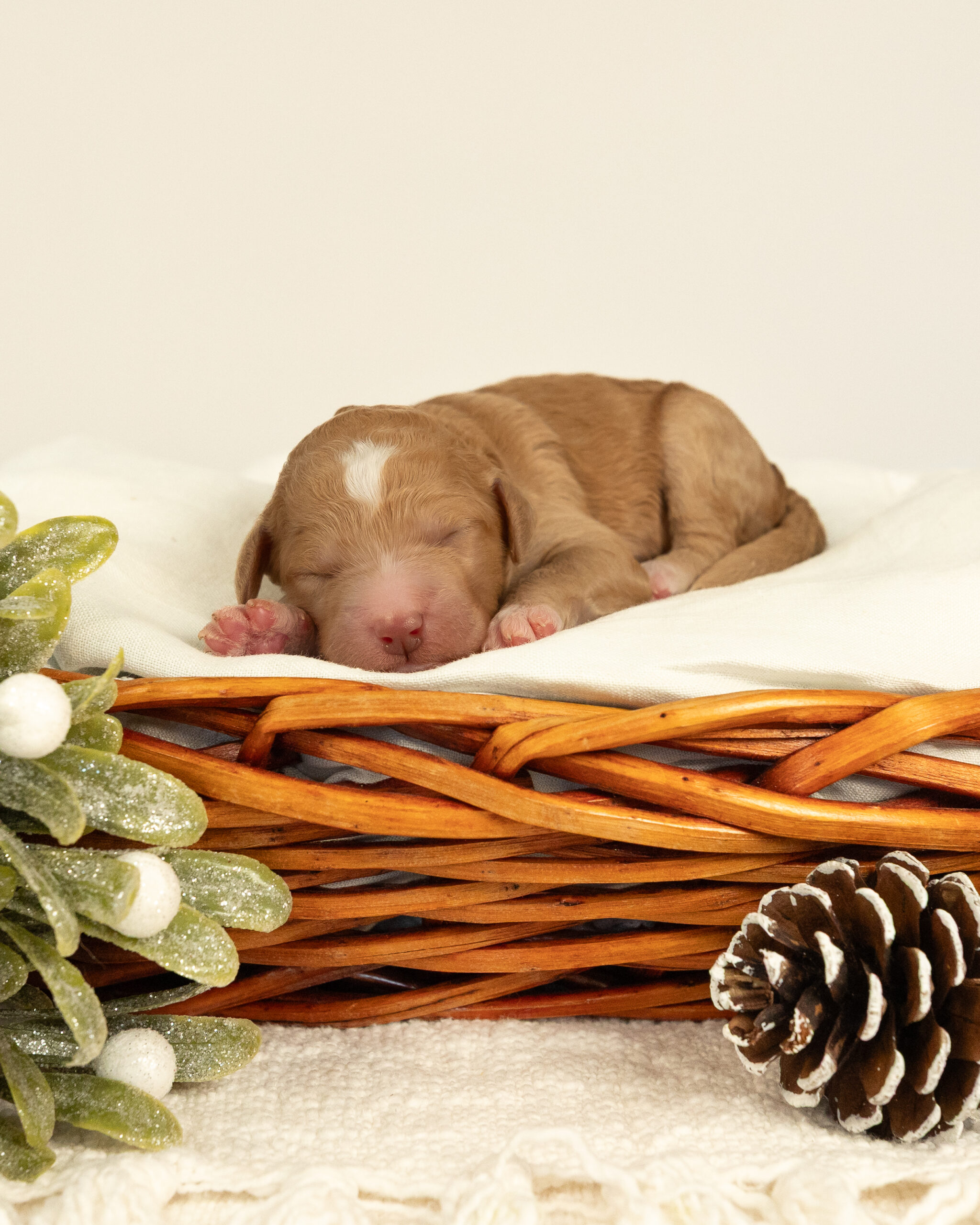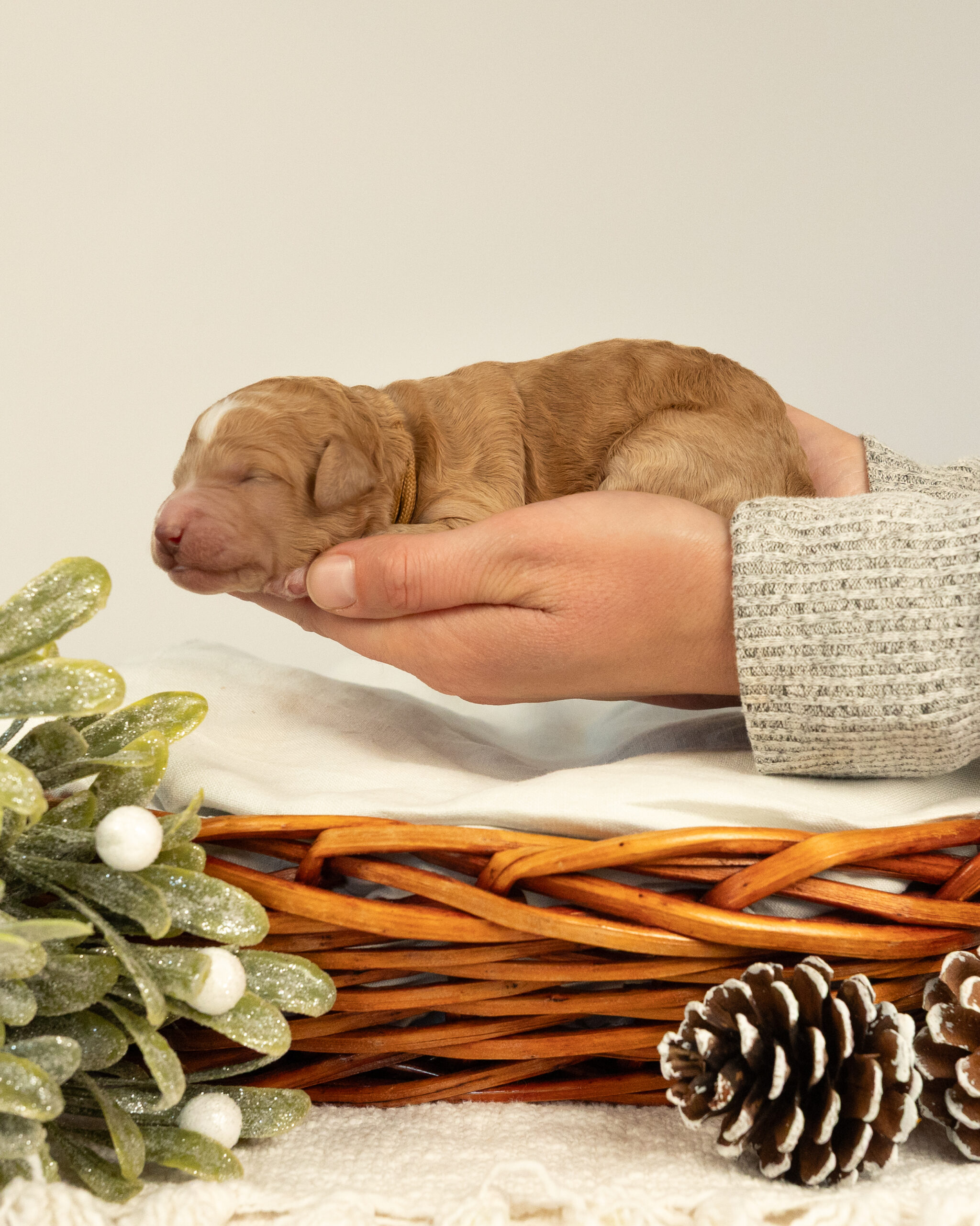 Ginger is a multigen standard Goldendoodle puppy who will be ready for her fur-ever home around December 19th! Her soft, fluffy coat is hypoallergenic and non-shedding, ensuring endless snuggles without fear of allergic reactions. With a loyal and affectionate temperament, she is the perfect forever friend!