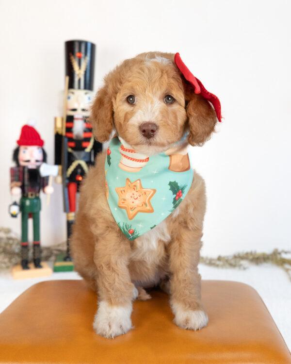 Albert is a golden parti standard Goldendoodle puppy who will be ready for his forever home around December 9th.