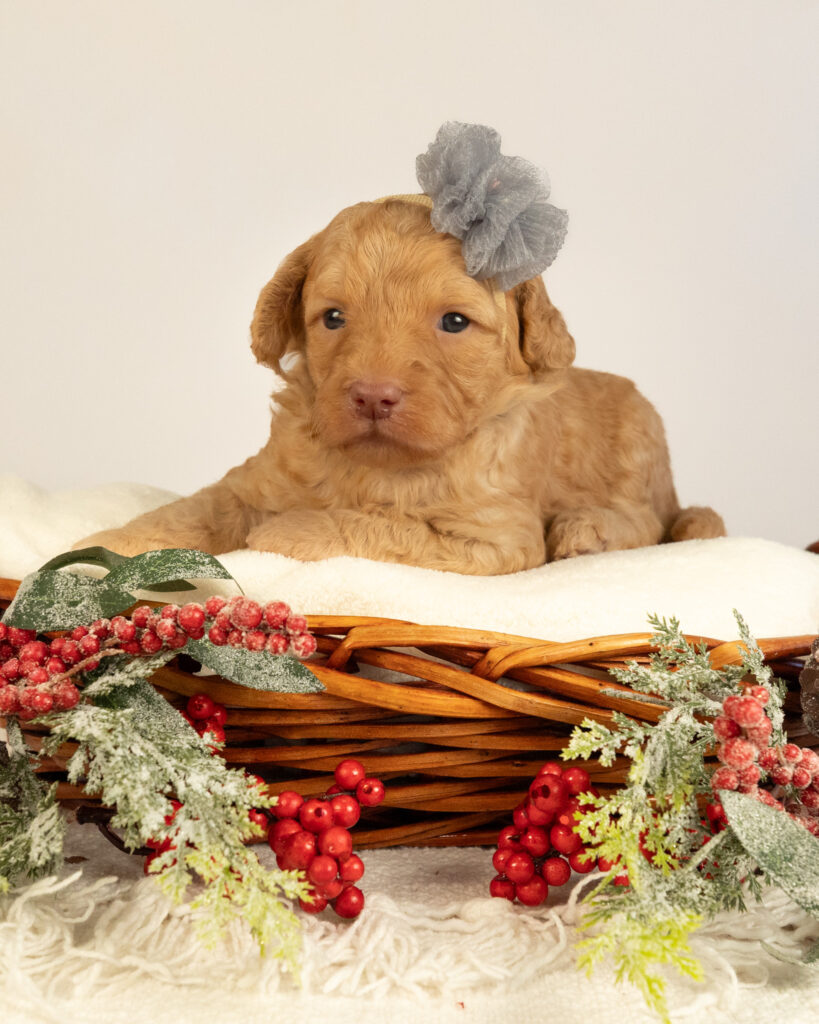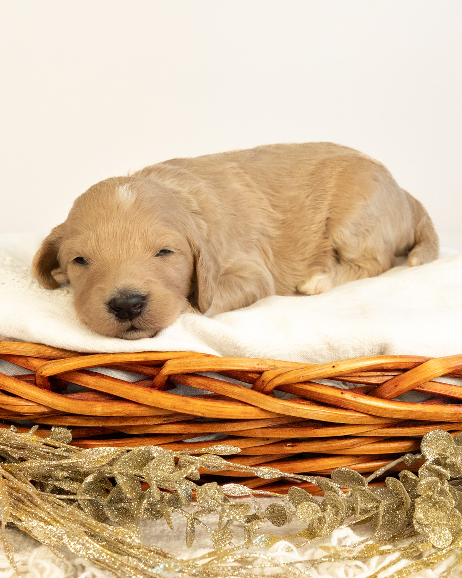Nutcracker is a multigen standard Goldendoodle puppy who will be ready for his fur-ever home around December 19th! His soft, fluffy coat is hypoallergenic and non-shedding, ensuring endless snuggles without fear of allergic reactions. With a loyal and affectionate temperament, he is the perfect forever friend!