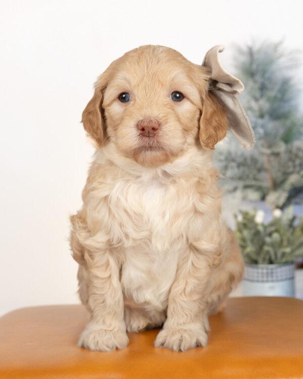 Juniper is a multigen medium Goldendoodle puppy who will be ready for her fur-ever home around January 14th! Her soft, fluffy coat is hypoallergenic and non-shedding, ensuring endless snuggles without fear of allergic reactions. With a loyal and affectionate temperament, she is the perfect forever friend!