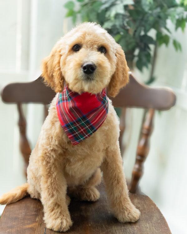 Snoopy is a multigen Goldendoodle puppy who will be ready for his fur-ever home around December 1st! His soft, fluffy coat is hypoallergenic and non-shedding, ensuring endless snuggles without fear of allergic reactions. With a loyal and affectionate temperament, he is the perfect forever friend!