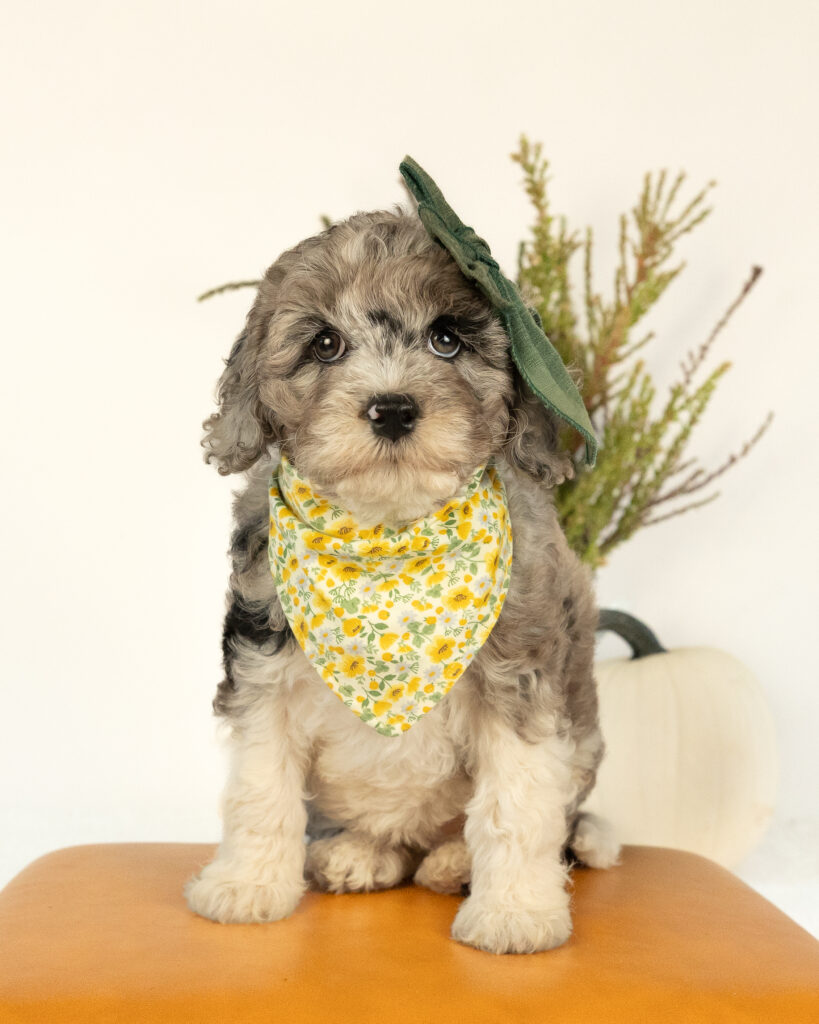 Goldberry is one of our beautiful mini Cockapoo mamas! She is calm, sweet, gentle, and loves people.