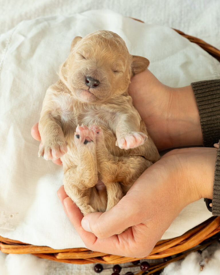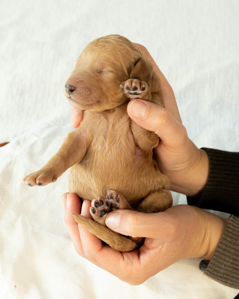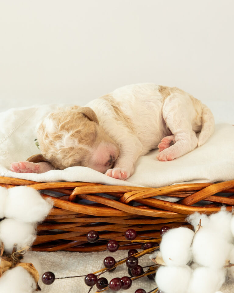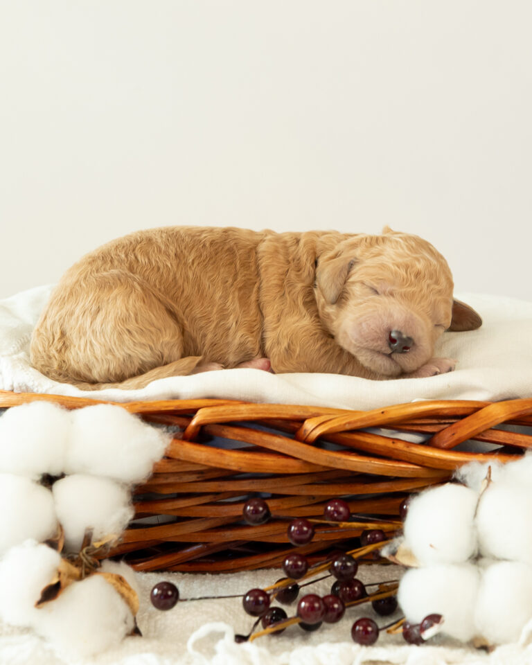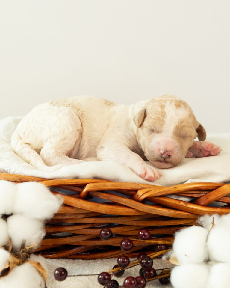 Our sweet Goldendoodle parents Antoinette and Percy welcomed a beautiful litter to the world on October 14th! Inheriting their names from the French classic The Count of Monte Cristo, our cast of precious pups will be ready for their forever homes around December 9th.